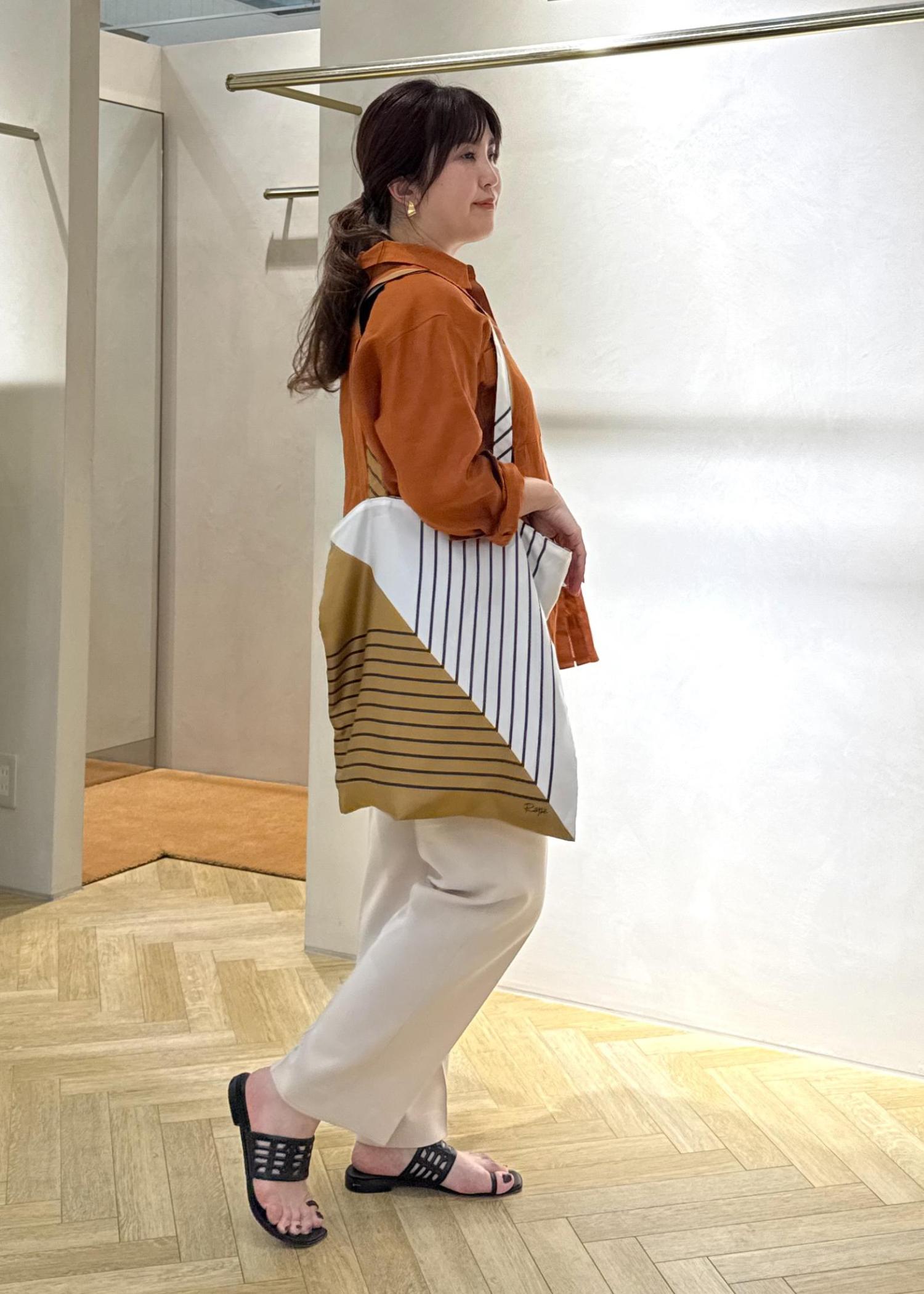 アウトレットROPÉ幾何学柄シルクトートバッグオフホワイト / F¥7,040レビュー表地がシルク100%なのでカジュアル見えしすぎずキレイめコーデの抜け感、アクセントにオススメ。