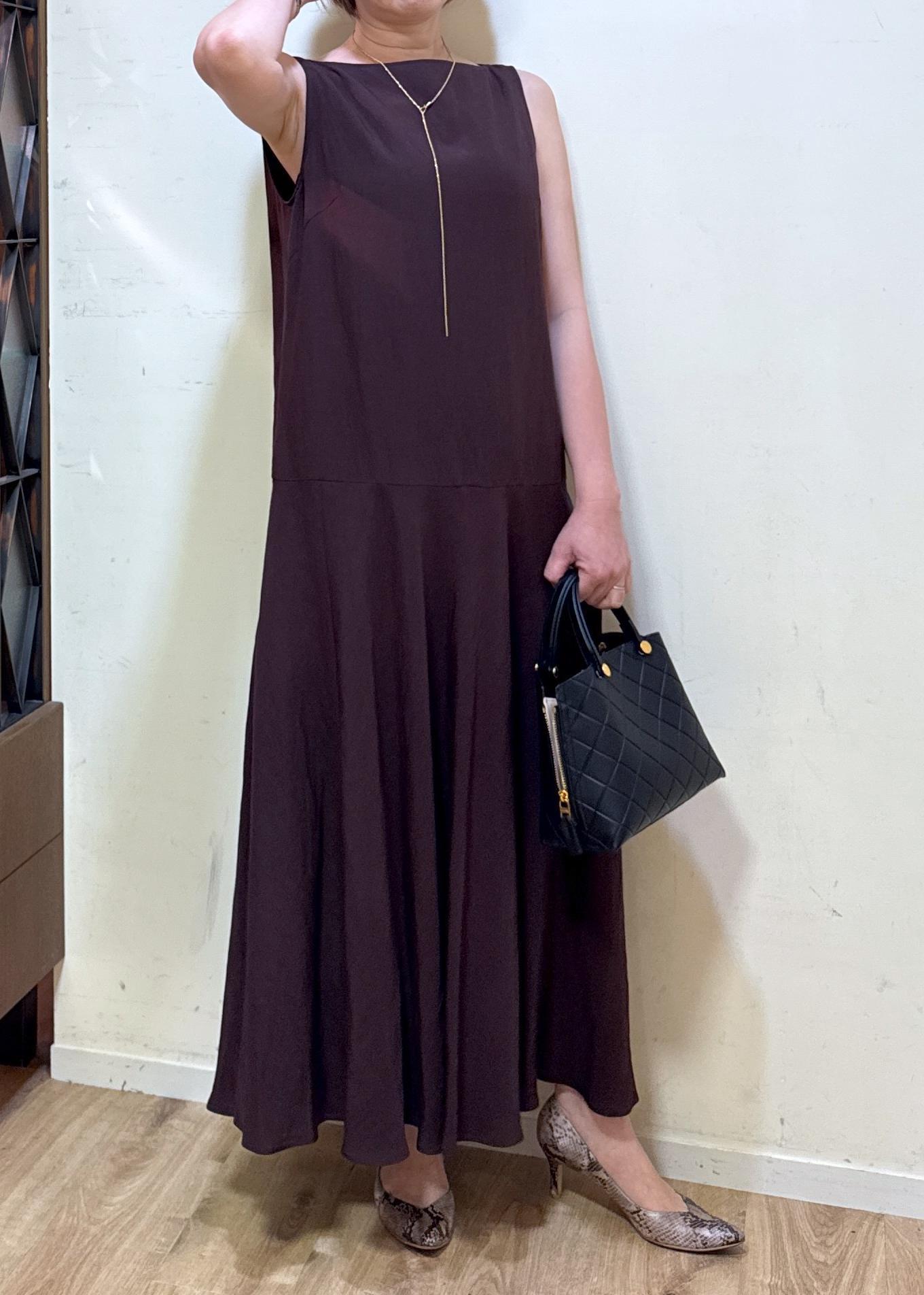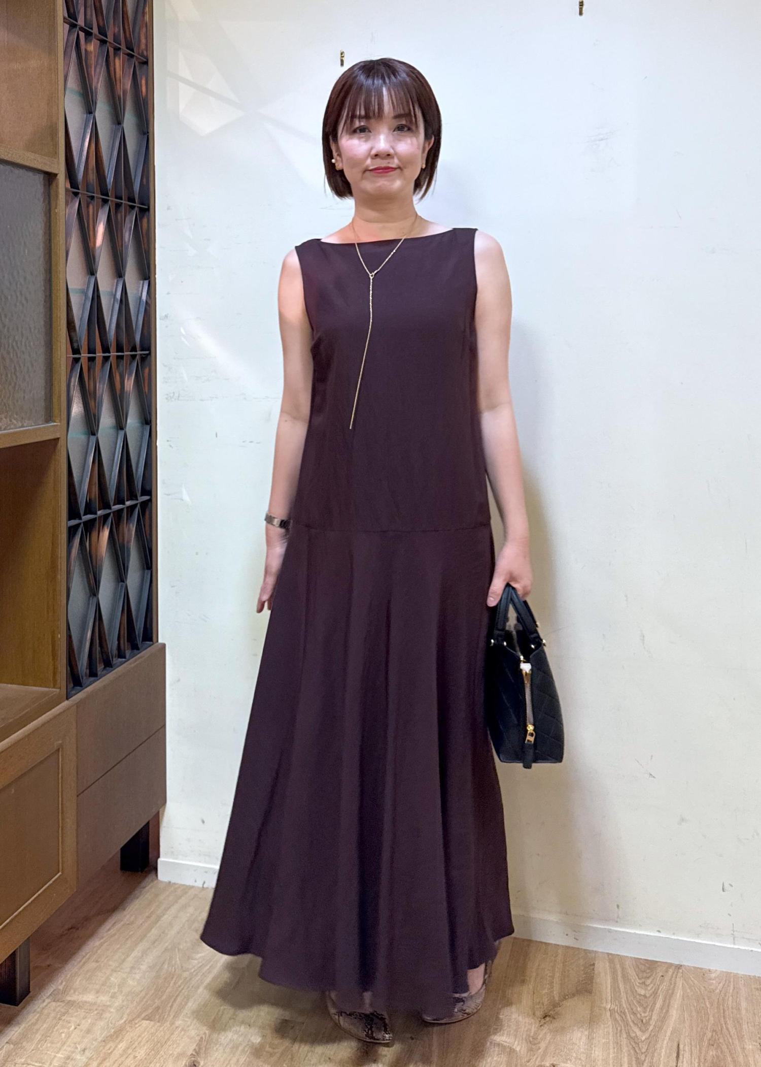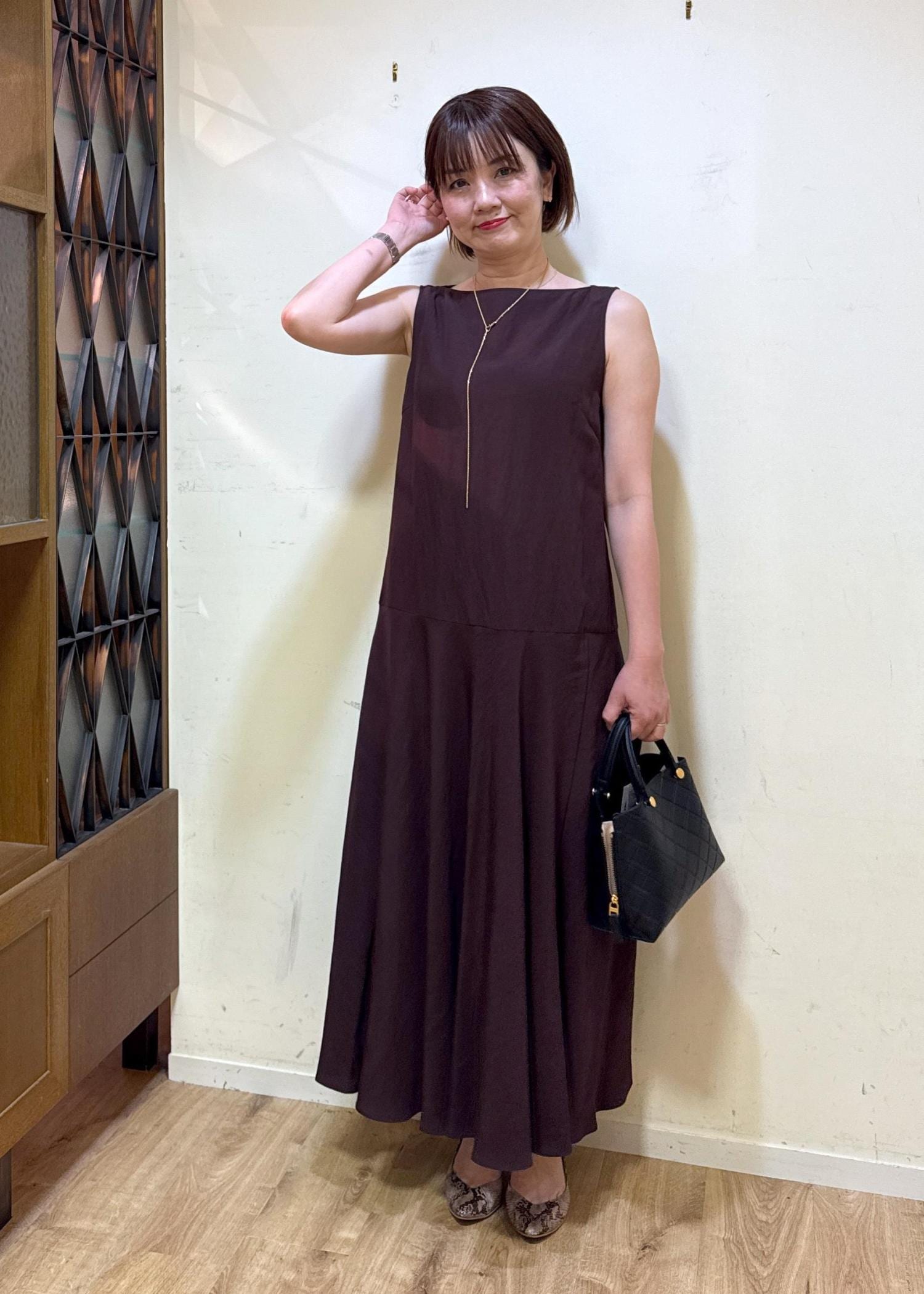 アウトレットROPÉレーヨンリネン スラッシュドネックワンピース【セットジャケット対応】ブラウン / 38¥27,720レビュー157センチ 38サイズ着用