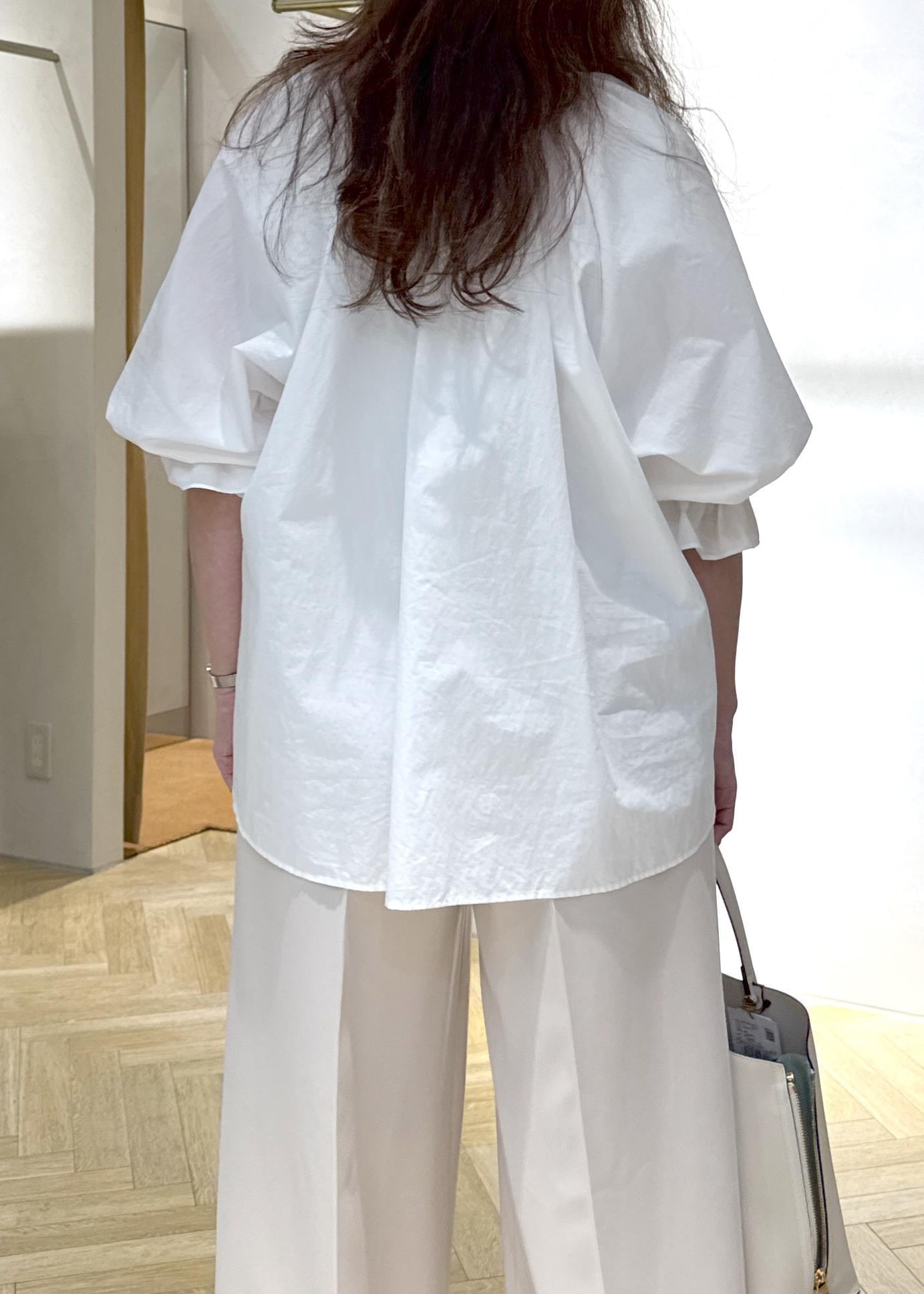 ボリュームが出やすいブラウスもワイドなのにすっきり見えのパンツと合わせるとインせずバランスよく着こなせます♪