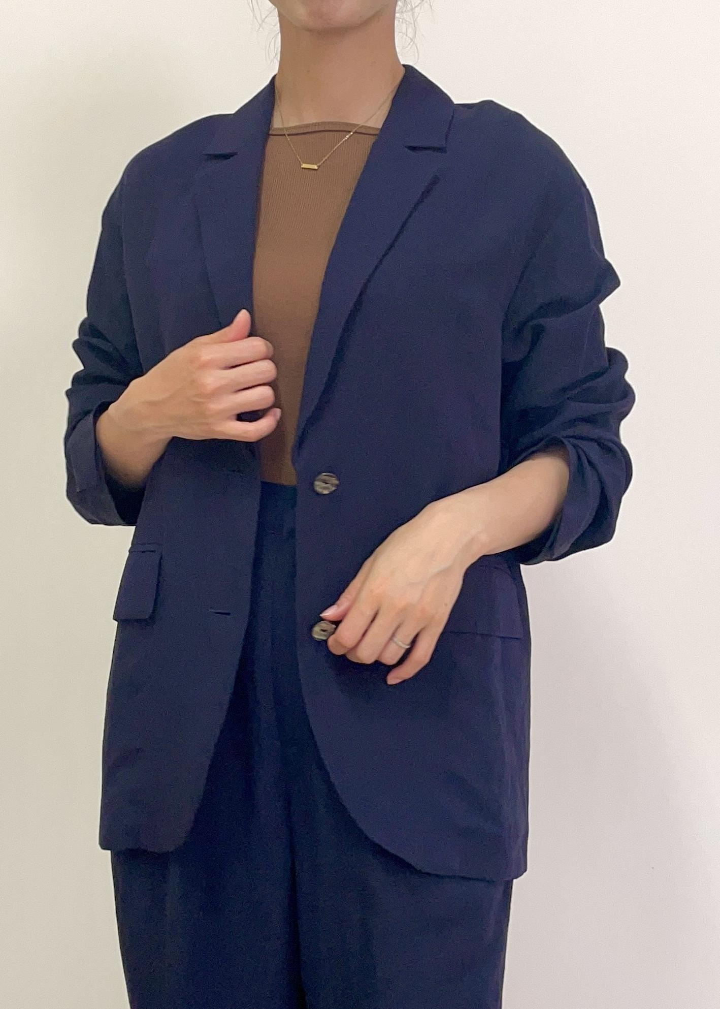 アウトレットROPÉレーヨンリネン ライトジャケット【セットアップパンツ・ワンピース対応】ネイビー / 36¥26,400レビューリネン混のツヤがとてもキレイな素材感。