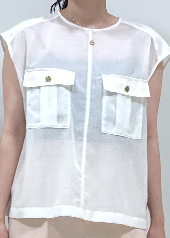 アウトレットROPÉ【洗える】サファリ シアーブラウスオフホワイト / F¥12,650レビューウール混ですがシアー感とシャリ感のある生地なので