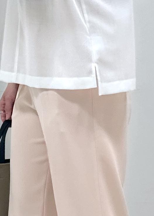 ROPÉ【洗える】ダブルクロステーパードパンツ(美人パンツ)ピンク / 36¥25,300レビュー162センチで36サイズ着用。