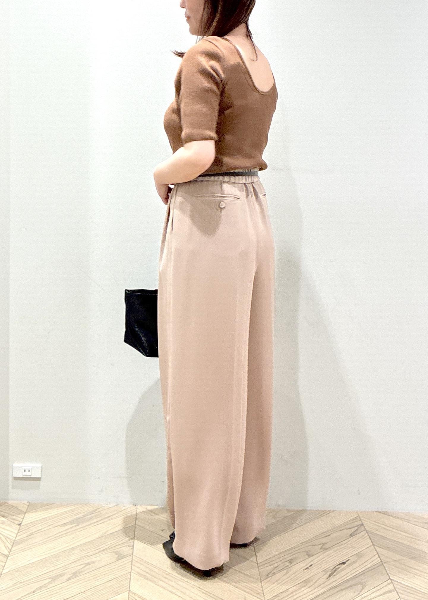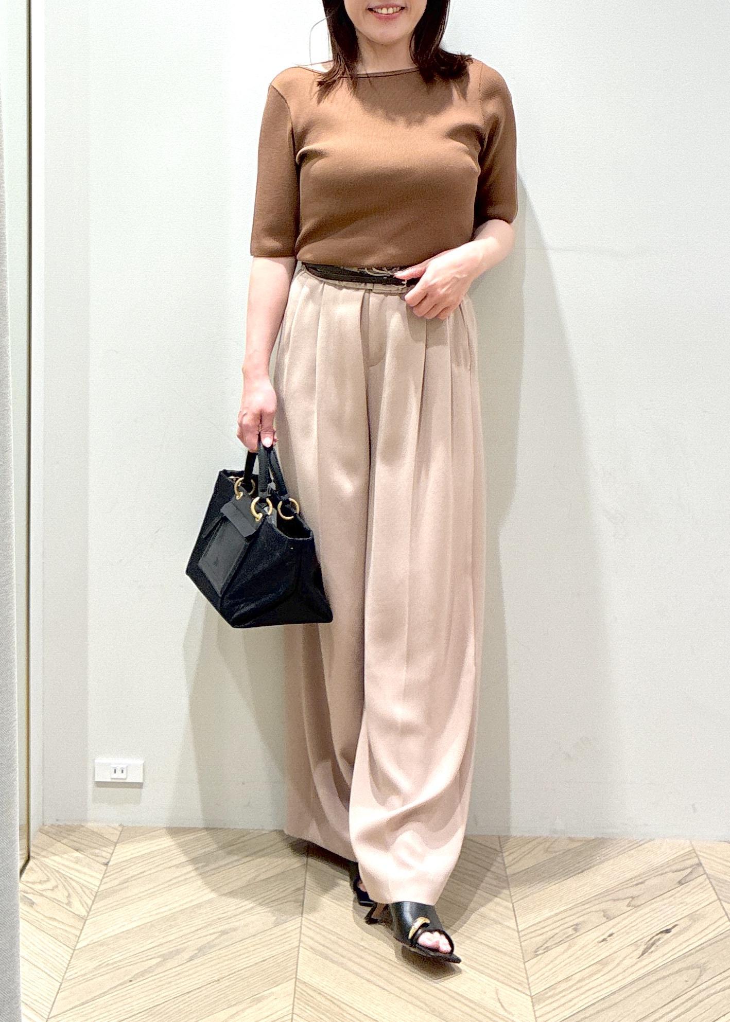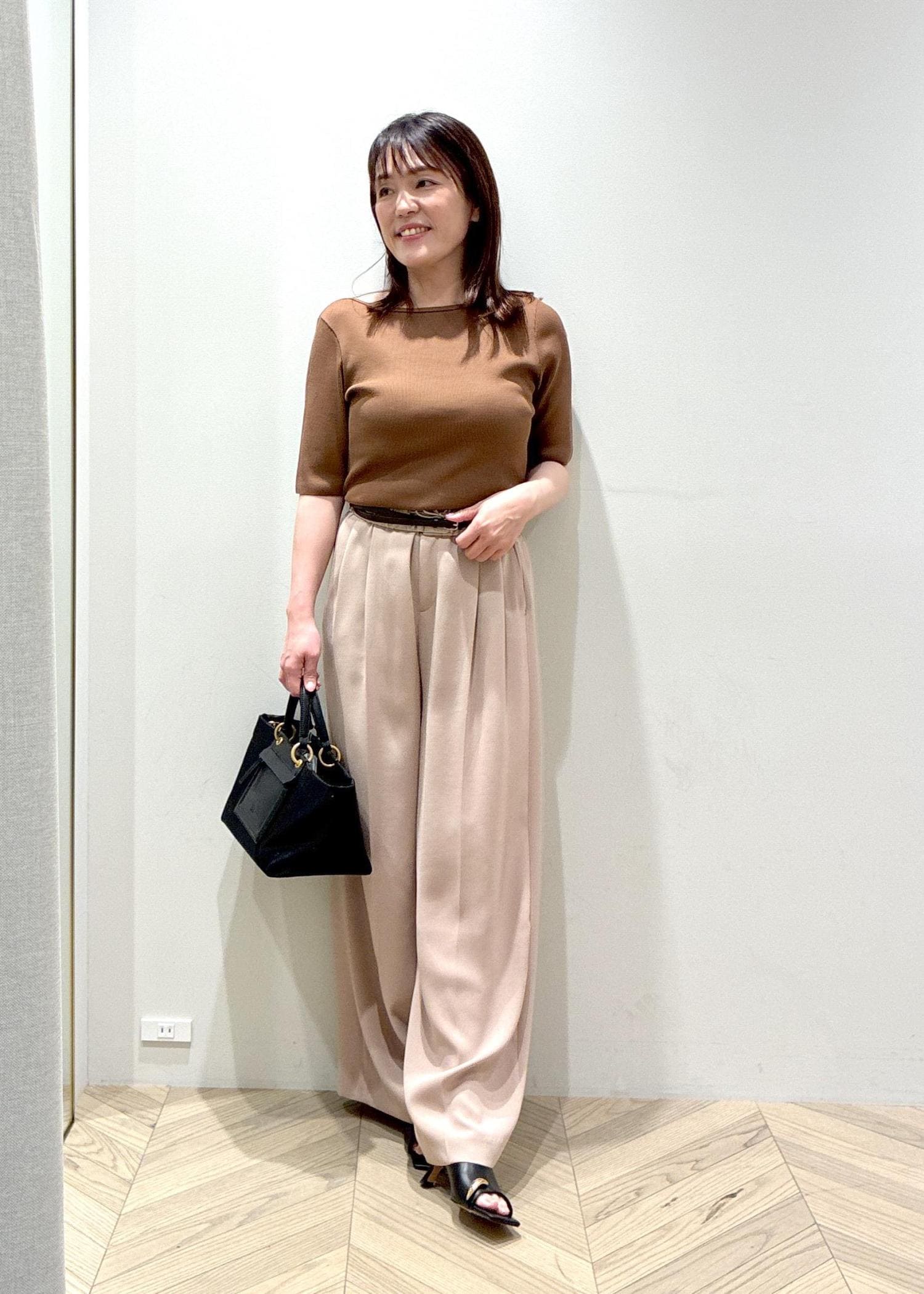 ROPÉ【洗える・カセット服】ライトトリアセイージーワイドパンツ/お仕事・通勤・セットアップ対応ベージュ / 38¥25,300レビュー158cm38サイズ着用。