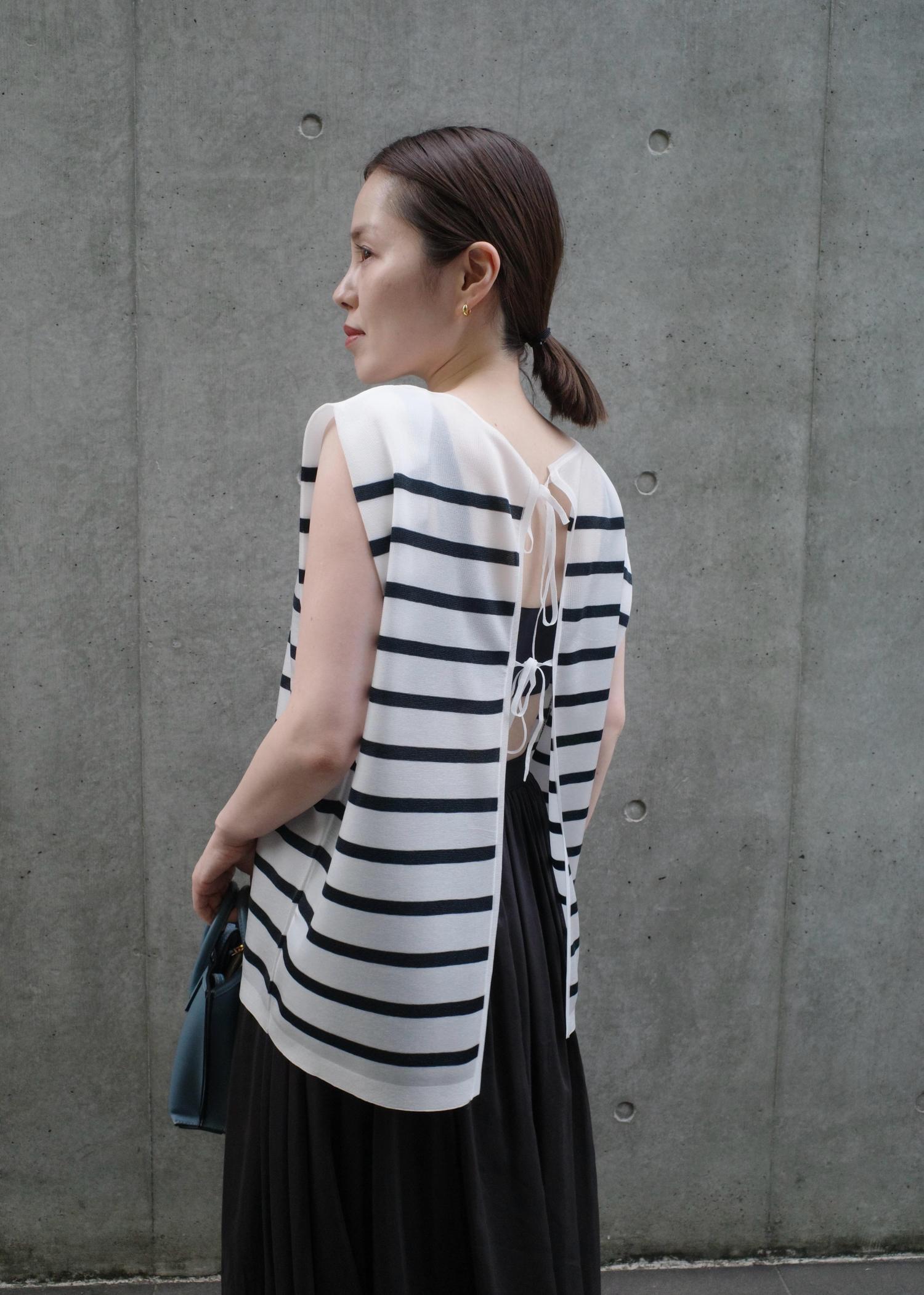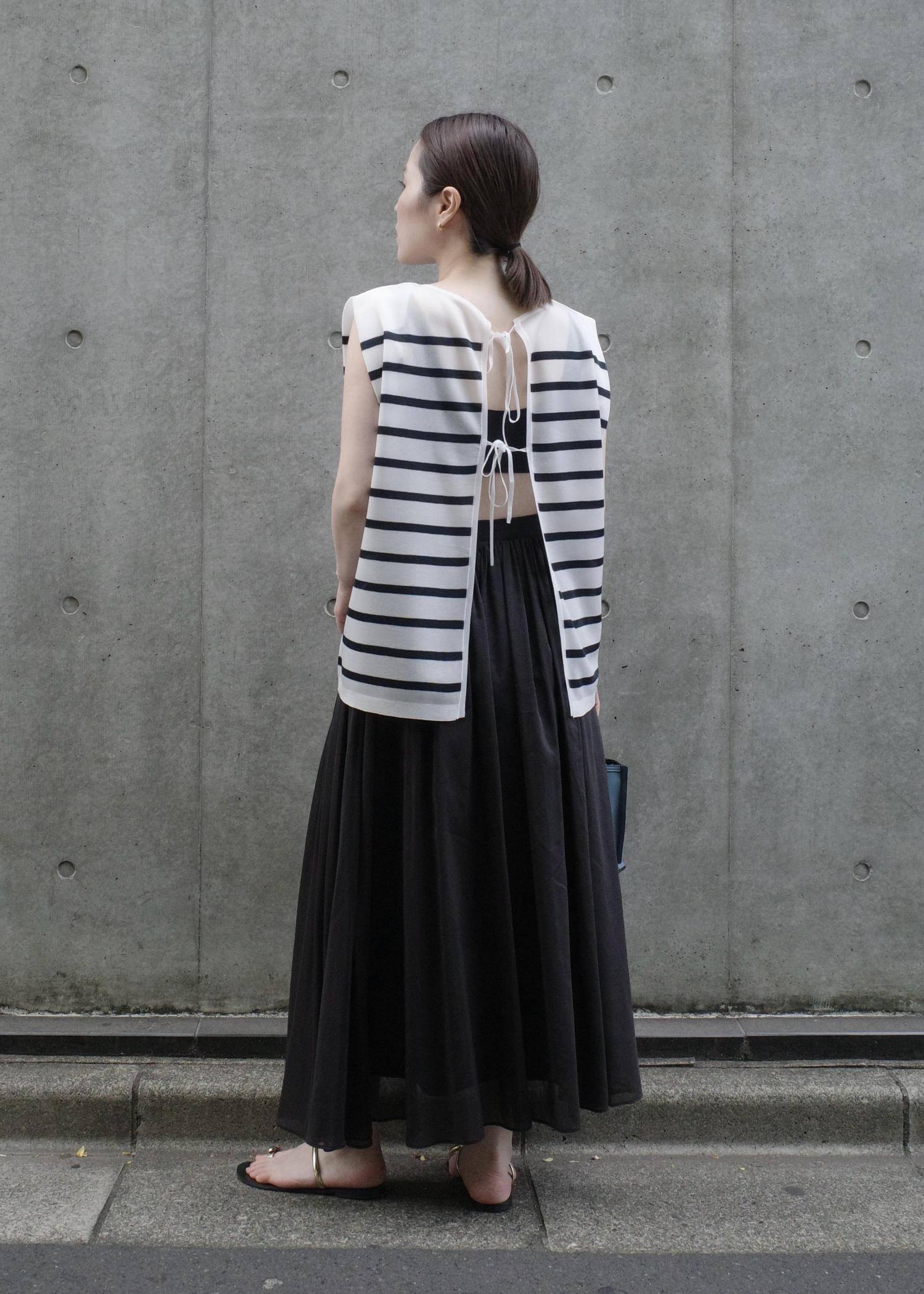 ブラトップと合わせて、後ろ空きに着ればヘルシーな着こなしに。