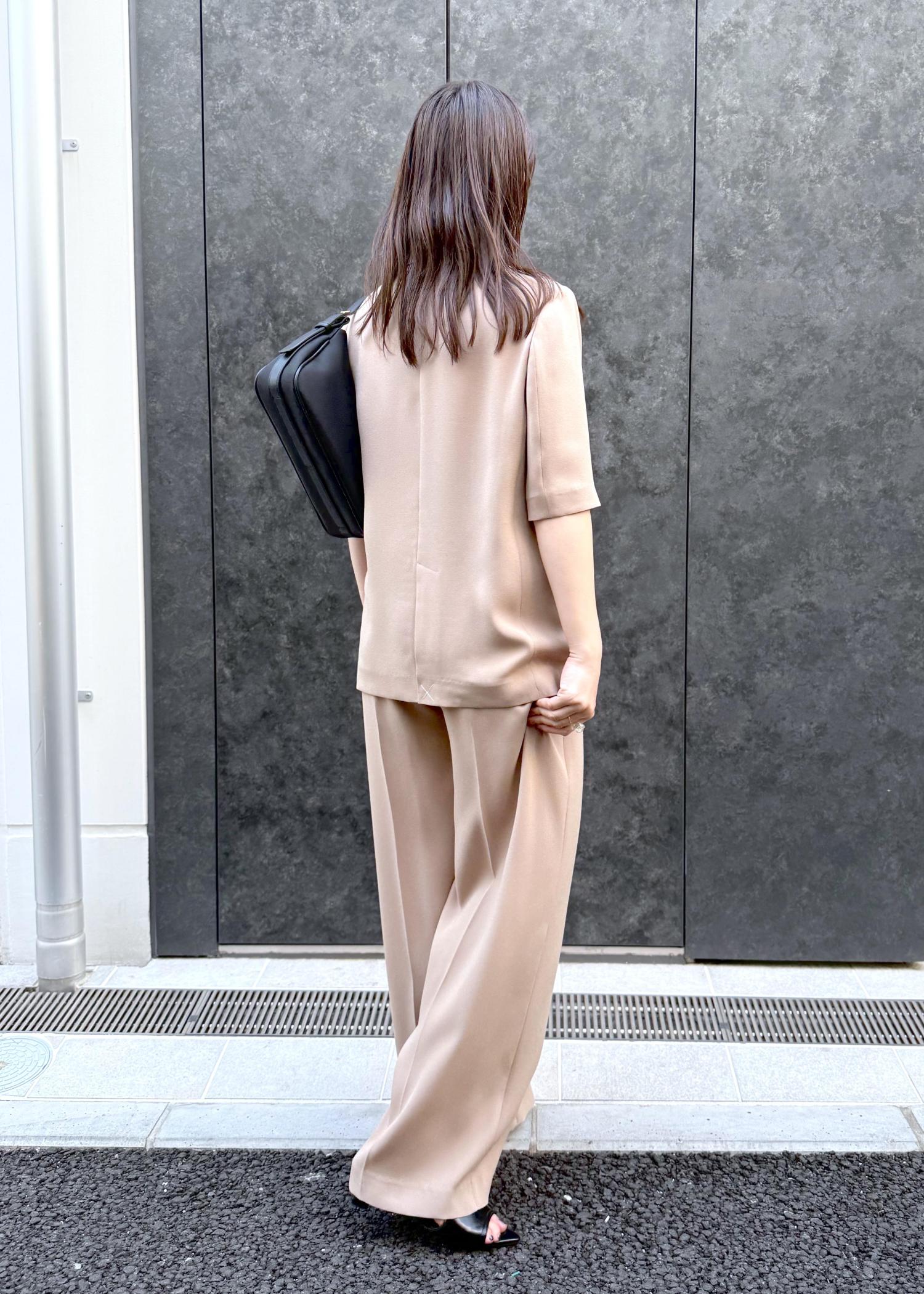 ROPÉ【洗える・カセット服・新色追加】トリアセバックサテン ハーフスリーブジャケット/セットアップ対応ベージュ / 36¥31,900レビュー着丈はヒップがすっぽり隠れるくらい、袖は肘が隠れるくらいの長さです。