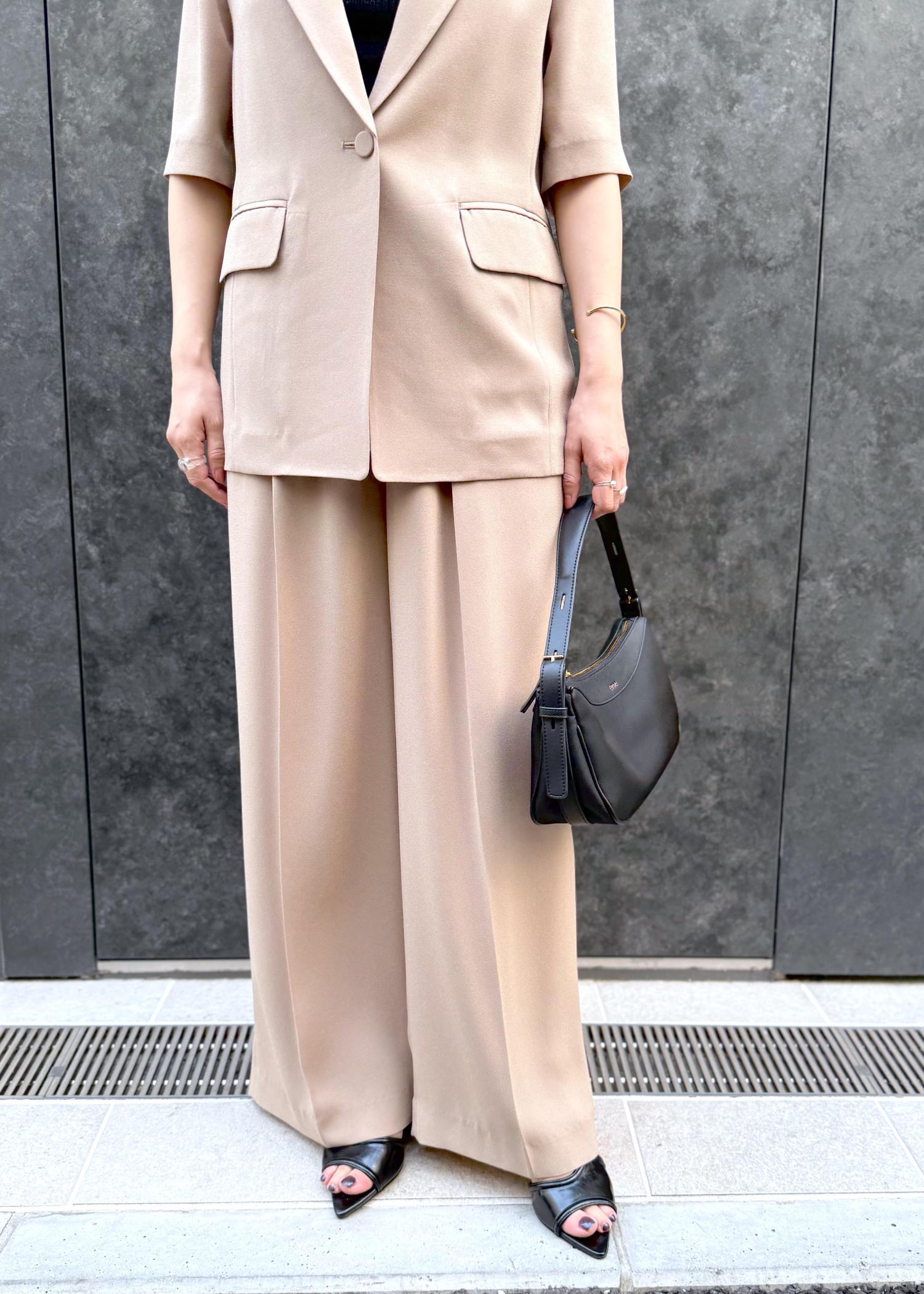 ROPÉ【洗える・カセット服】ライトトリアセイージーワイドパンツ/お仕事・通勤・セットアップ対応ベージュ / 36¥25,300レビュー着丈はヒールでぎりぎり床に着かないくらいの着丈でした。