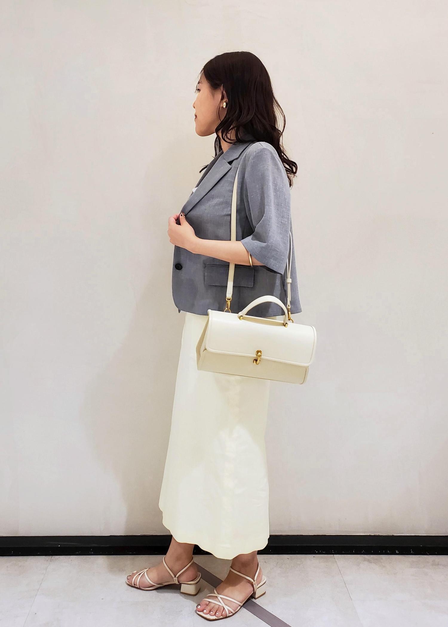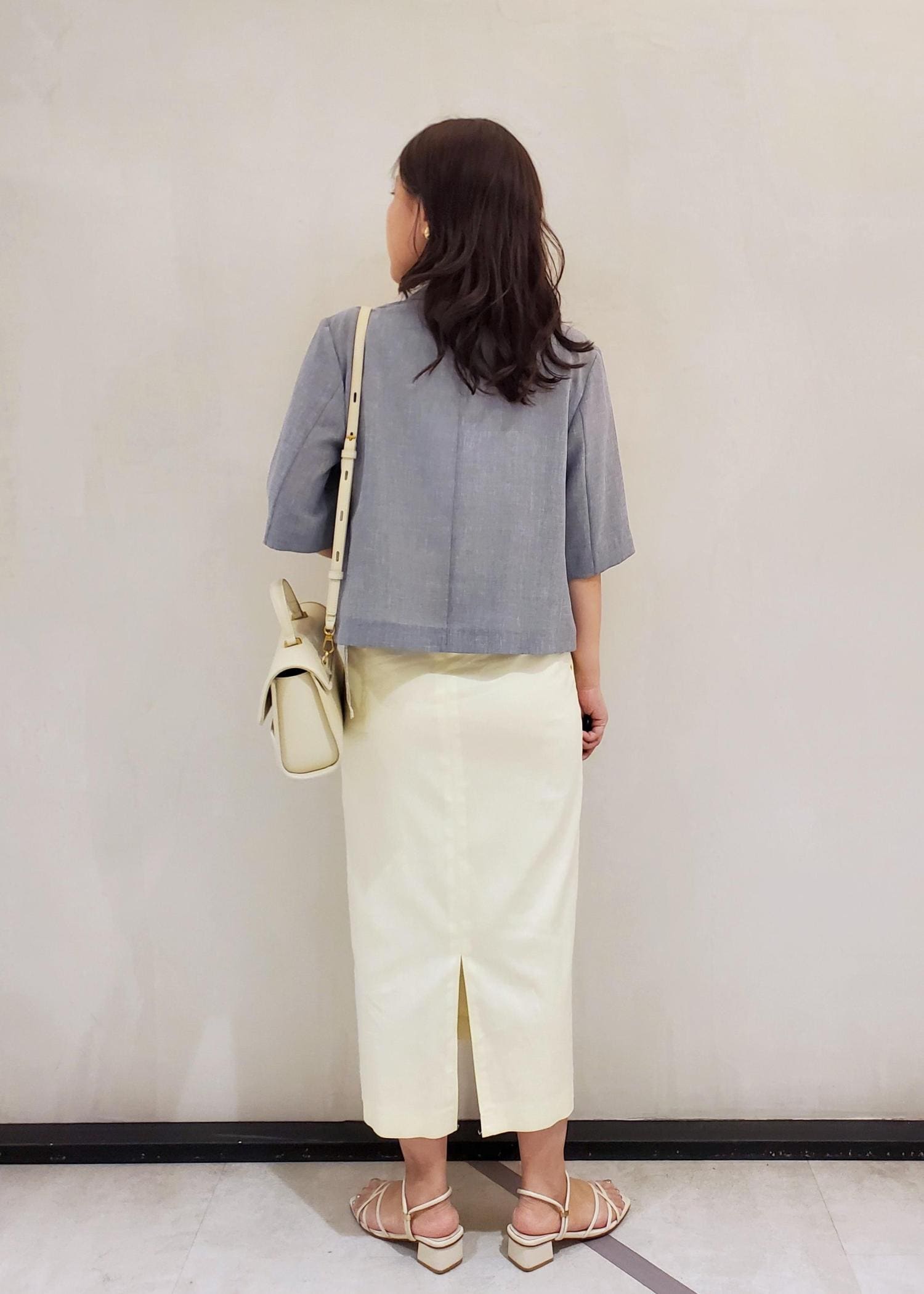 短丈ですが腰にかかるくらいなので短くなりすぎず、ロングワンピースやフレアスカートにも相性バッチリです◎ -
