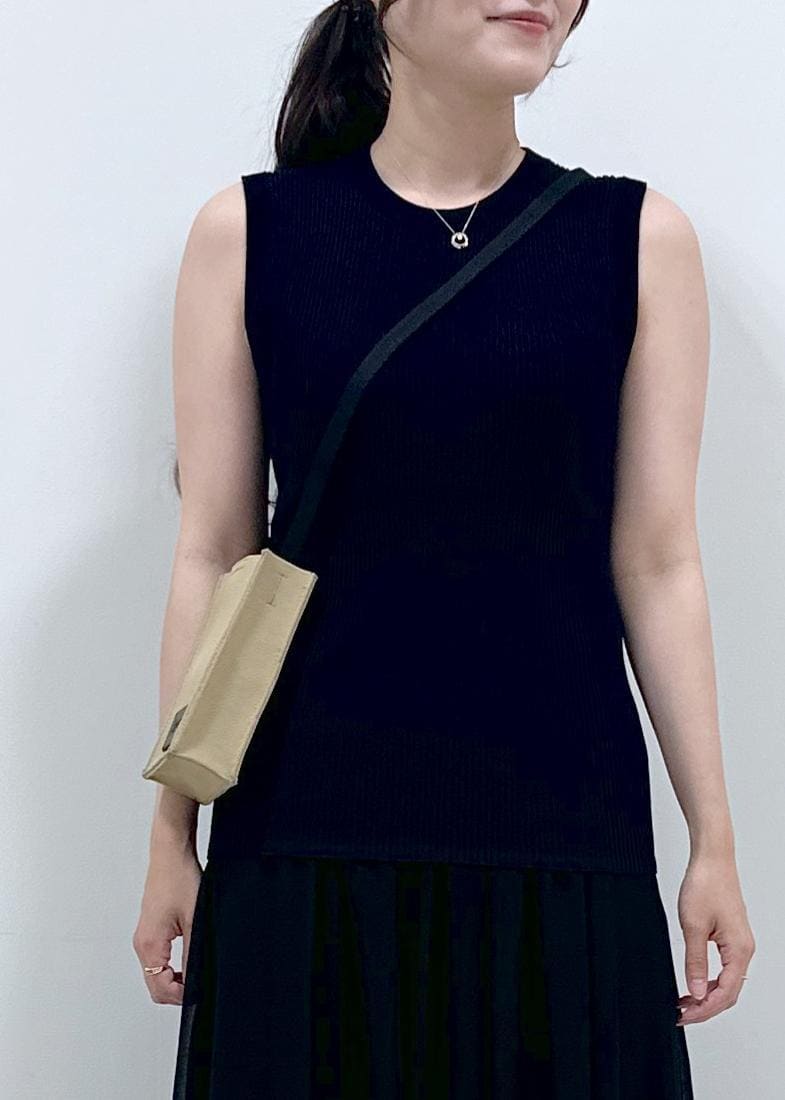 アウトレットROPÉ【洗える】オーガニックコットンリブスリーブレスニットネイビー / F¥11,550レビュー身長162㎝で38サイズ(ワンサイズ)着用。