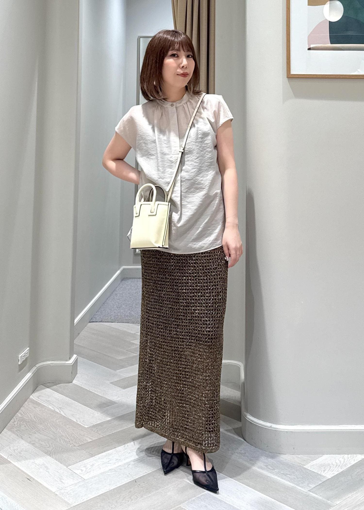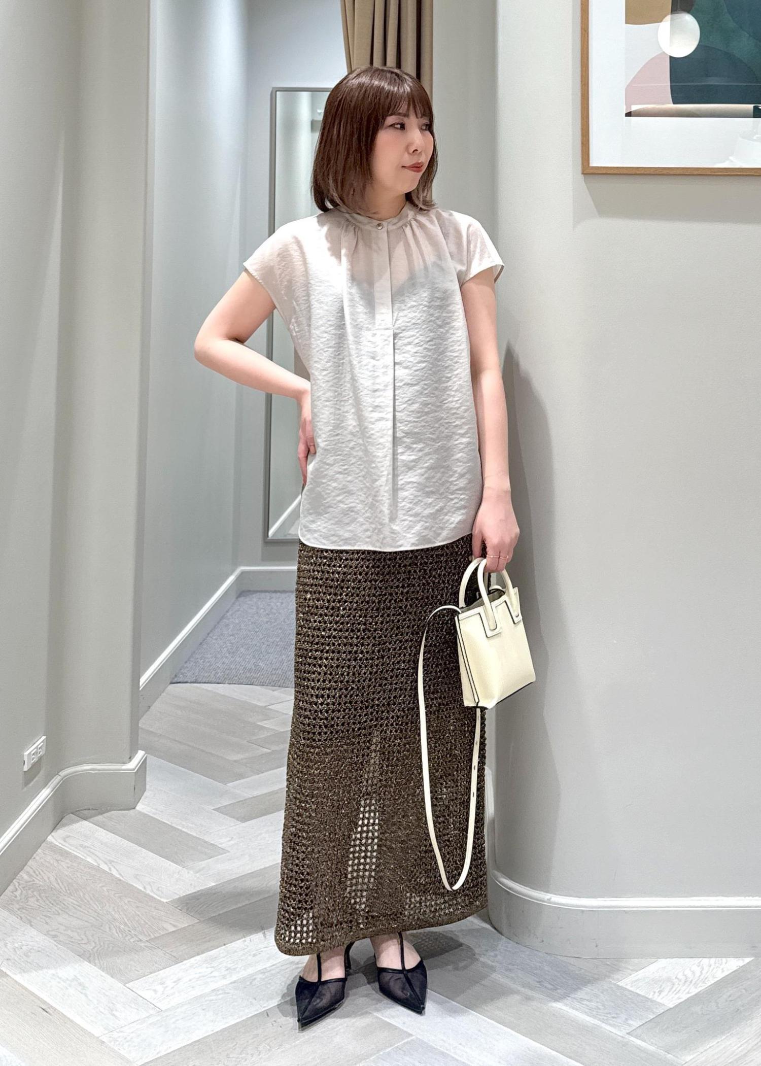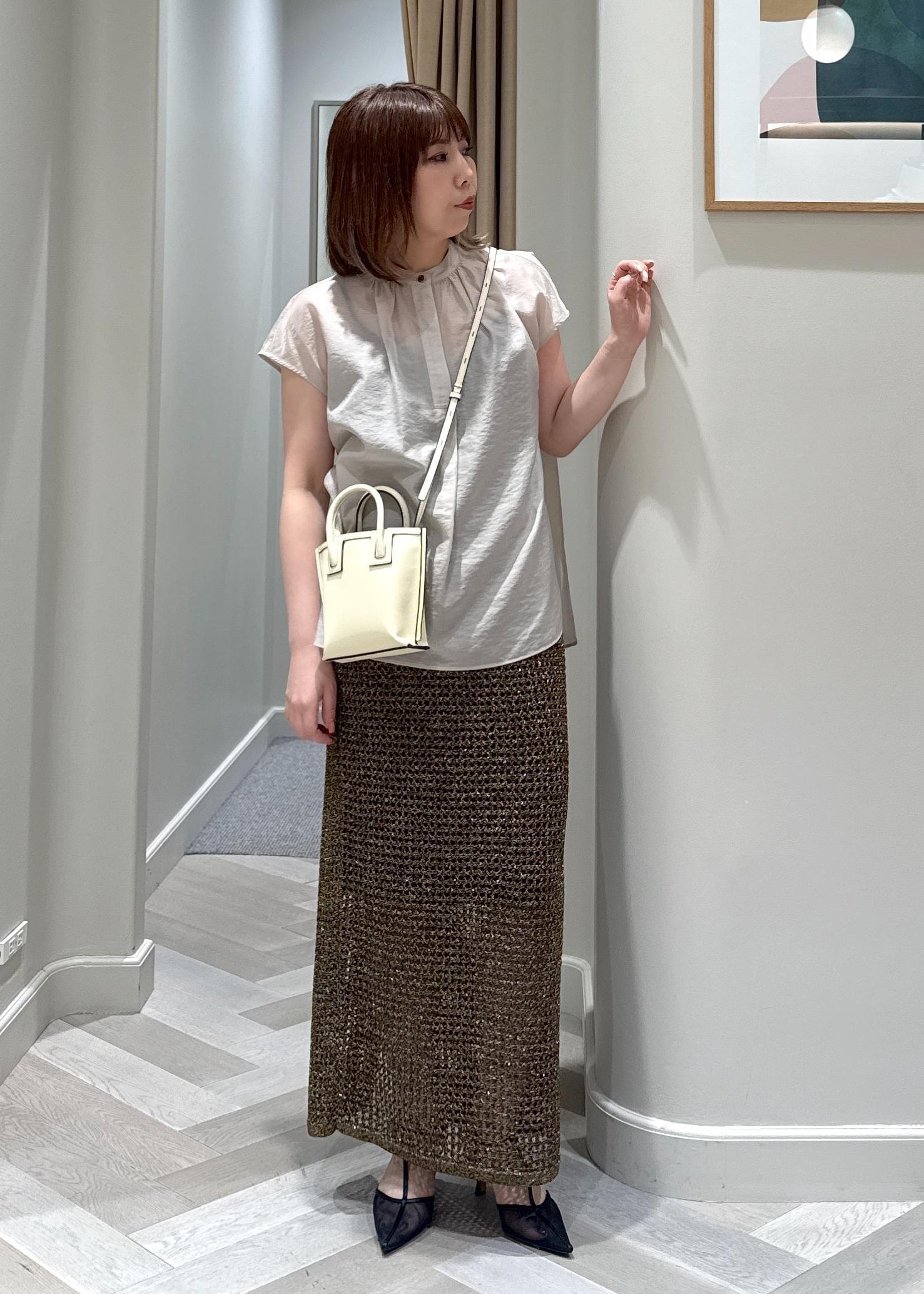 トップスはシンプルなブラウスを合わせてバランスを取りました♪