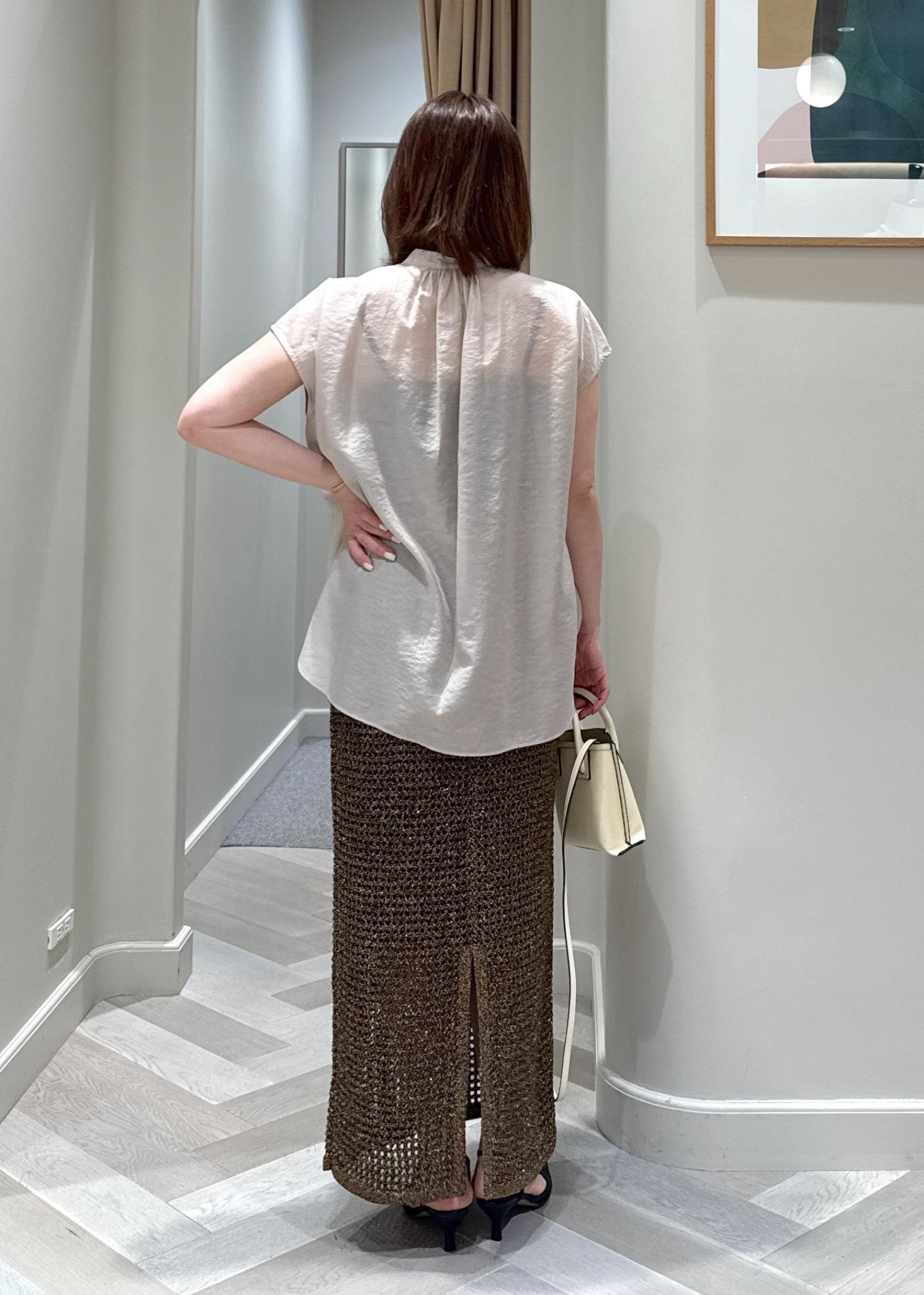 アウトレットROPÉラメメッシュスカート/セットアップ対応ゴールド / 38¥13,200レビューウエストはゴムでリラックス感のある履き心地。