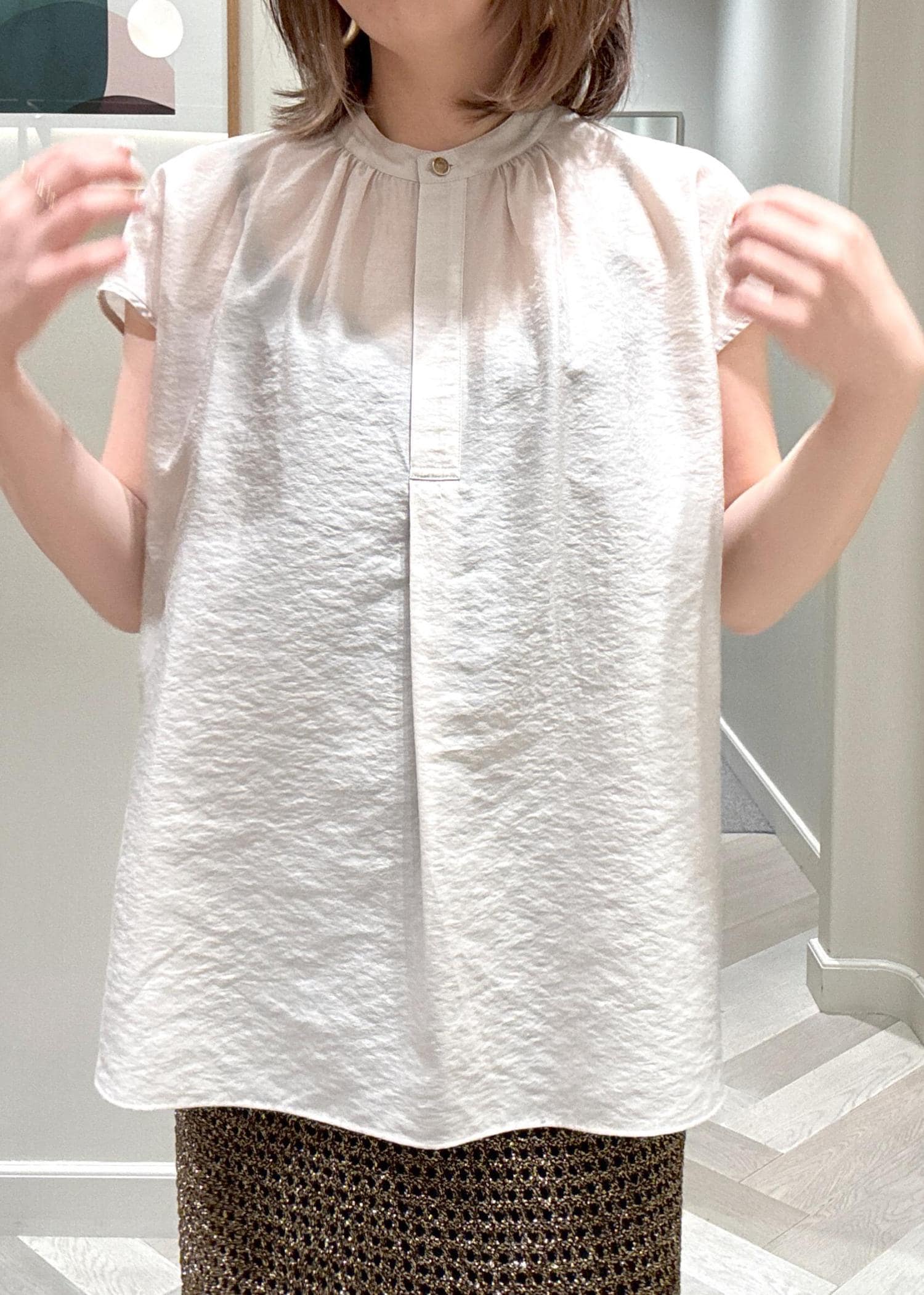 アウトレットROPÉ【洗える】キュプラシルク フレンチスリーブブラウスベージュ / F¥9,900レビューシャリ感があり肌ばなれの良い生地感。