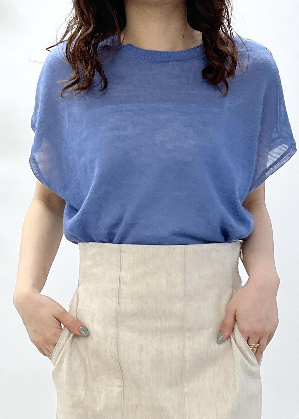 麻100%でカラーも清涼感のあるブルーニットは