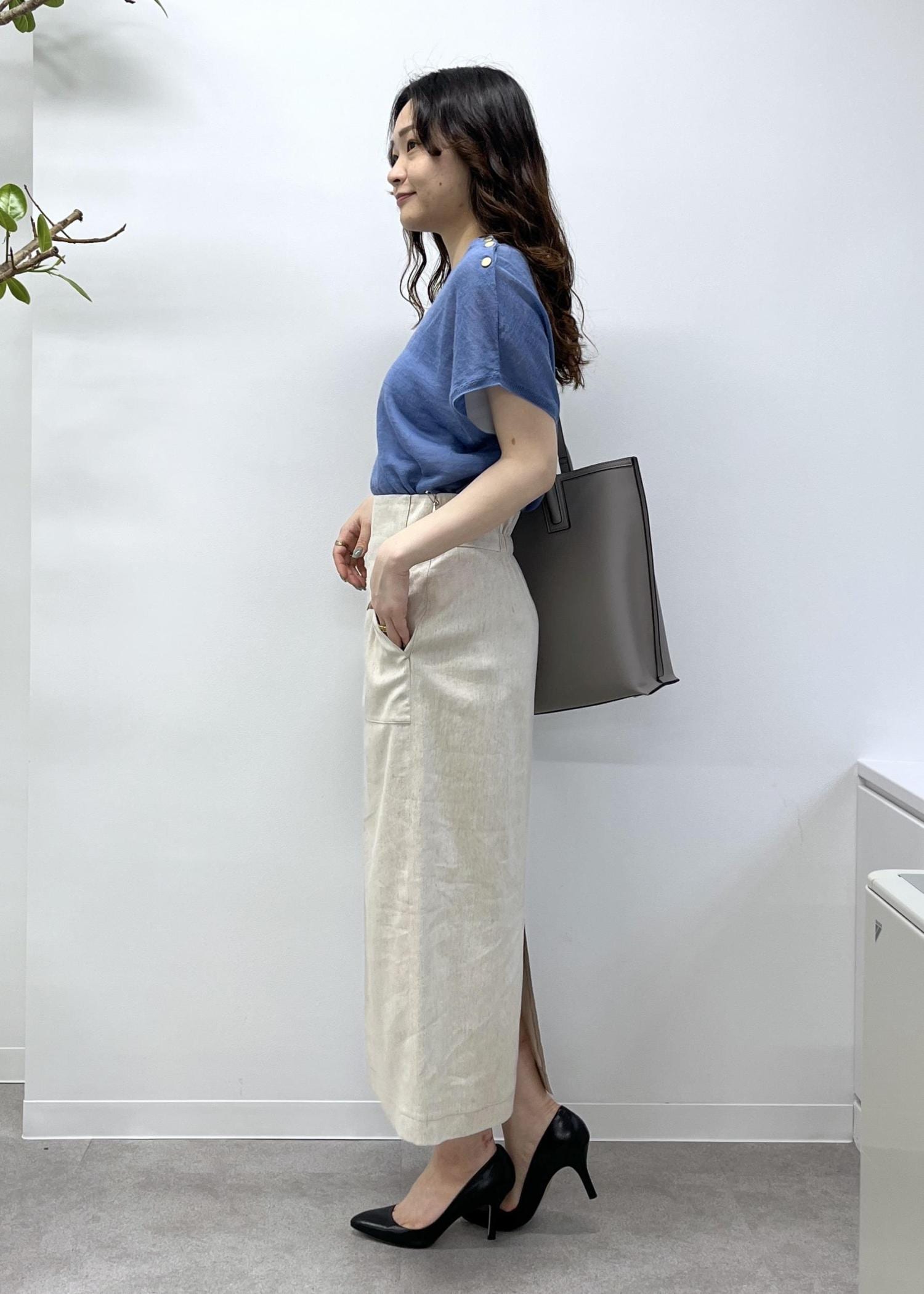 アウトレットROPÉ【洗える】サテンリネン ポケット付きタイトスカート【34サイズ/J'aDoRe・店舗限定】/25SSキナリ / 36¥9,900レビュー36サイズを着用しています。
