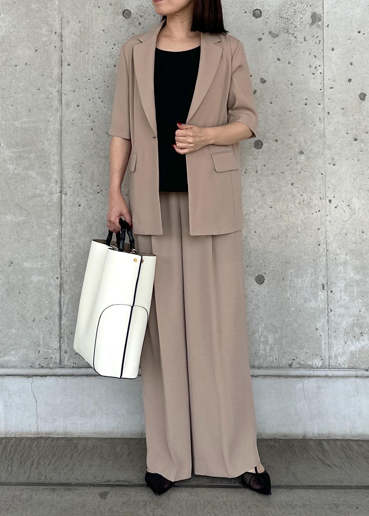 とろみ素材がほどよく女性らしいシンプルなデザインは着回しも万能。