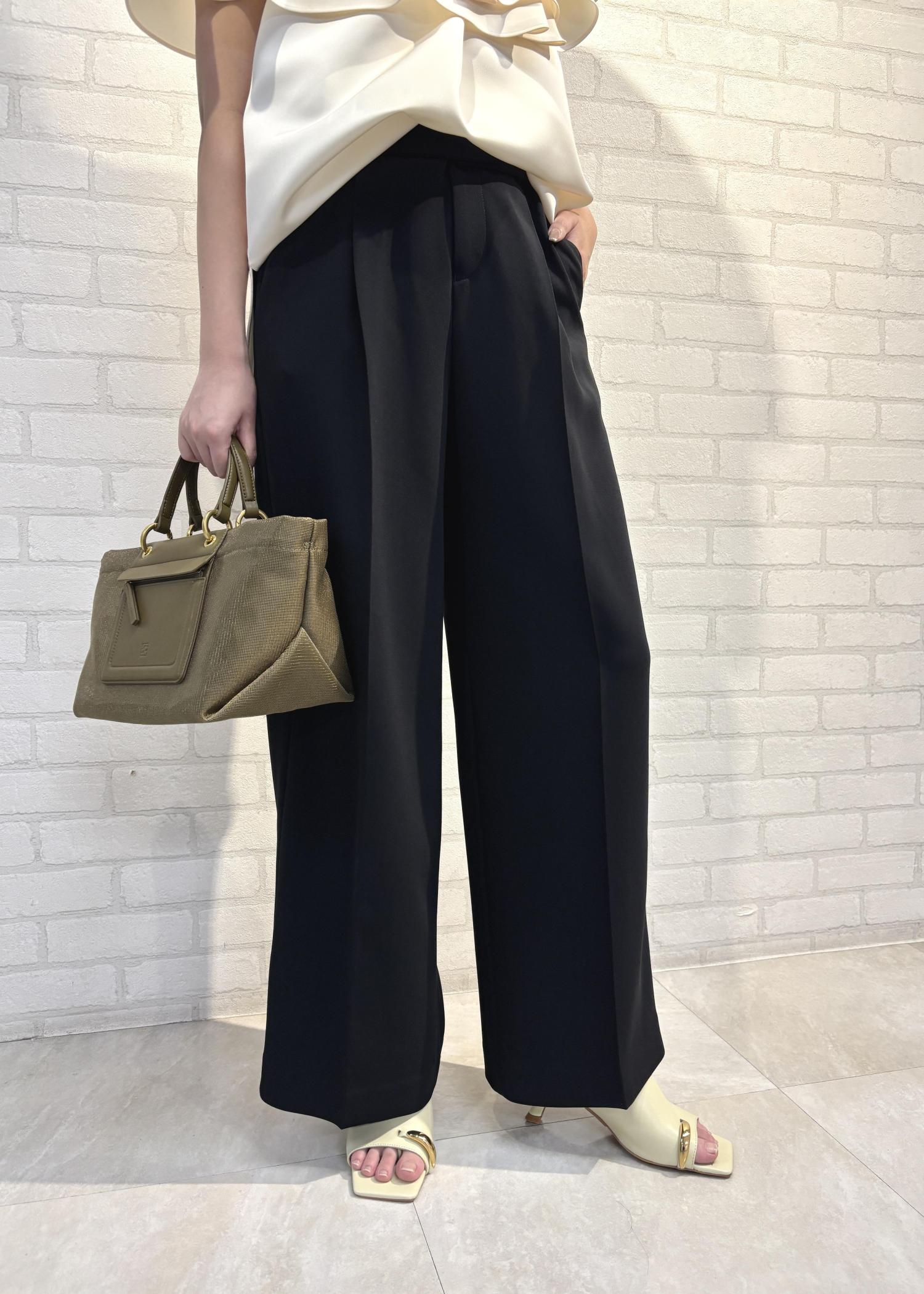 パンツもセンタープレスのあるキレイめなワイドパンツで、オンオフ問わず着られるスタイルに。