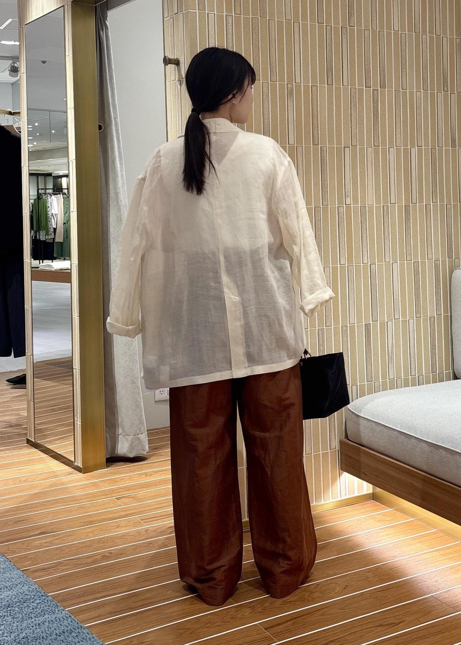 UVケア加工もされたリネン素材のシアージャケットはさらっと着ても、腰巻きにしても使える万能な羽織りです。