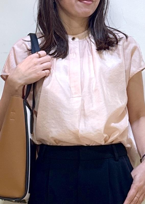 アウトレットROPÉ【洗える】キュプラシルク フレンチスリーブブラウスピンク系 / F¥9,900レビュー163センチ Fサイズ着用