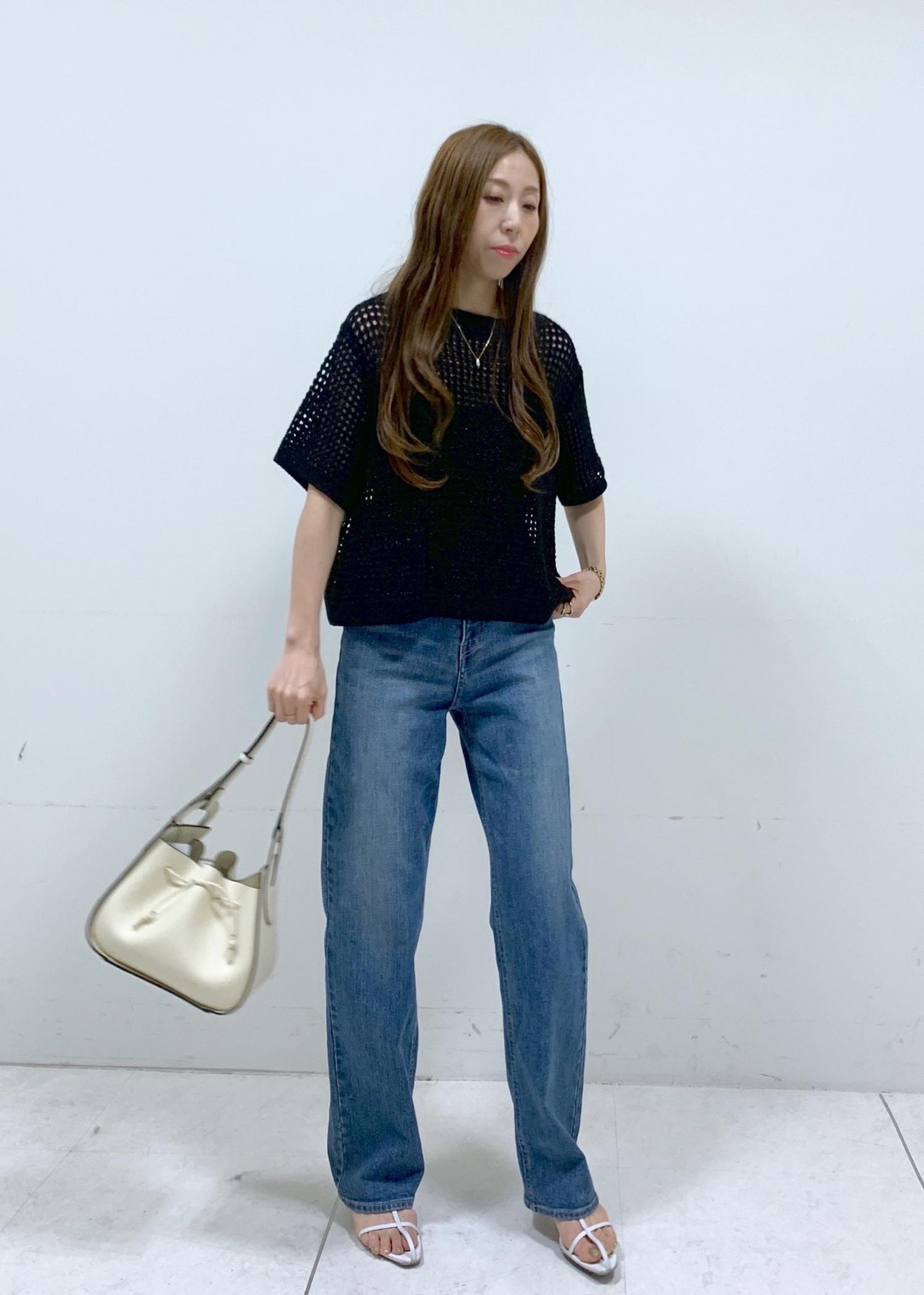 春らしいブルーと、ワンウォッシュのネイビーの2色展開で、春カラーのニットやツィード素材ジャケット合わせで綺麗めカジュアルに着るのもお勧めです。 -