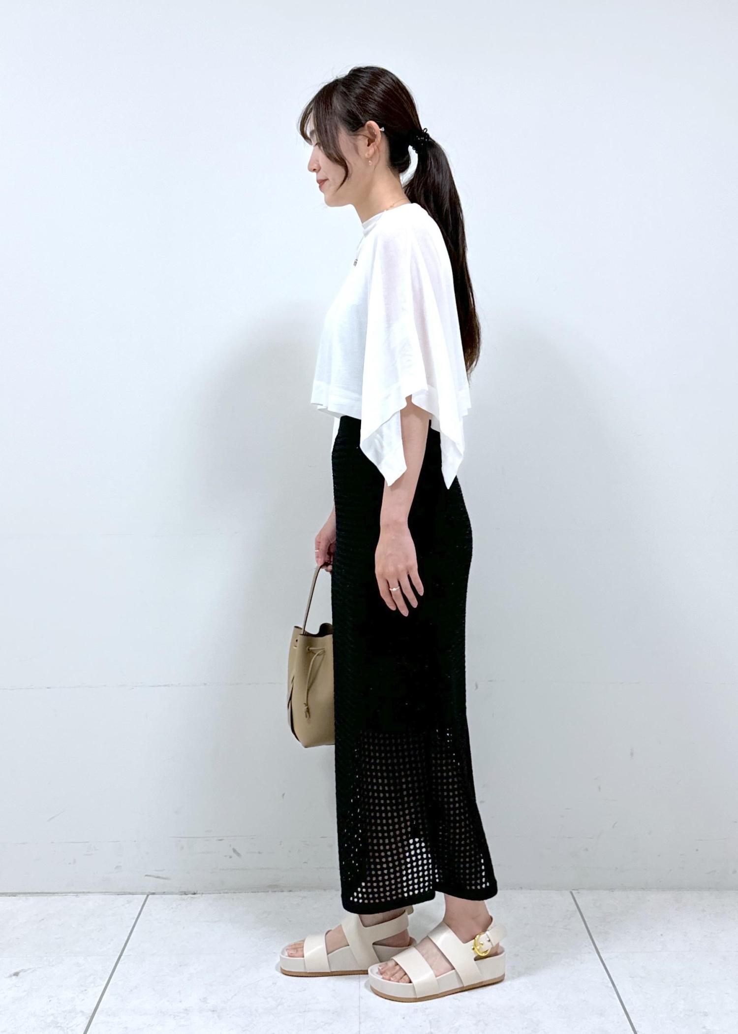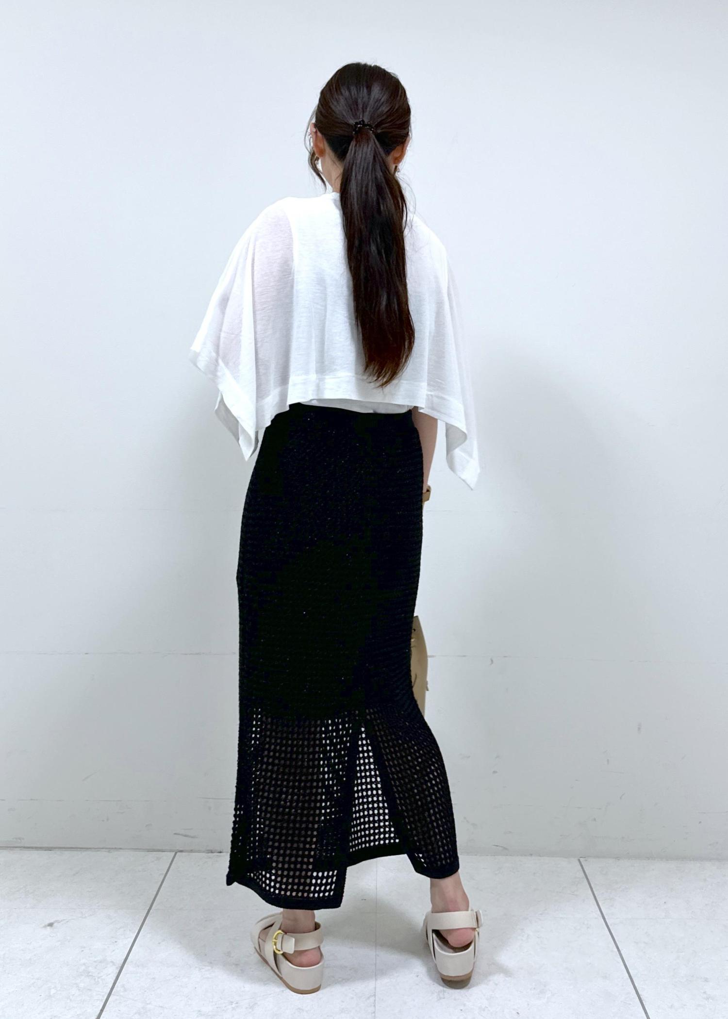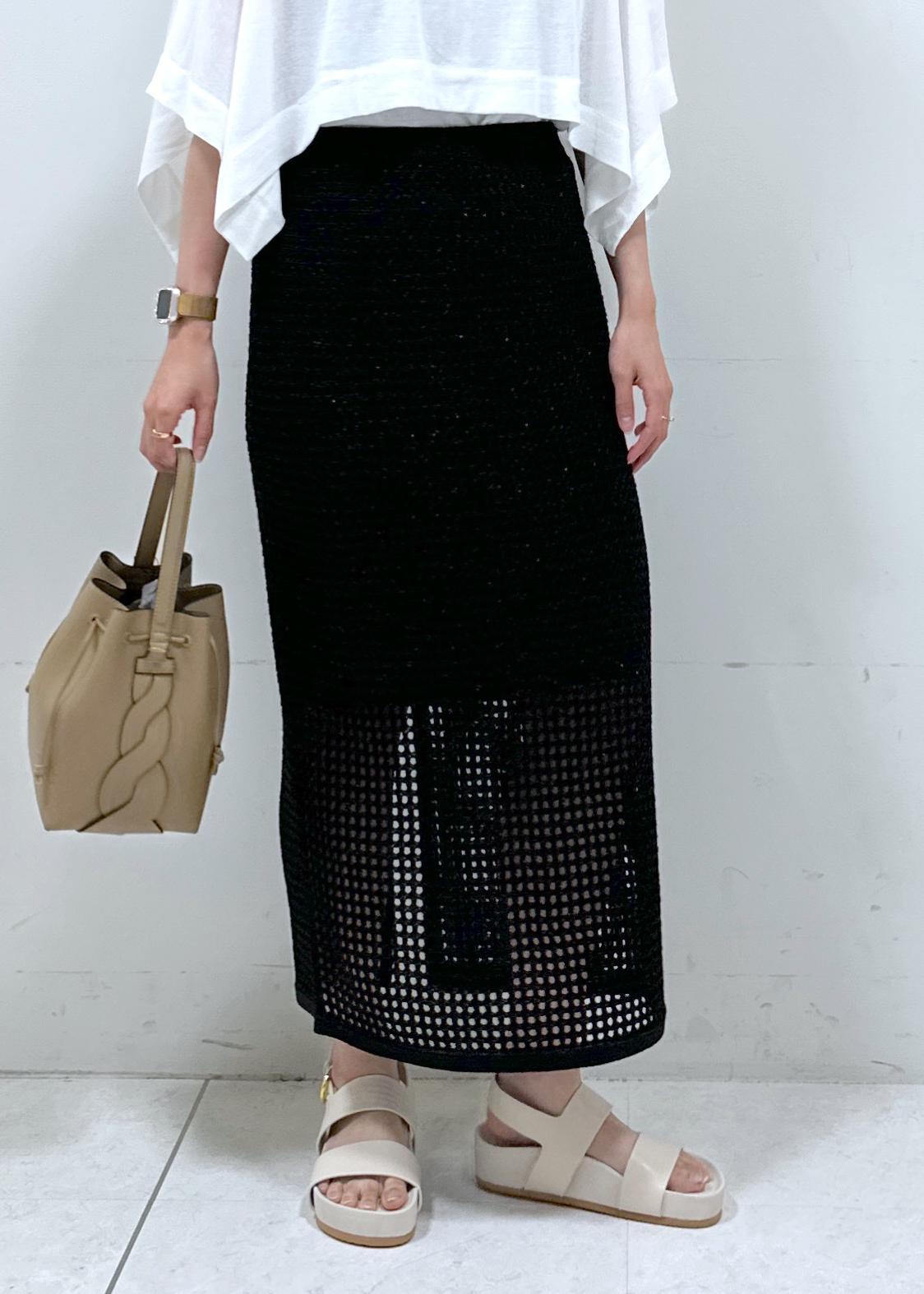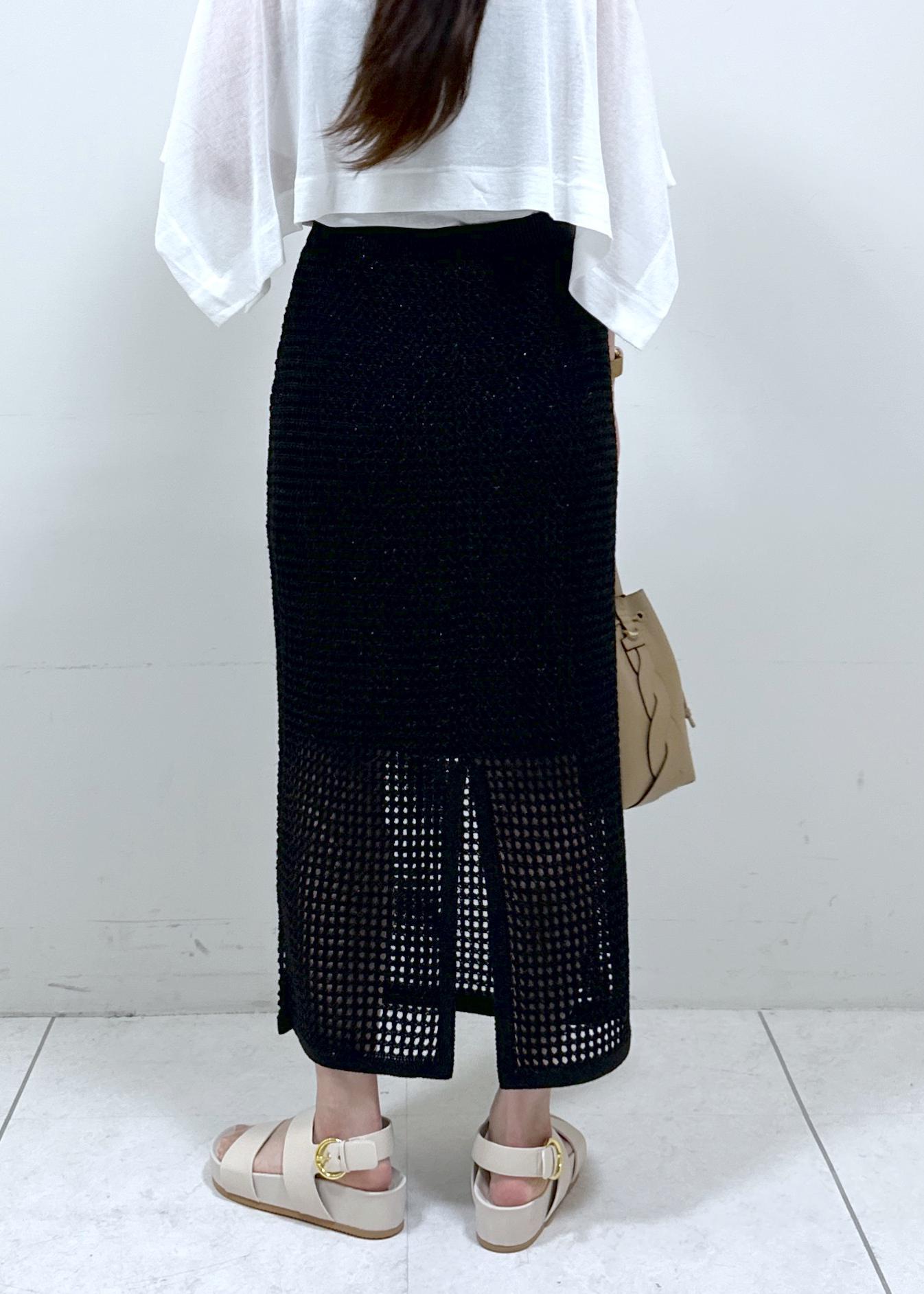 アウトレットROPÉラメメッシュスカート/セットアップ対応ブラック / 36¥13,200レビュー身長162cmで36サイズ着用。