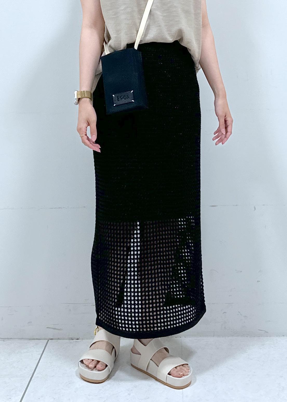 アウトレットROPÉラメメッシュスカート/セットアップ対応ブラック / 36¥13,200レビュー身長162cmで36サイズ着用。