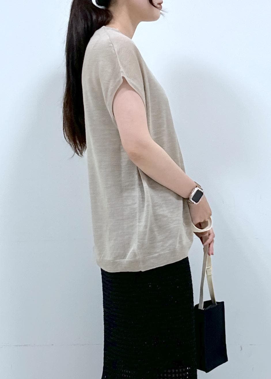 アウトレットROPÉラミー フレンチスリーブプルオーバー/サマーニットベージュ / F¥8,800レビュー全体的にゆったりとしたデザインです。