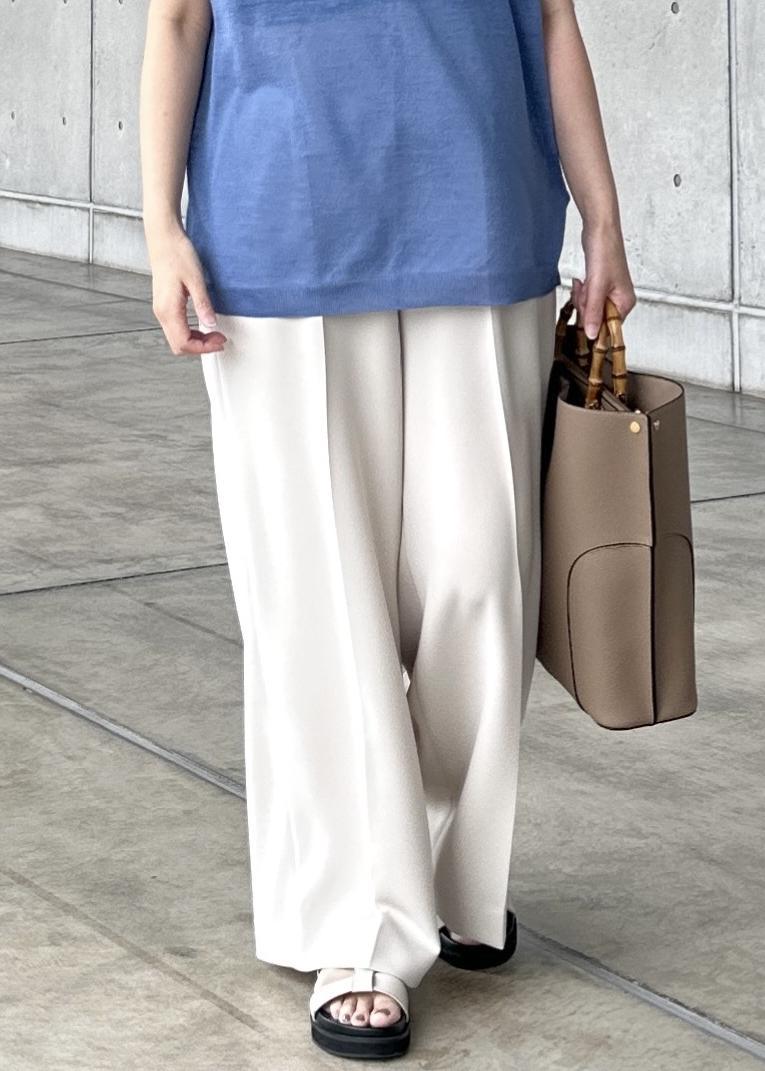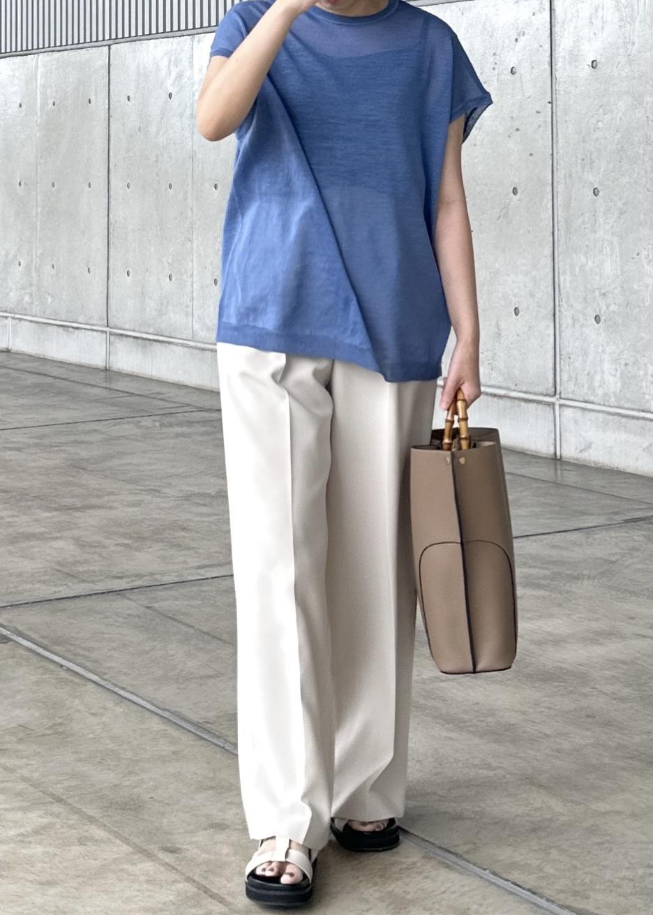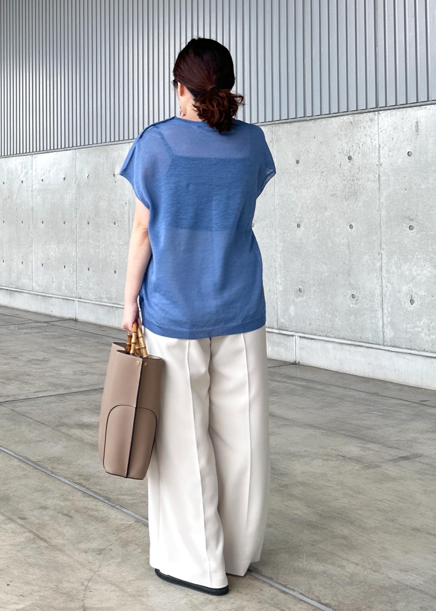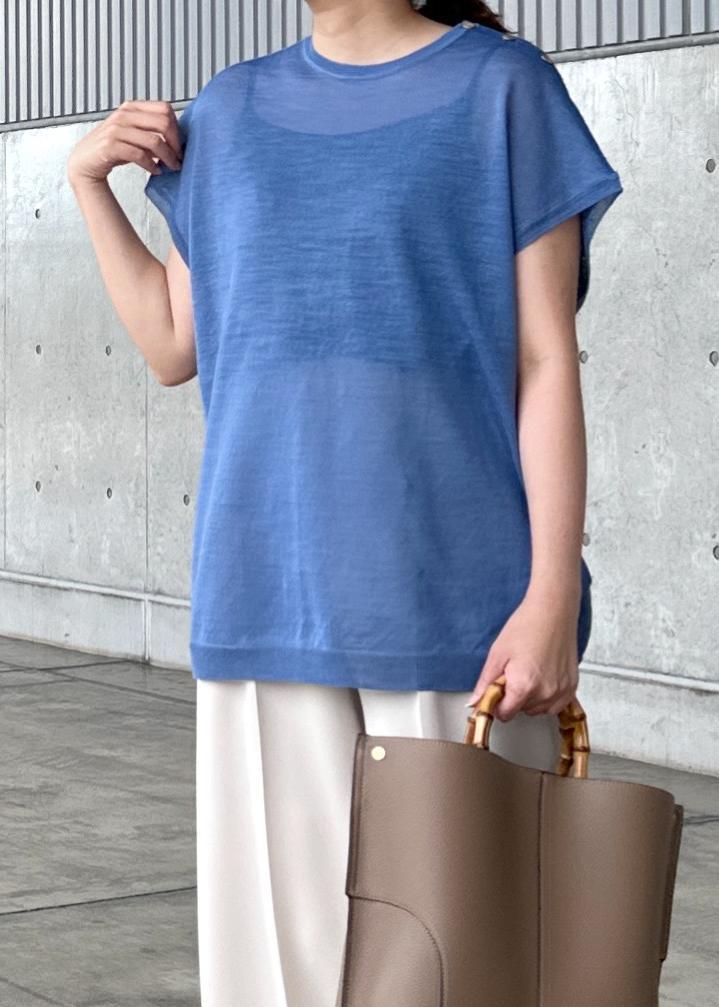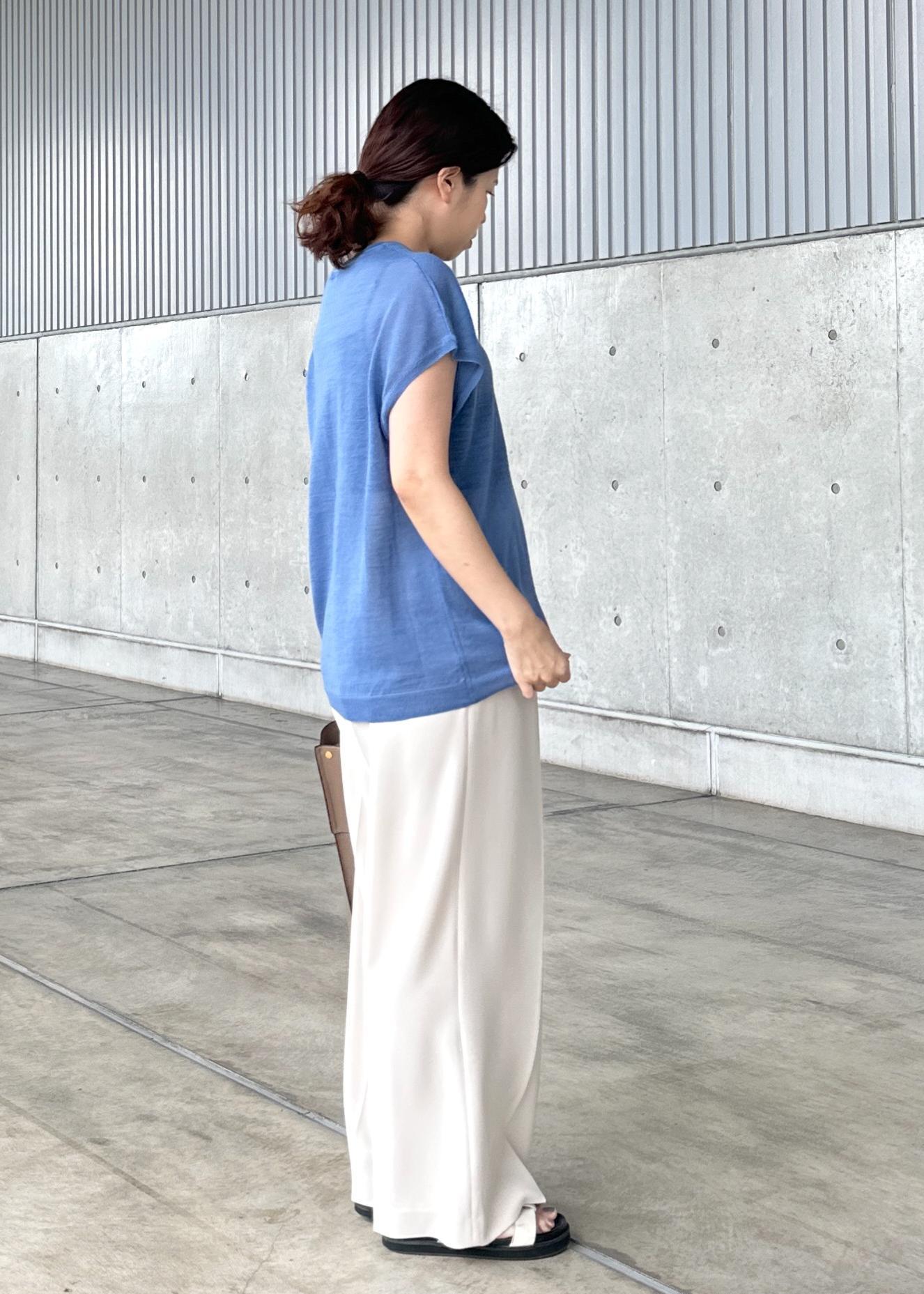 麻素材なので、真夏に使いやすくフレンチスリーブで肩が隠れるのでノースリーブが苦手な方も着やすいトップスです。