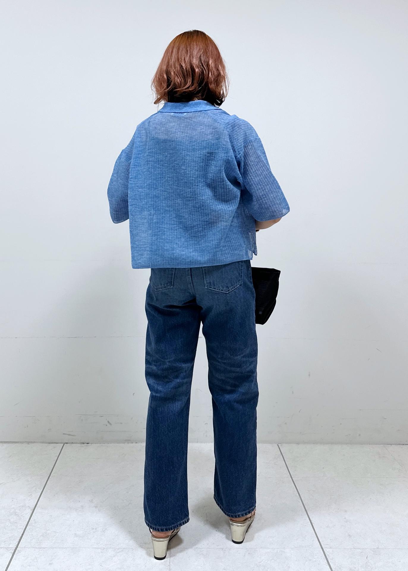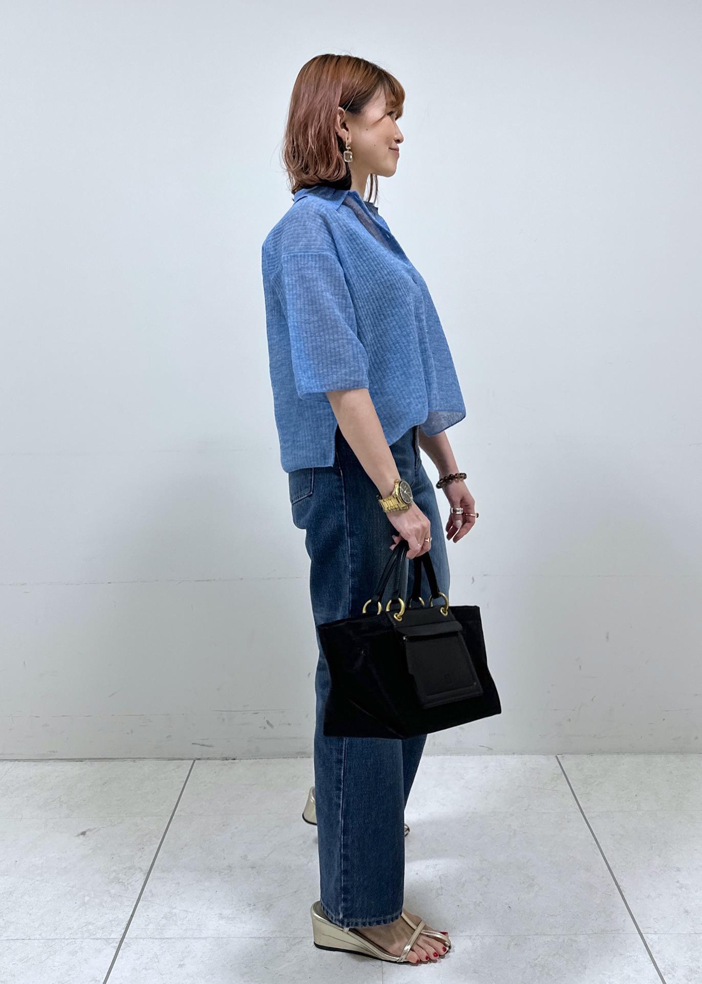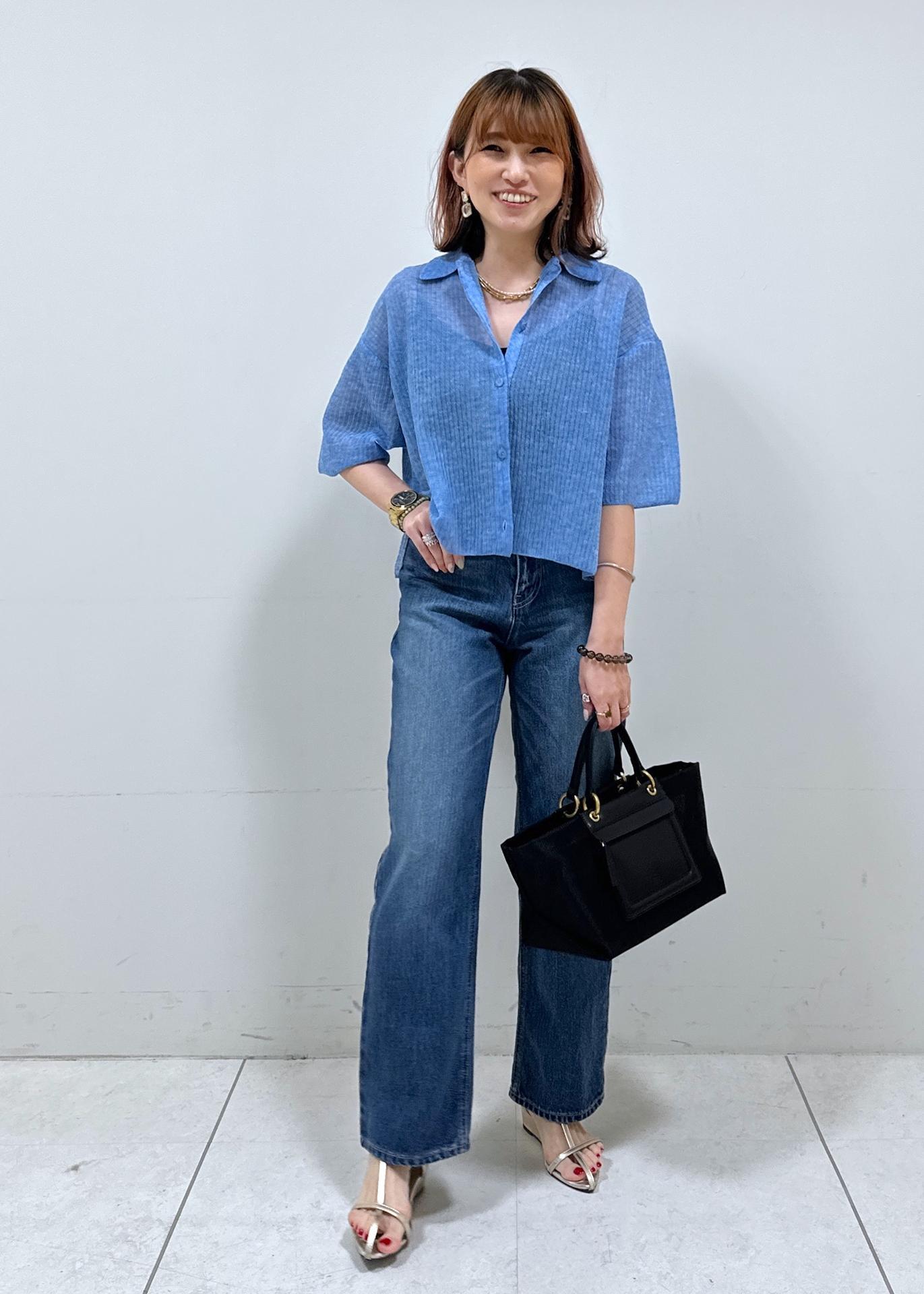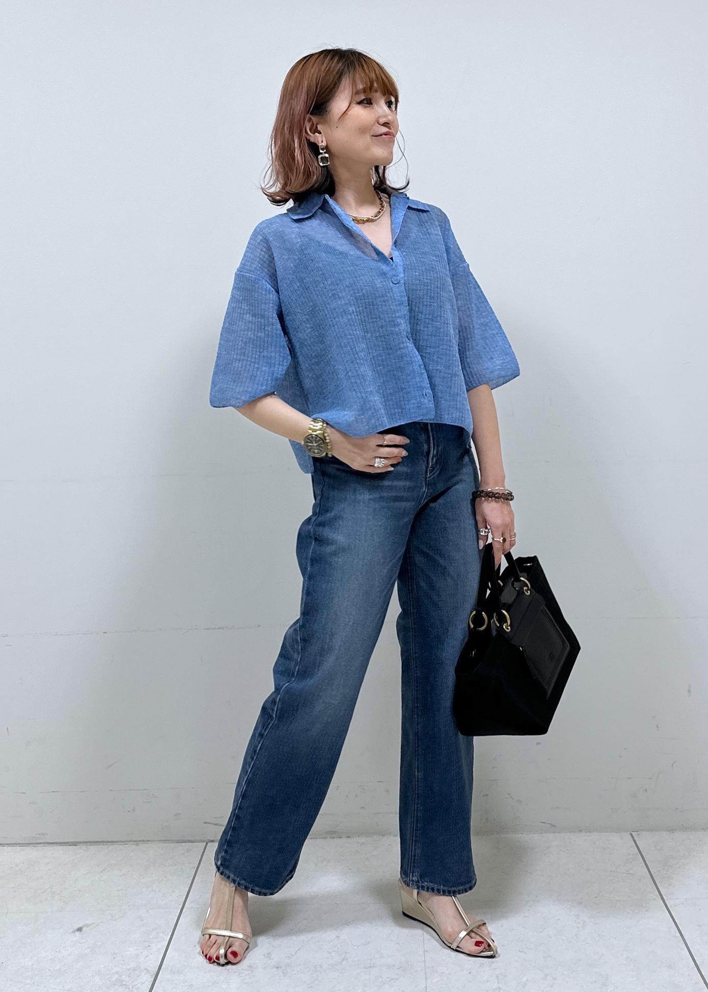 シアー素材のカーデブラウスで、アクティブカジュアルコーデ☆
