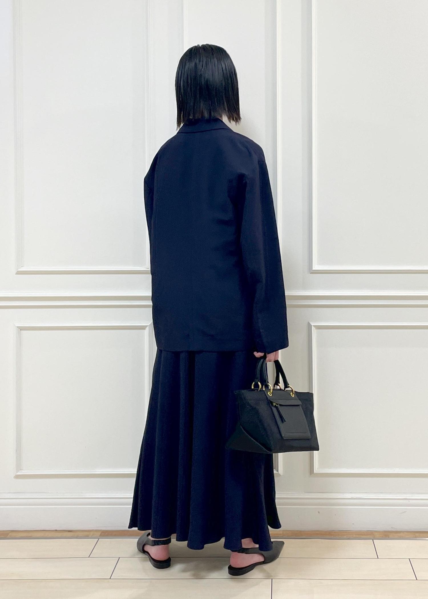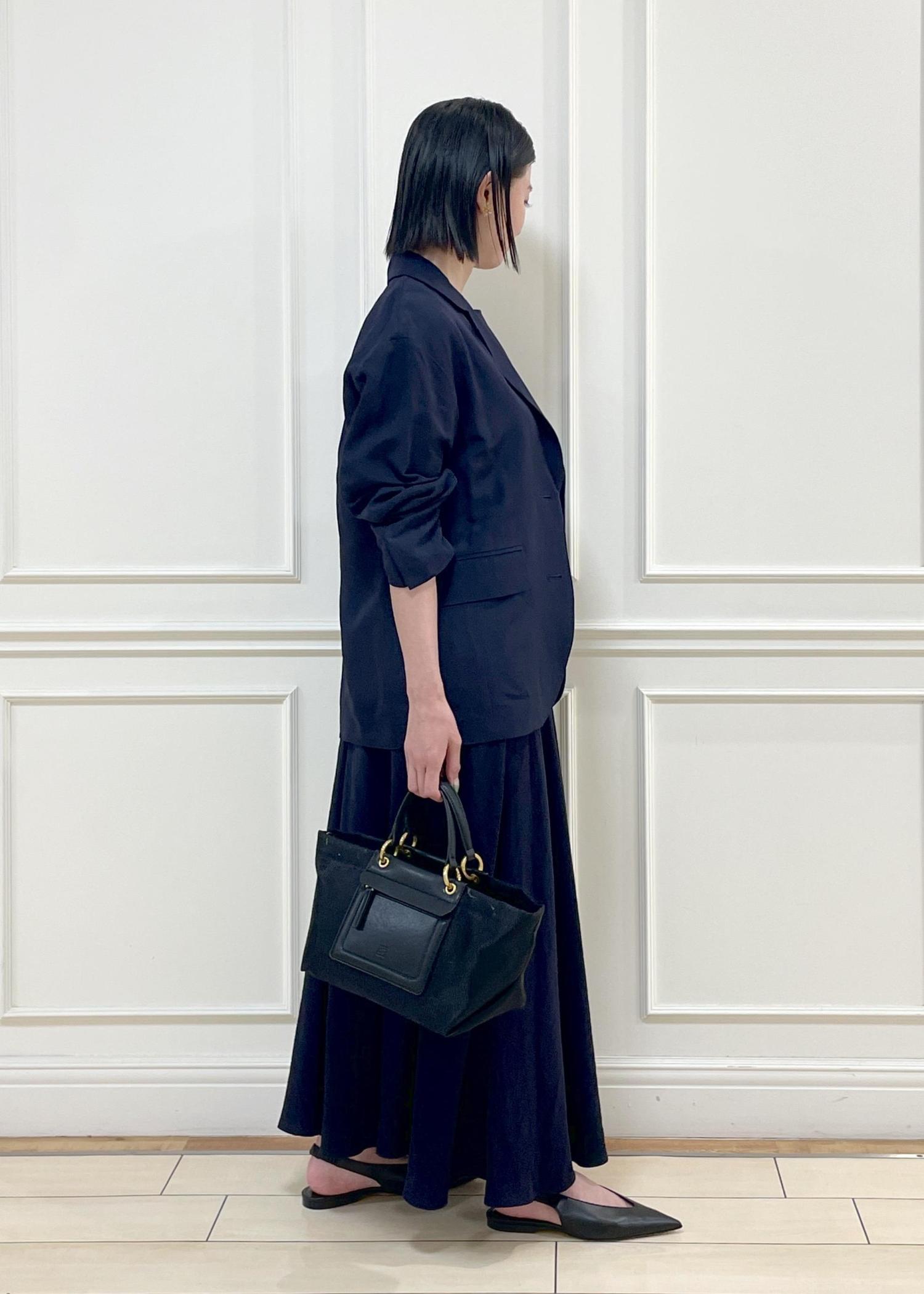 素材が落ち感があるので、広がりすぎないスカートのフレアデザインが女性らしくて可愛いです。