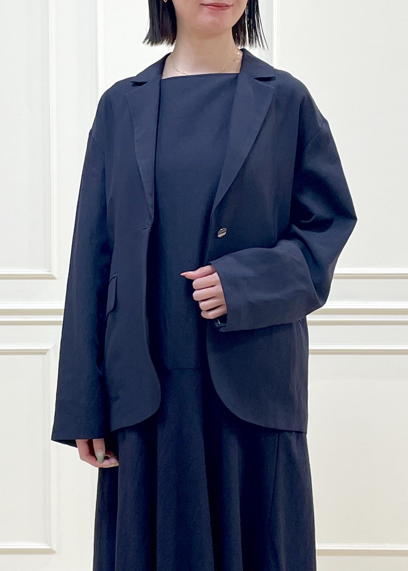 アウトレットROPÉレーヨンリネン ライトジャケット【セットアップパンツ・ワンピース対応】ネイビー / 36¥26,400レビュージャケットは、36、38サイズどちらとも着用する体型です。ゆったりと着用するのが好みです。こちらのジャケットは、全体的にオーバーサイズなので、36サイズが私の好みでした。