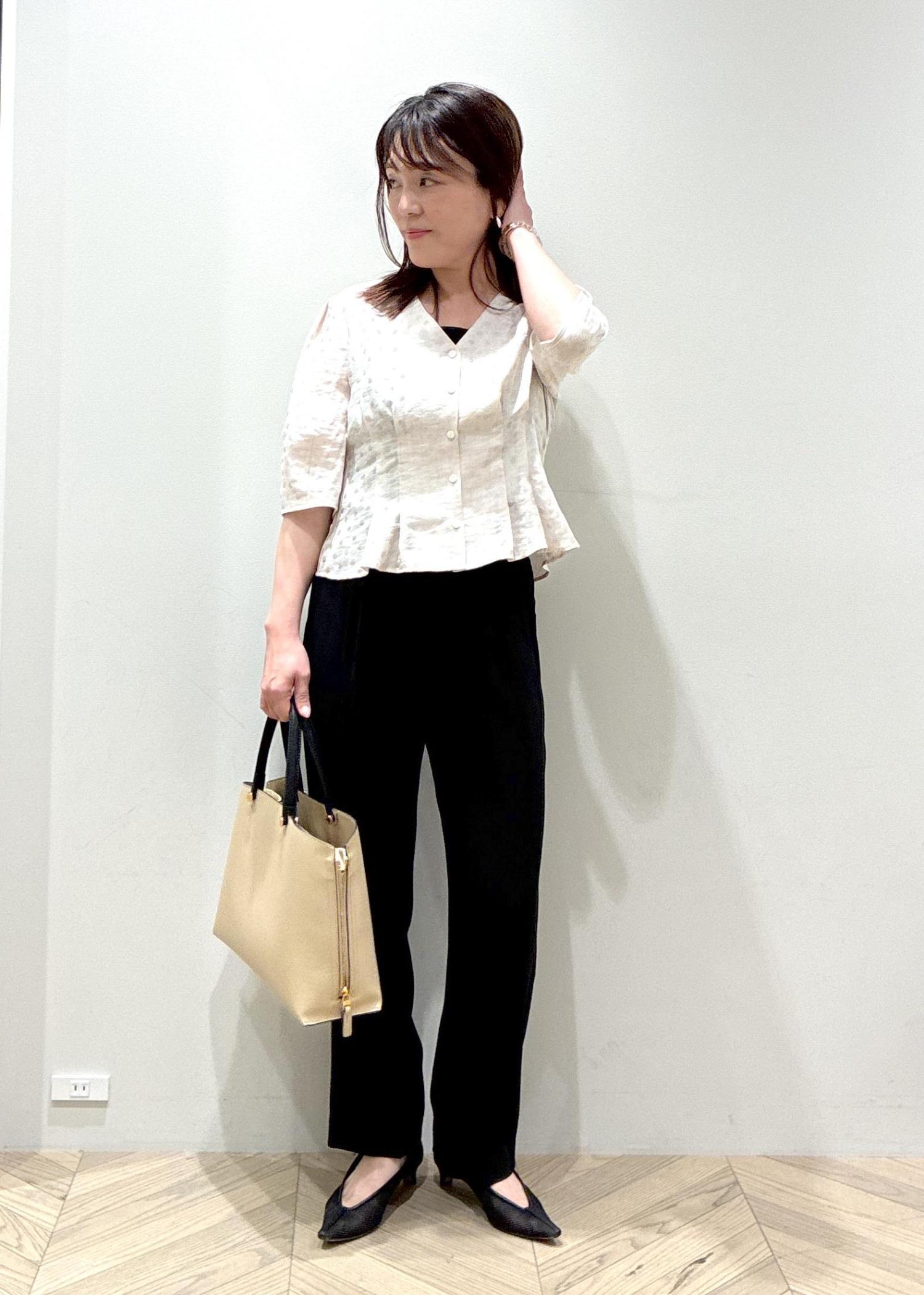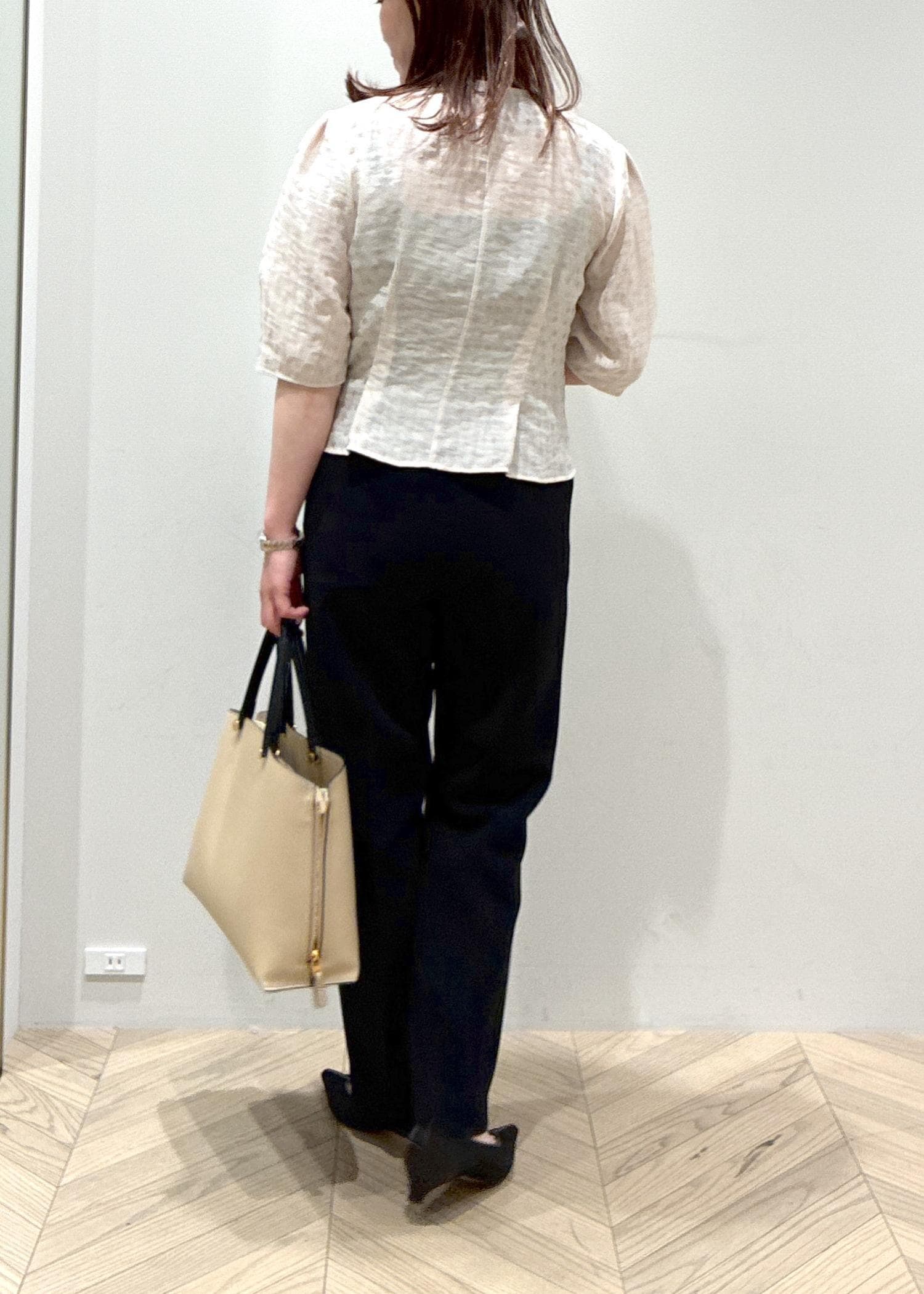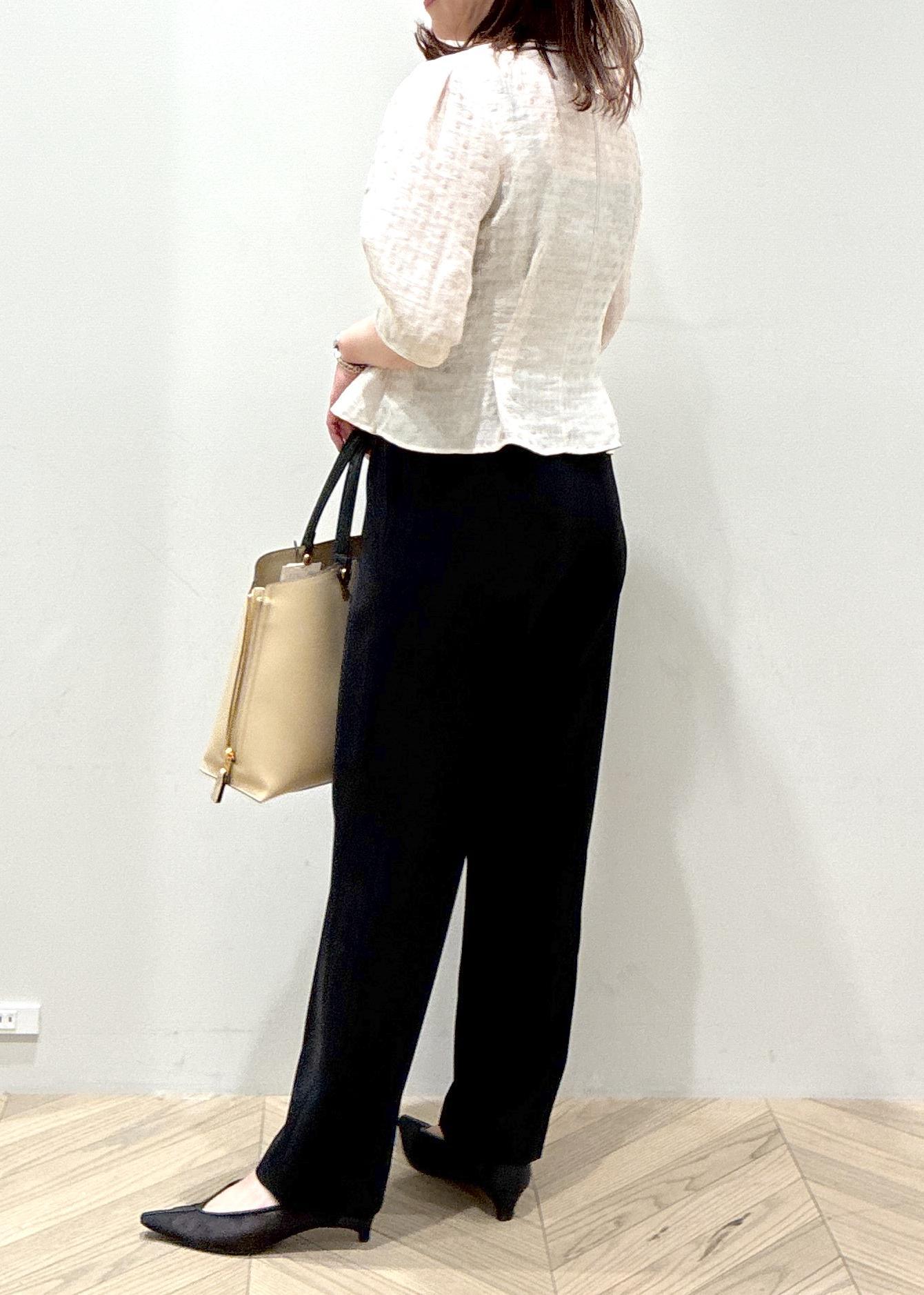 こちらのパンツはウエスト、ヒップ周りが割とゆったりめの印象でしたので、今回は36サイズを選びました。着丈もくるぶしが隠れる程度で私の身長で丁度良いです。