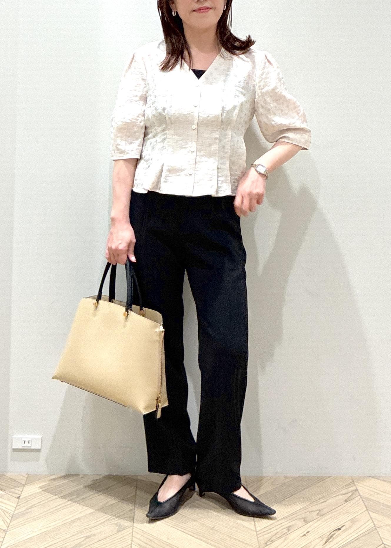 ROPÉ【洗える・羽織にもなる】Vネック5分袖パフスリーブブラウスホワイト系 / F¥18,700レビュー158cmフリーサイズ着用。