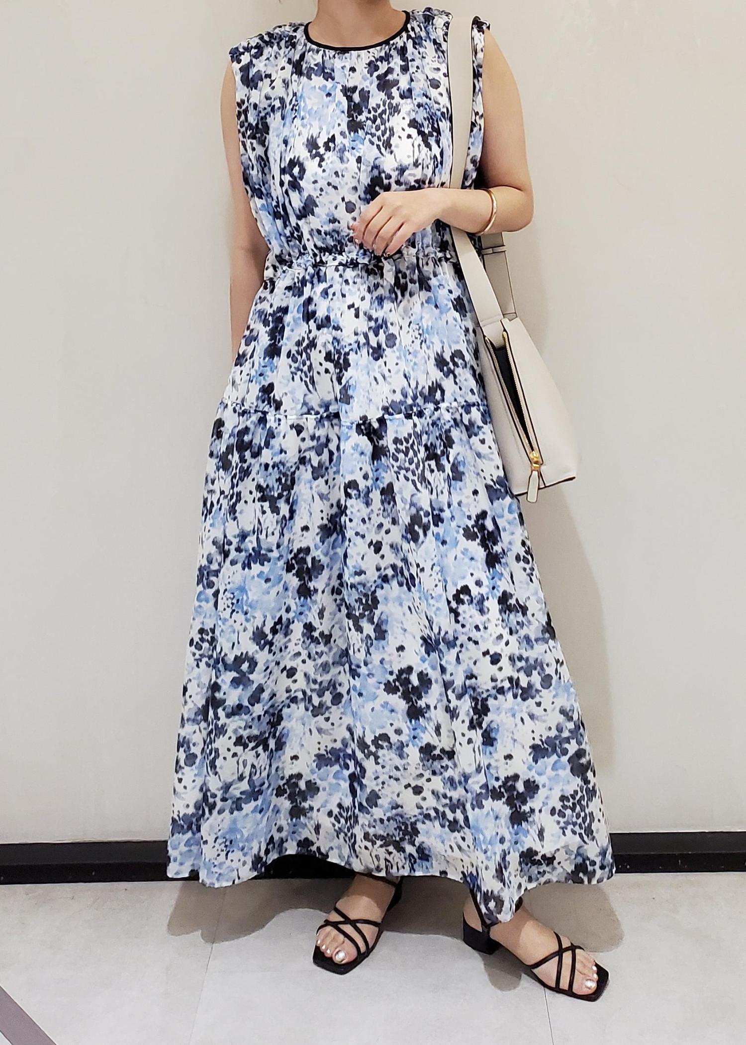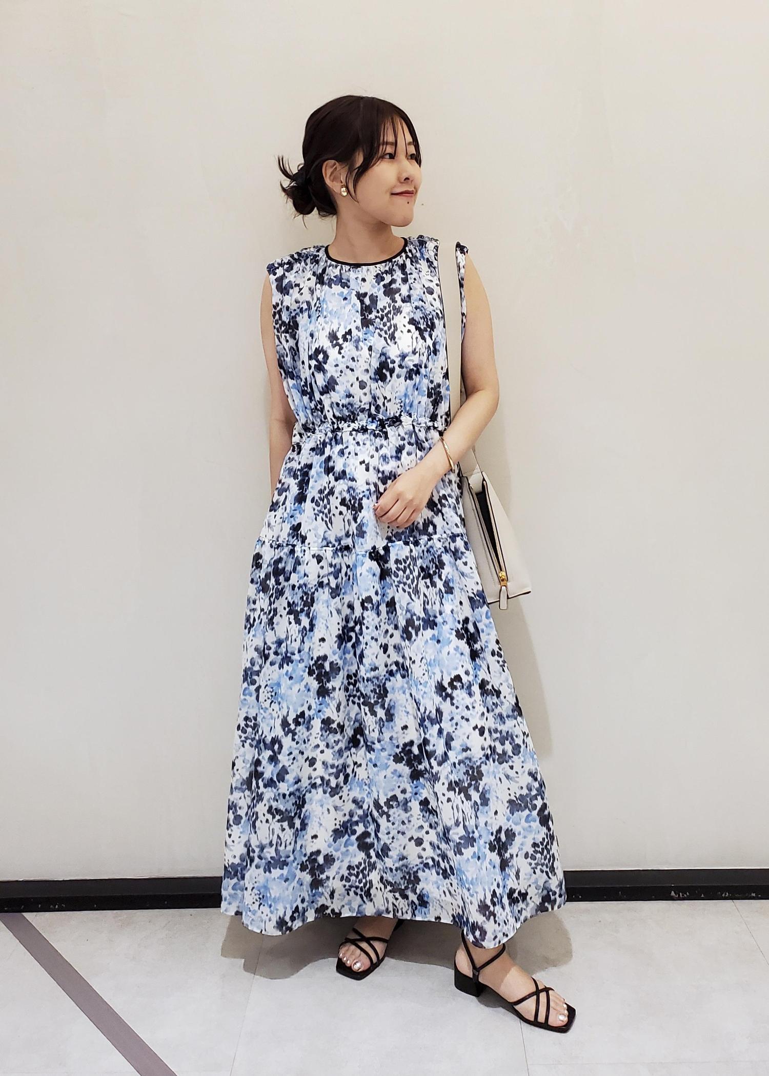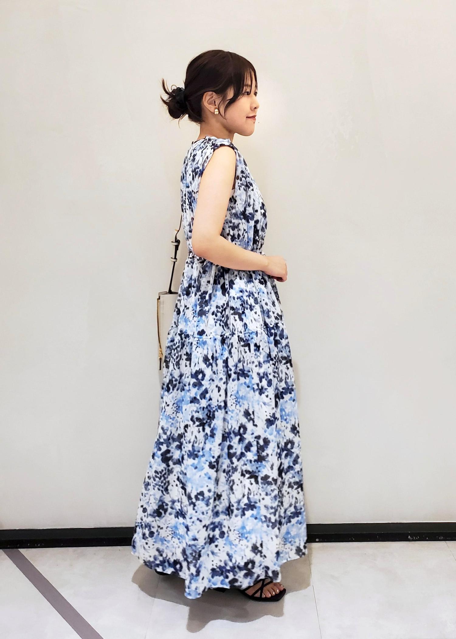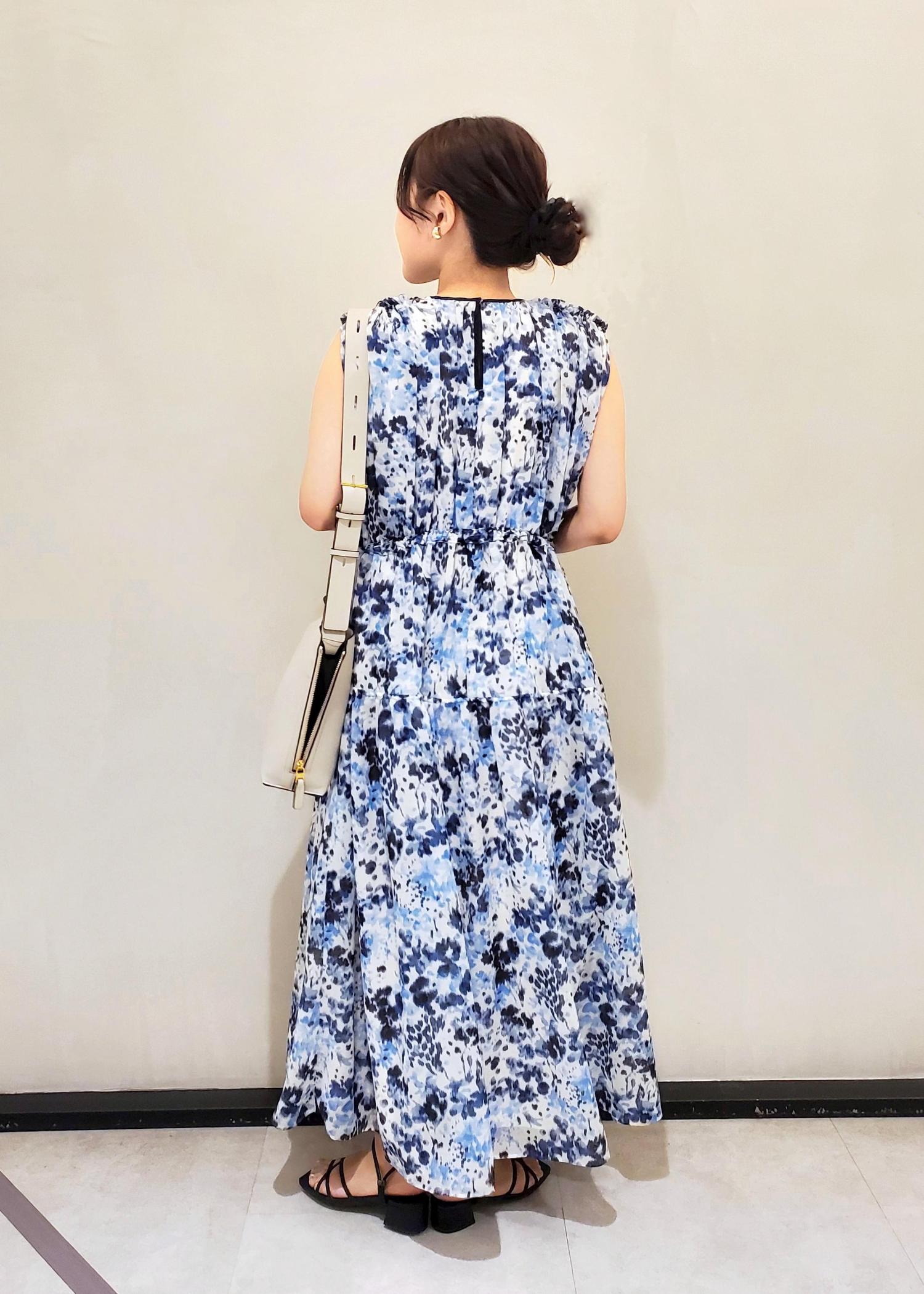 アウトレットROPÉフェイディドフラワープリント・無地ドレス/洗えるブルー / F¥17,600レビューウエストの内側に絞りがあるので、絞っていただくとすっきりとしたフィット&フレアのシルエットになります。