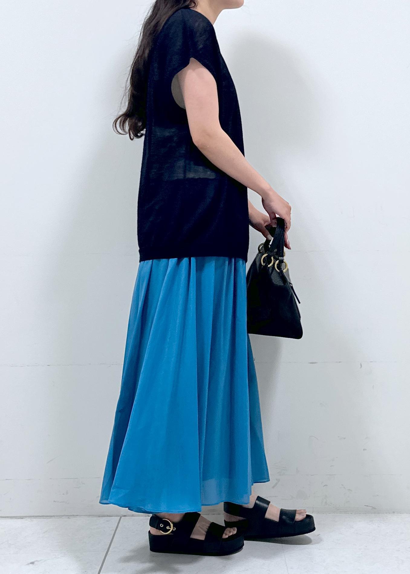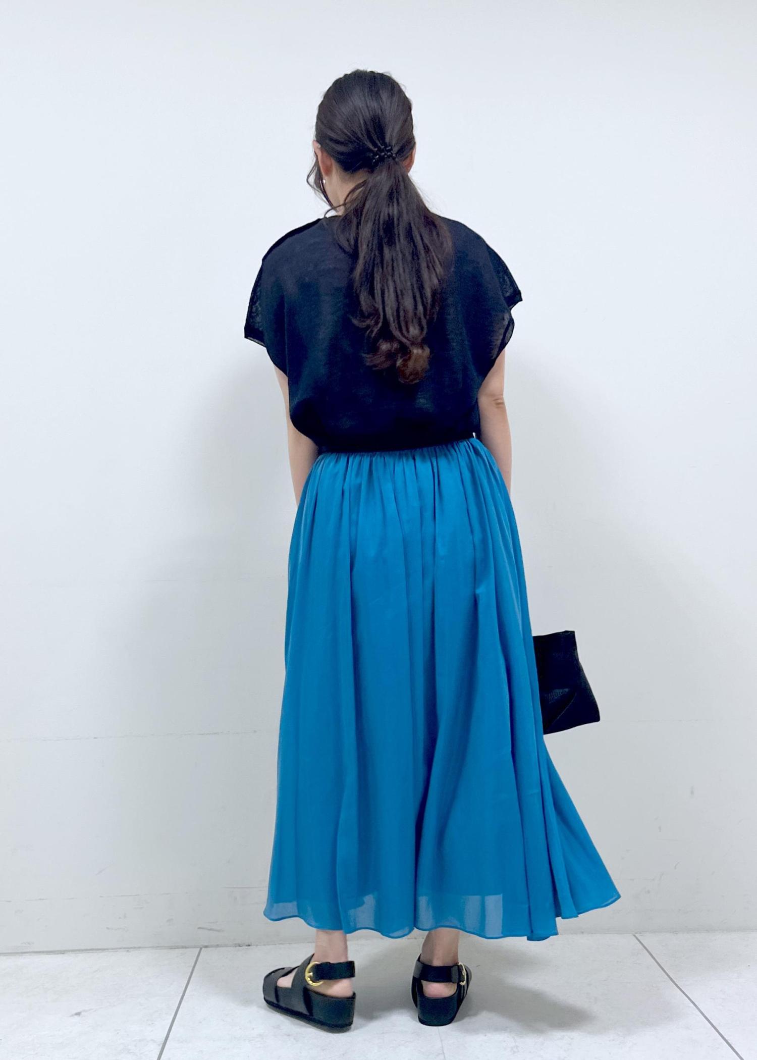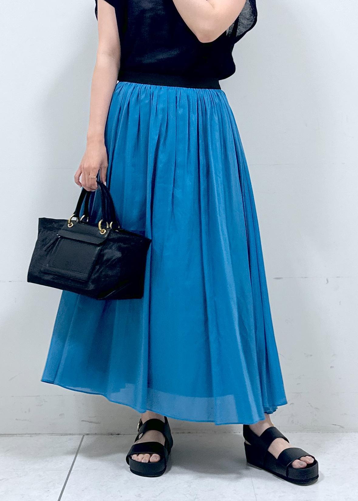 アウトレットROPÉ【洗える】コットンシルクスカートターコイズ / F¥11,000レビュー身長162cmでFサイズ着用。