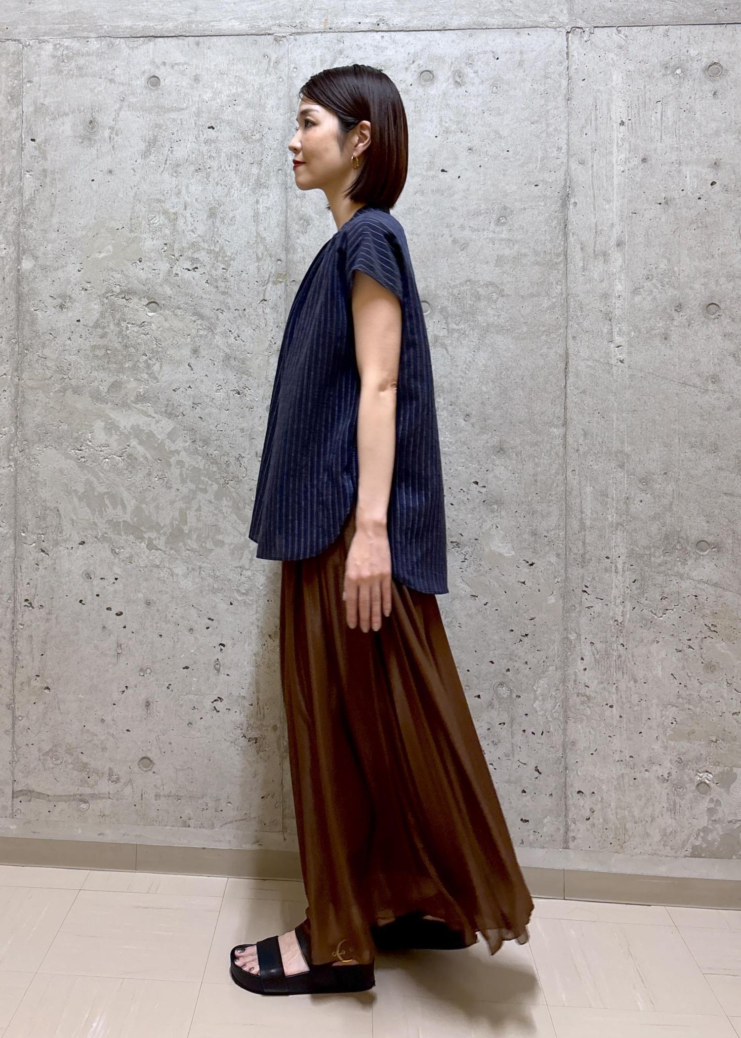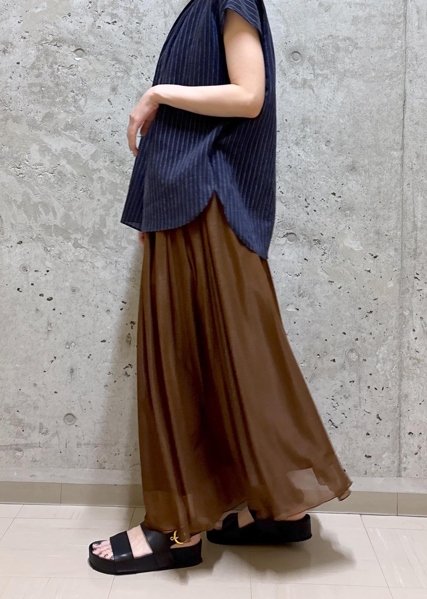 シアーで軽い履き心地のスカートなので、真夏でも涼しく履けそうです。