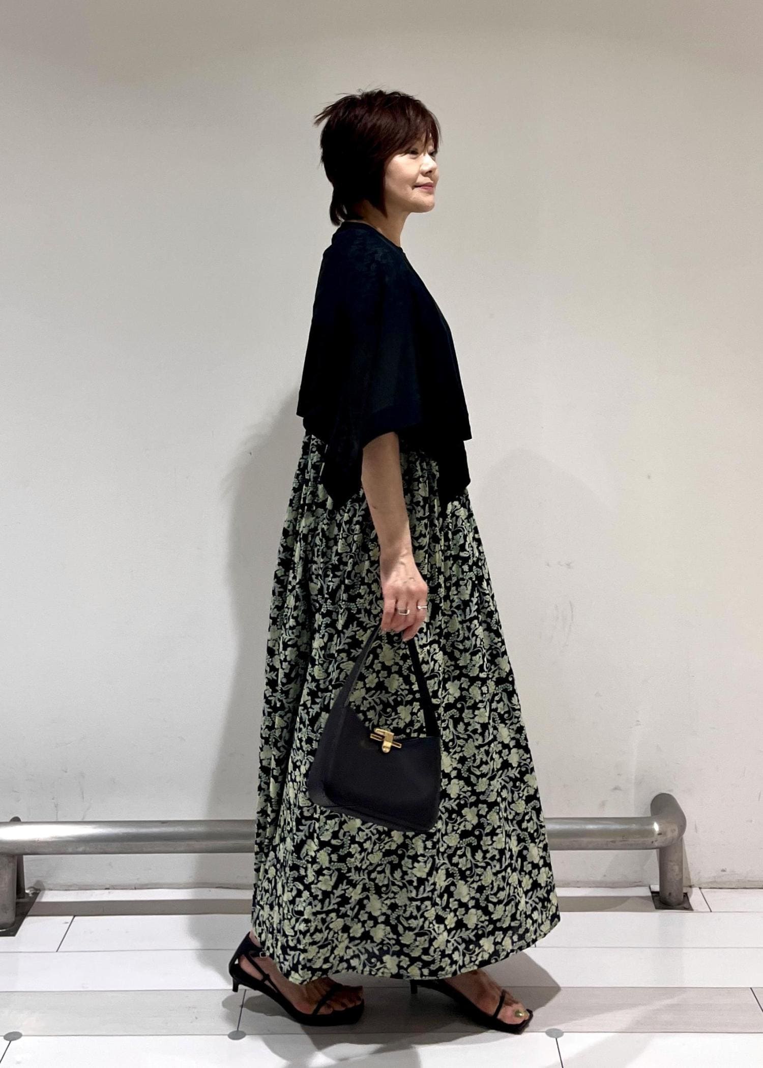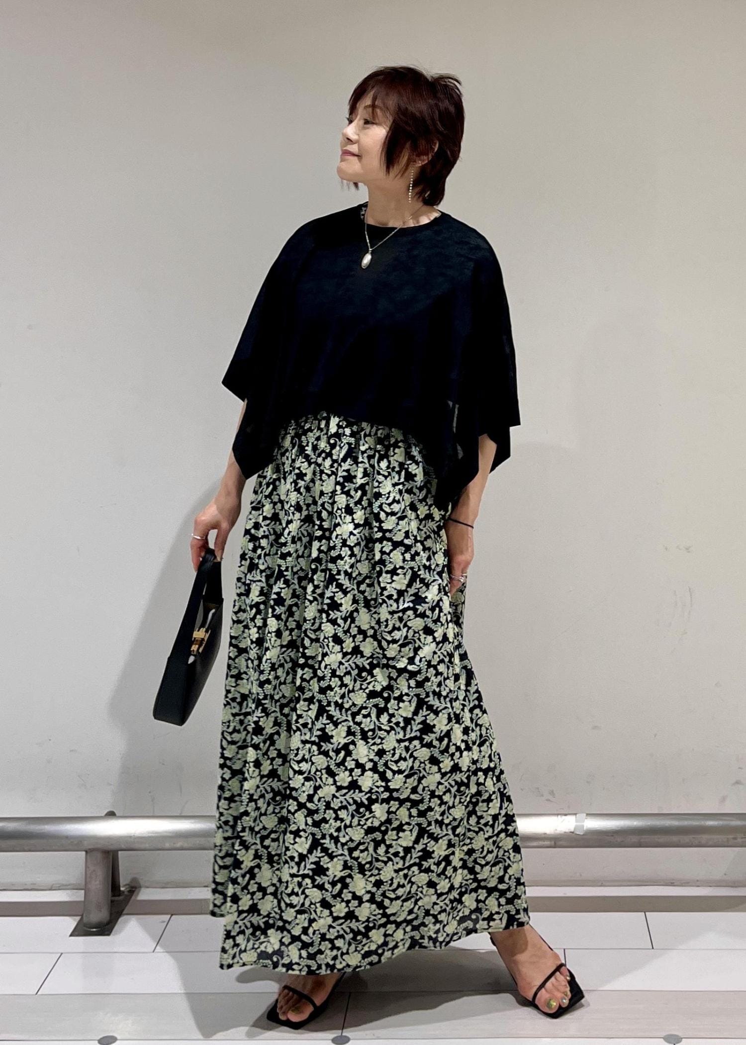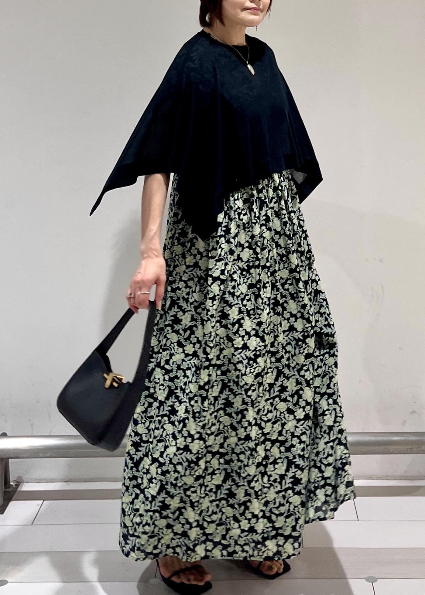 シアー感がより涼しげで、ケープの揺れ感が女性らしい印象に。