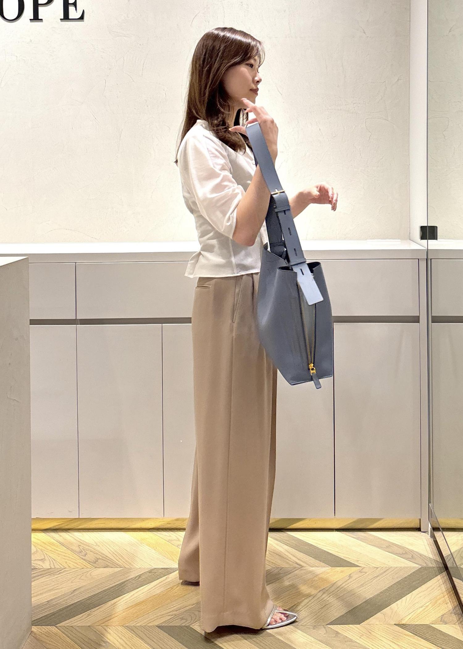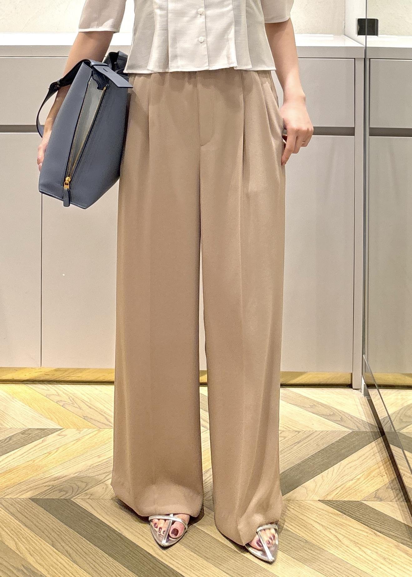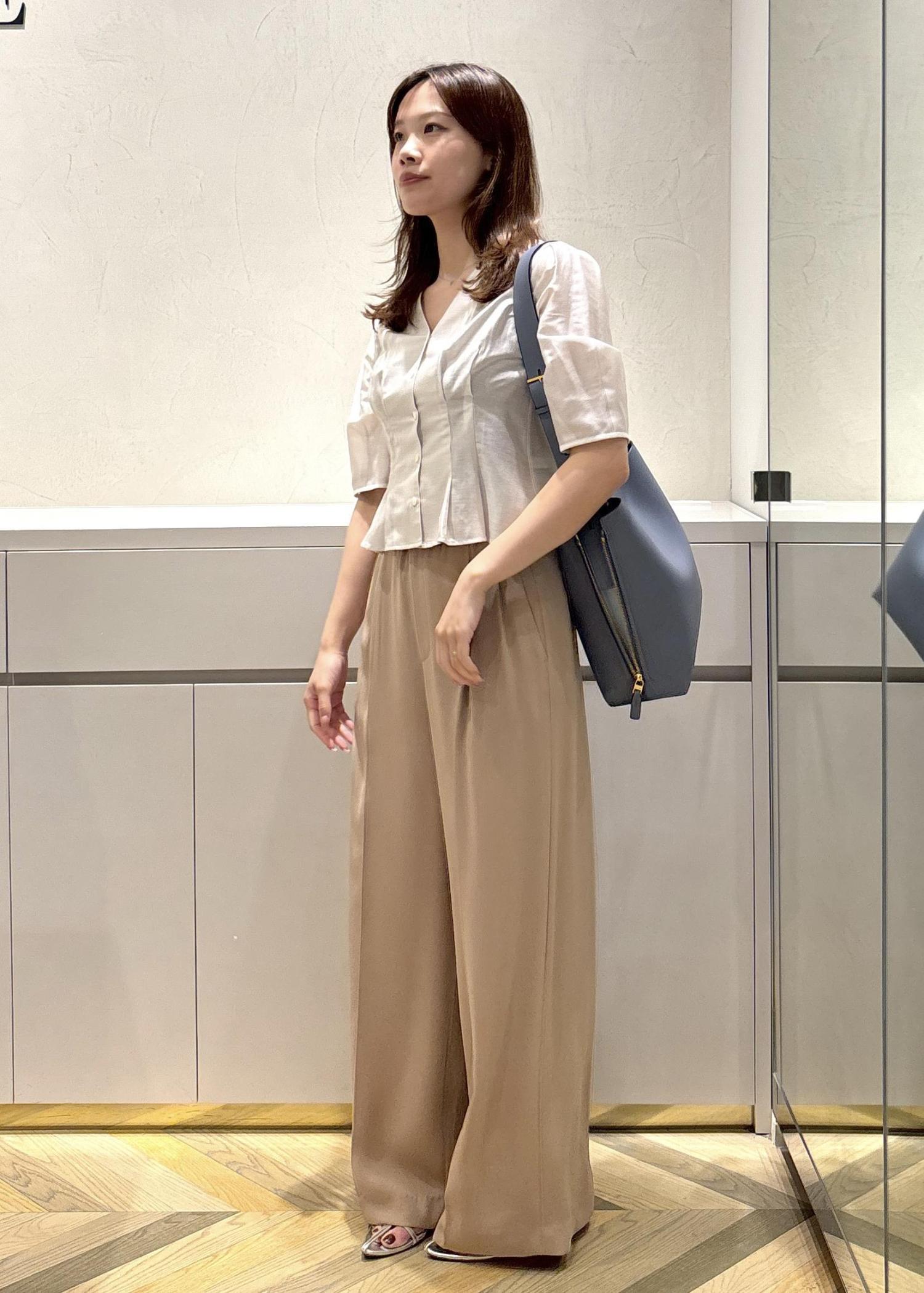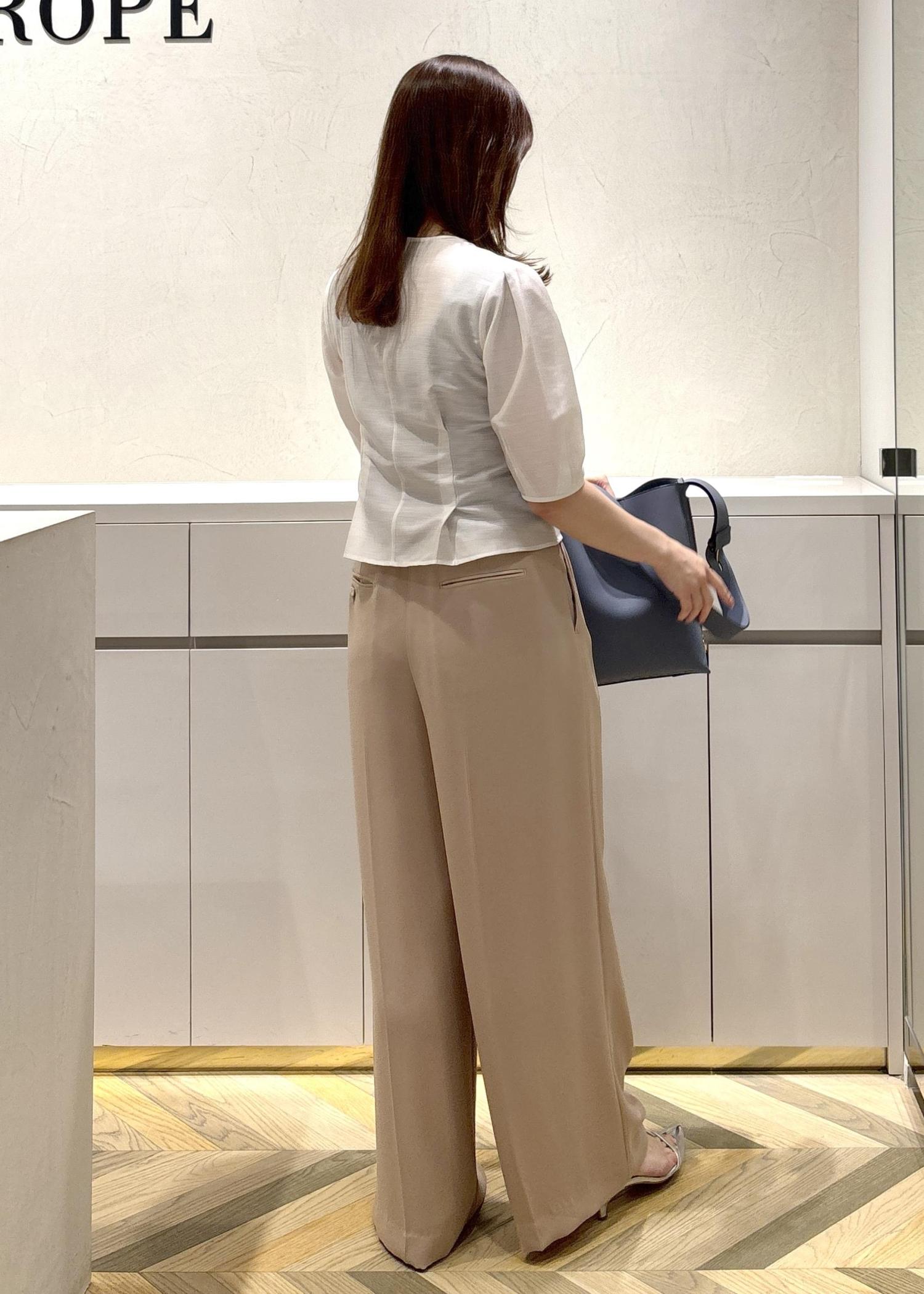 ROPÉ【洗える・カセット服】ライトトリアセイージーワイドパンツ/お仕事・通勤・セットアップ対応ベージュ / 38¥25,300レビューバックサテンのさらっとした生地感。シワになりにくく軽い着心地が特徴です。程よく光沢があり落ち感がきれいなデザイン。ウエストは総ゴムで楽な履き心地、ドロスト仕様なので調節可能です。全体のサイズ感はややゆったりめ、着丈は5cmヒールを合わせてちょうど良いくらい。