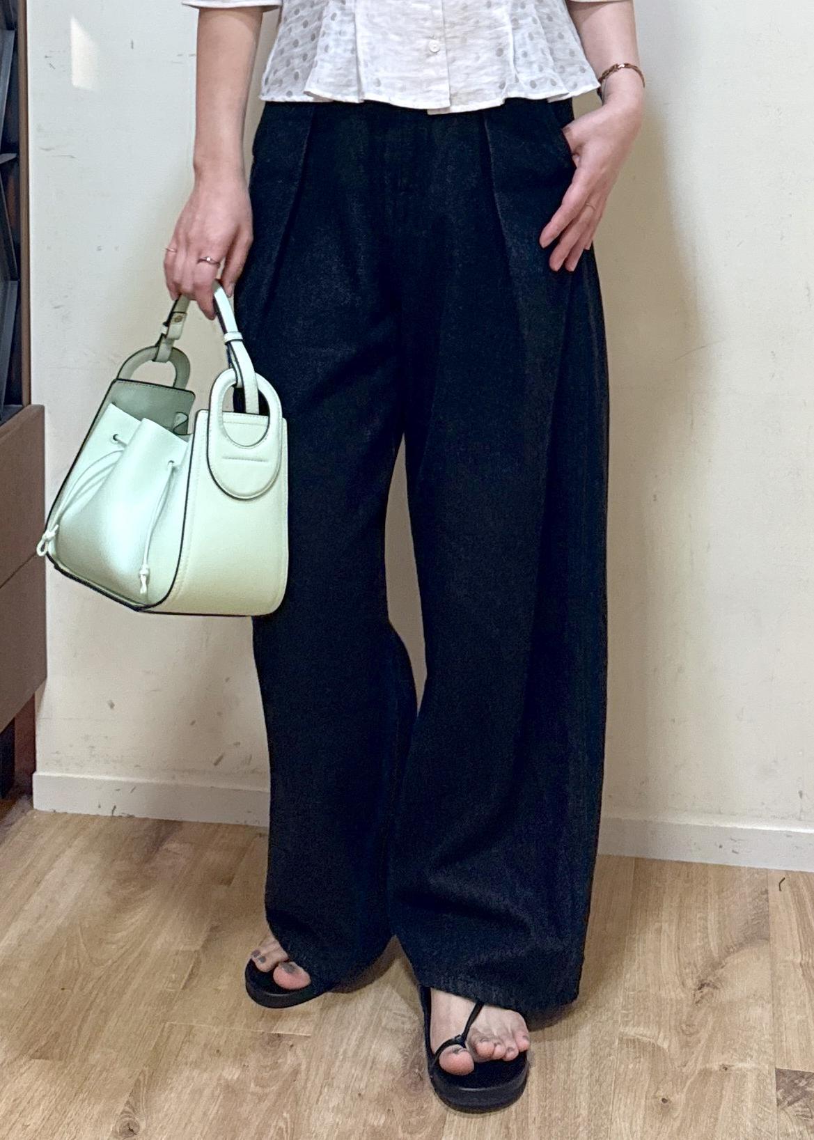 ROPÉ【洗える】ワンタック ワイドデニムパンツブラック / 38¥27,500レビュー163センチ 38サイズ着用