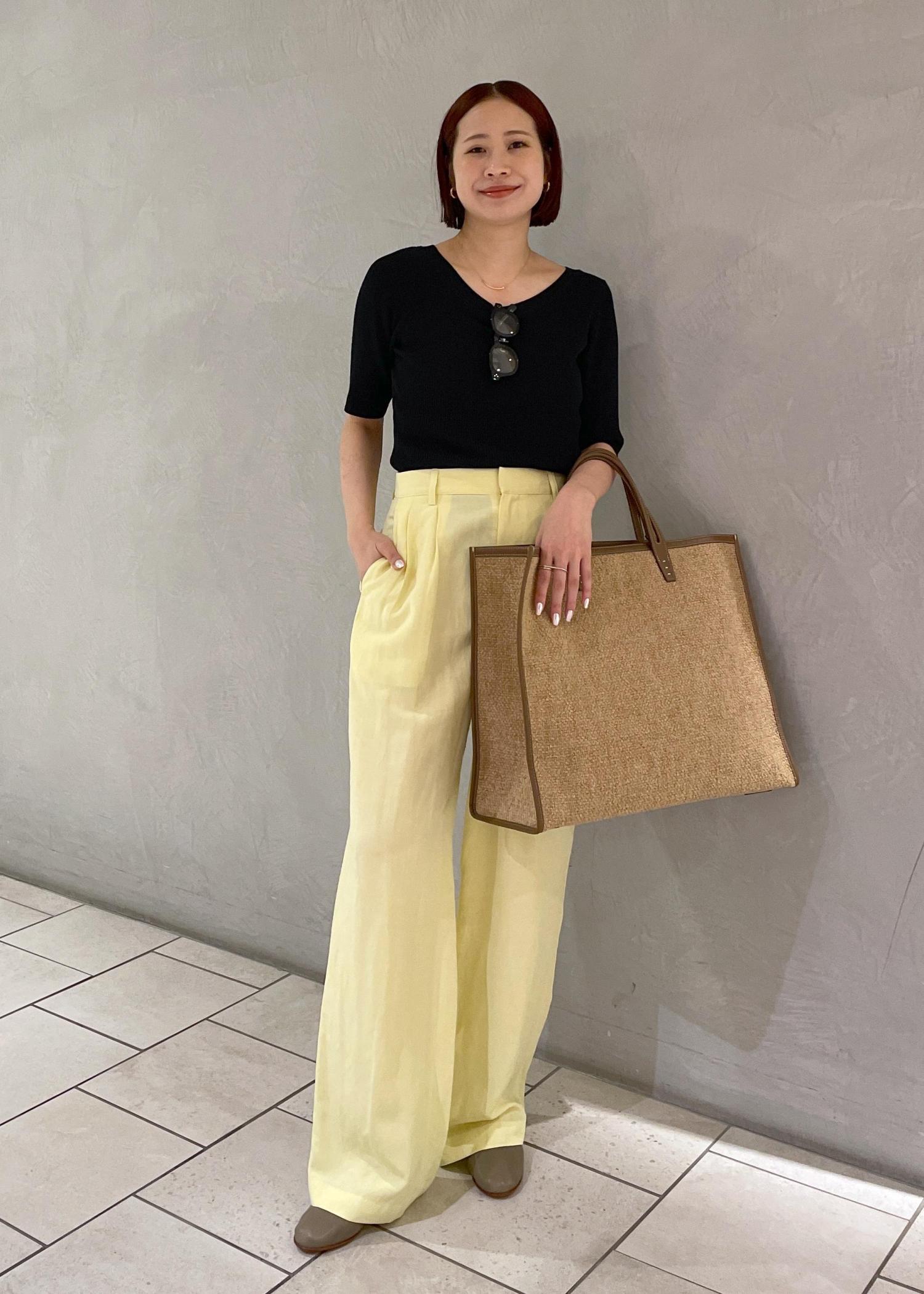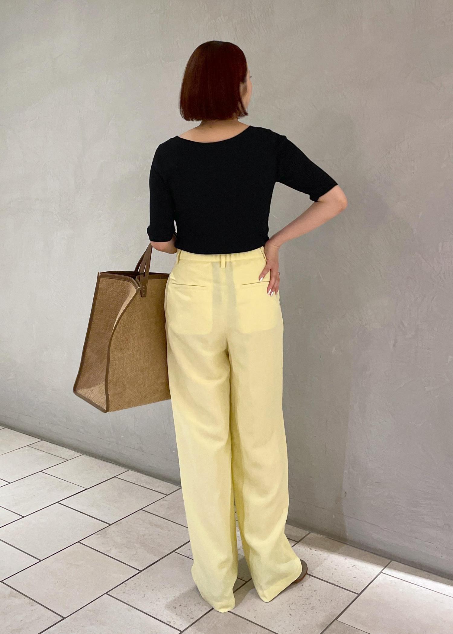 アウトレットROPÉレーヨンリネン センタープレスパンツ【セットアップジャケット・ワンピース対応】イエロー / 38¥13,750レビュー161cm36サイズ着用。