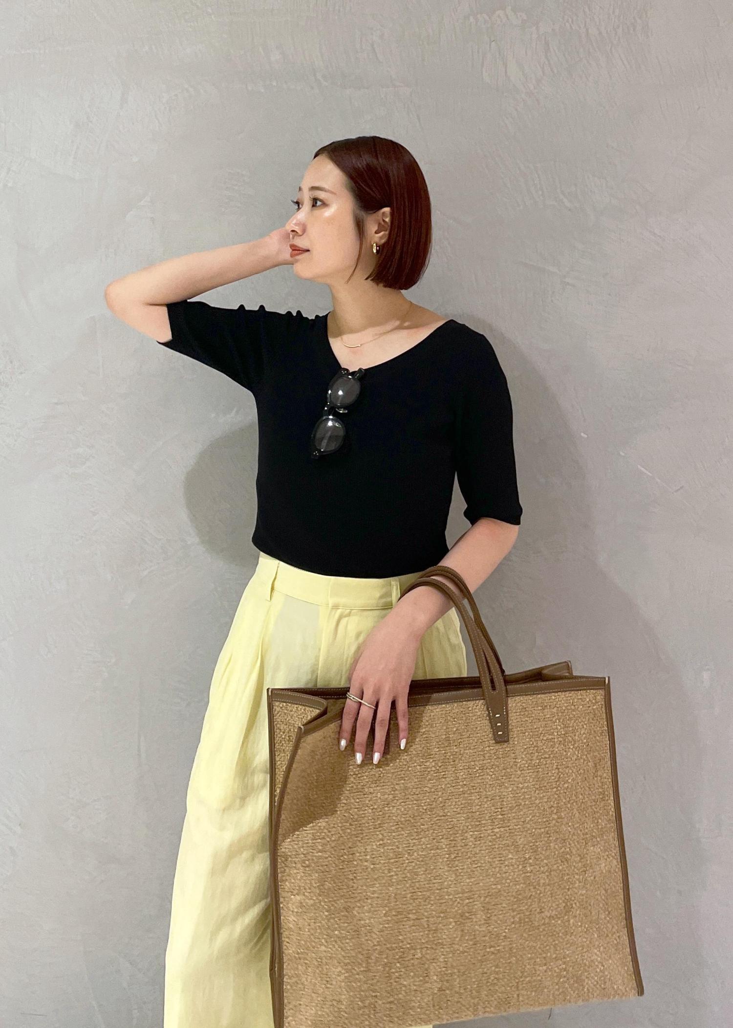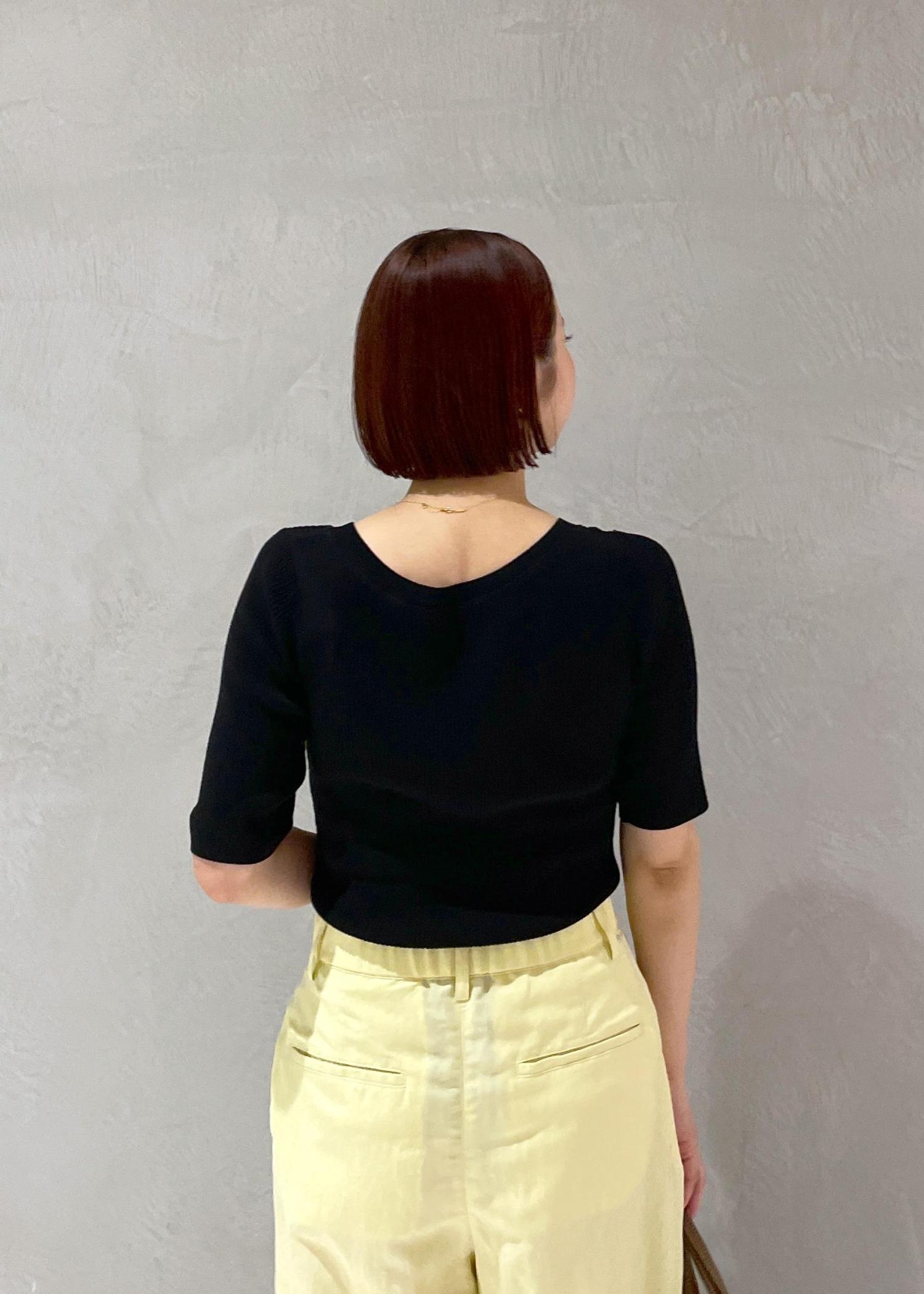アウトレットROPÉ【洗える】【WEB・一部店舗限定】前後2WAYボートネックリブ5分袖ニットブラック / F¥4,950レビュー細身に見えますが伸縮性がありストレスフリーな着心地。