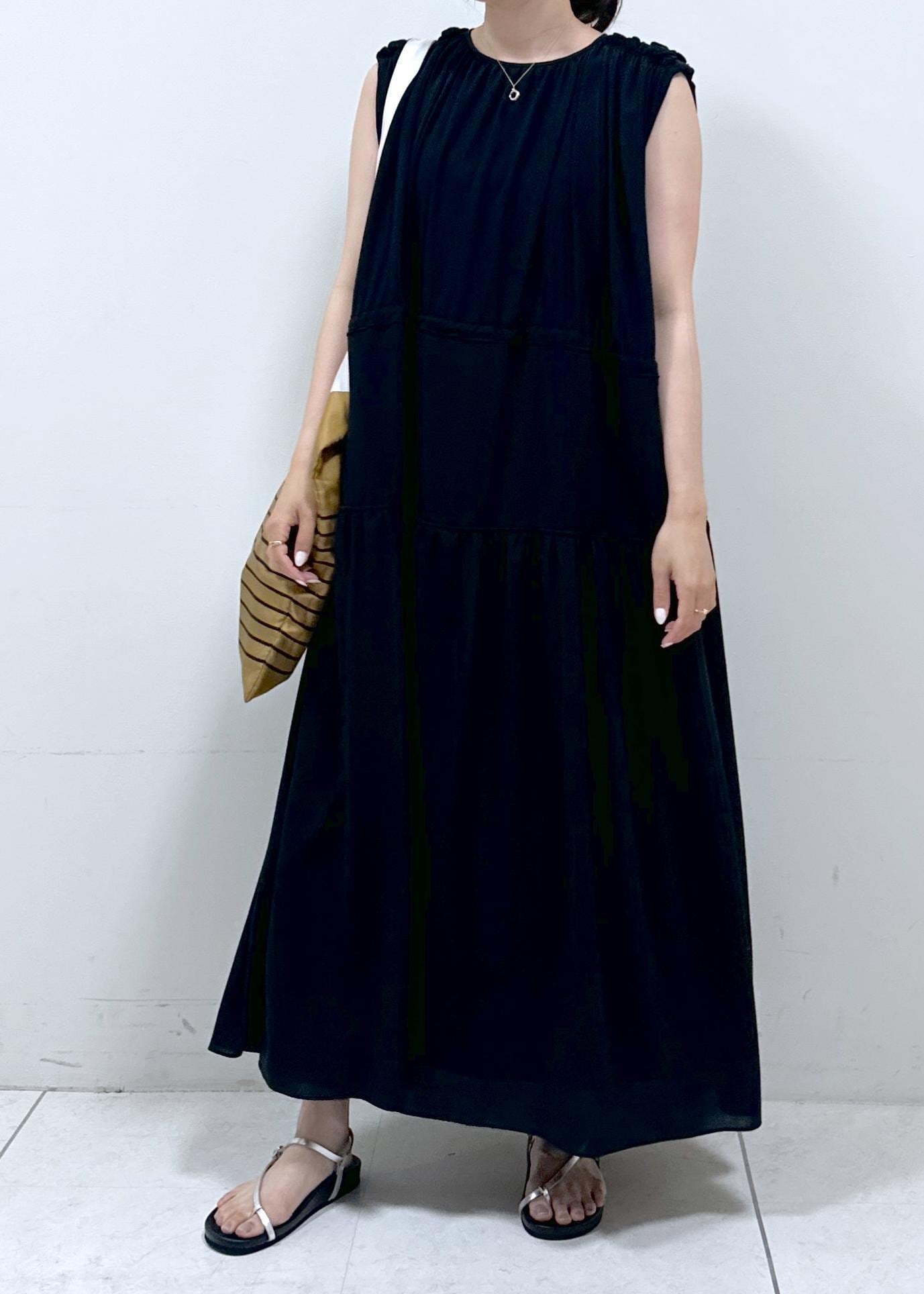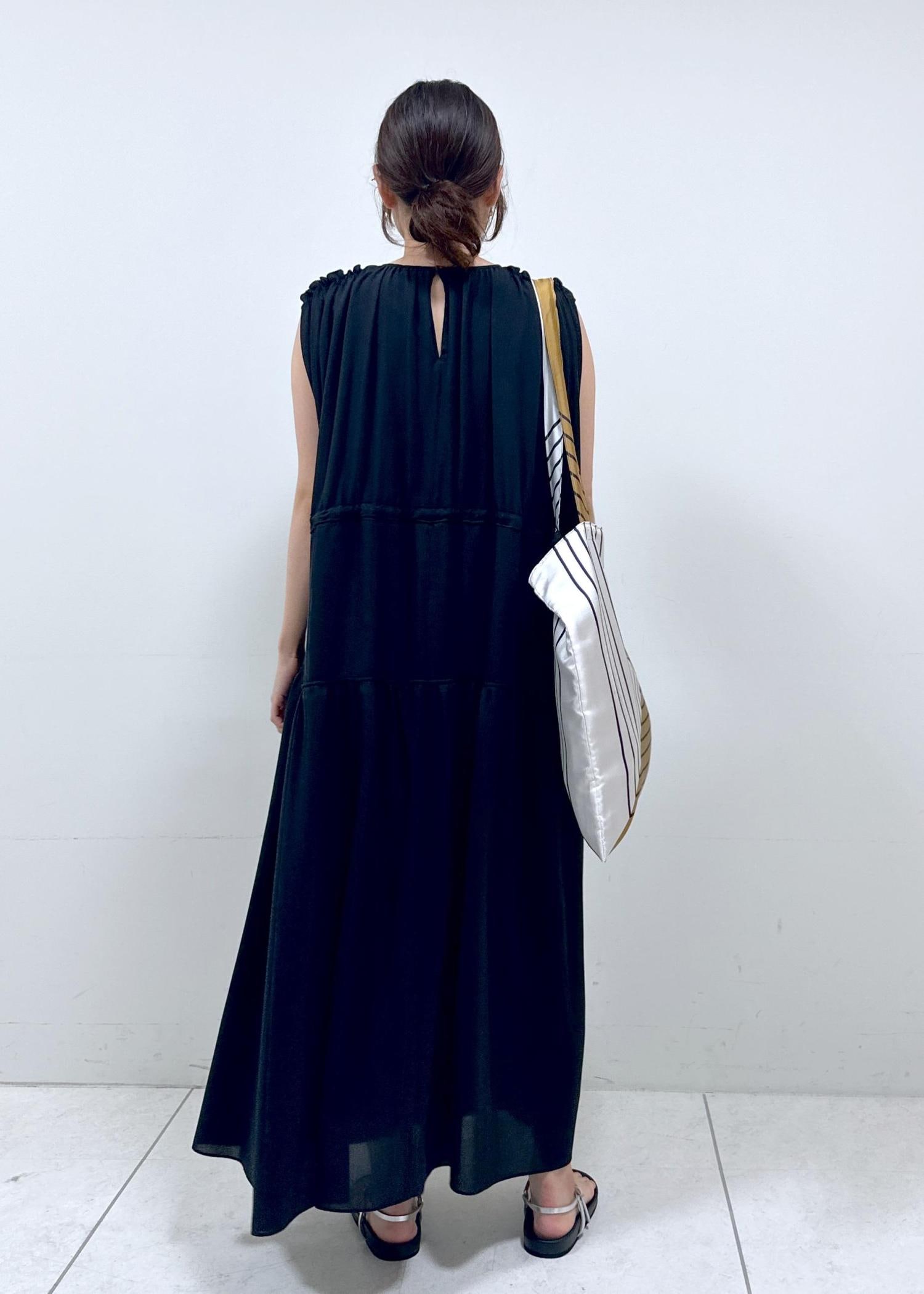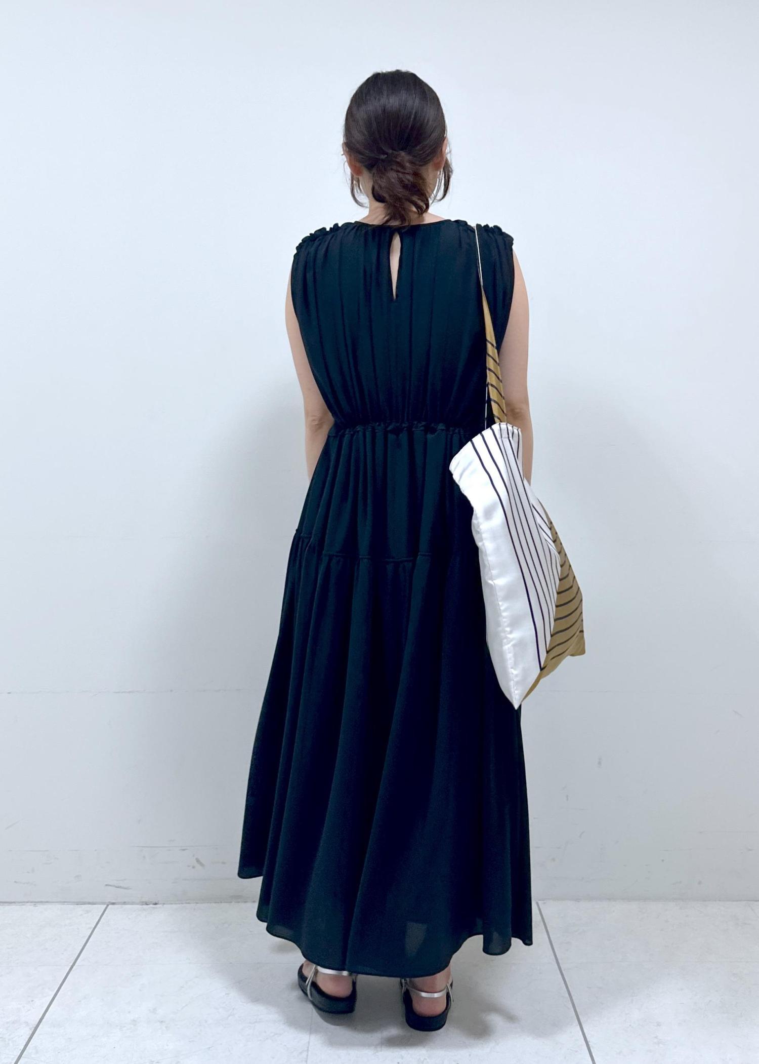 アウトレットROPÉフェイディドフラワープリント・無地ドレス/洗えるブラック / F¥17,600レビューウエスト内側にゴムピンドルがついているのでシルエットを2wayでお使いできます◎