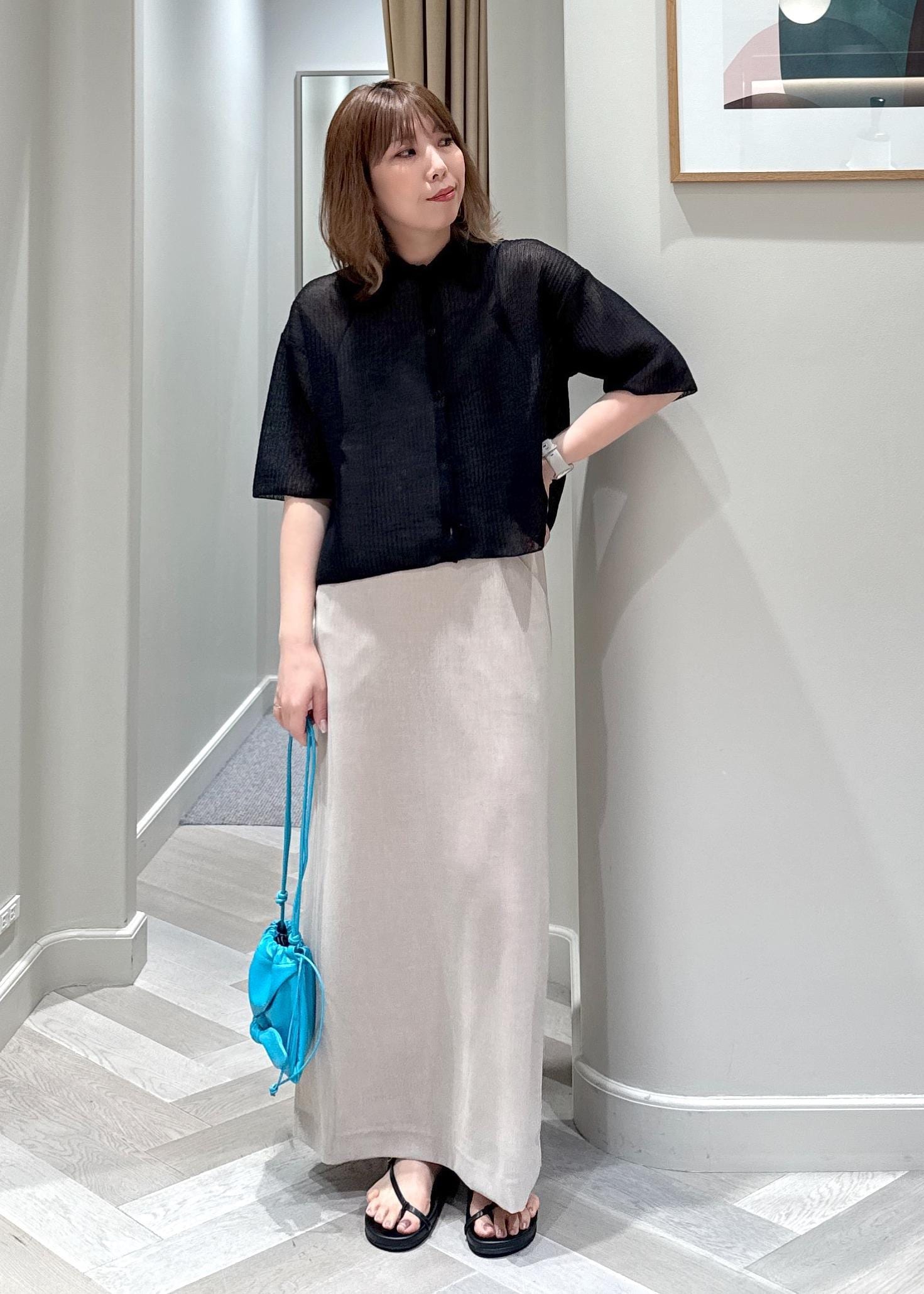 アーム部分と身幅はしっかりゆとりがあり肌離れが良いニットです。とカーディガンとしても使えます。