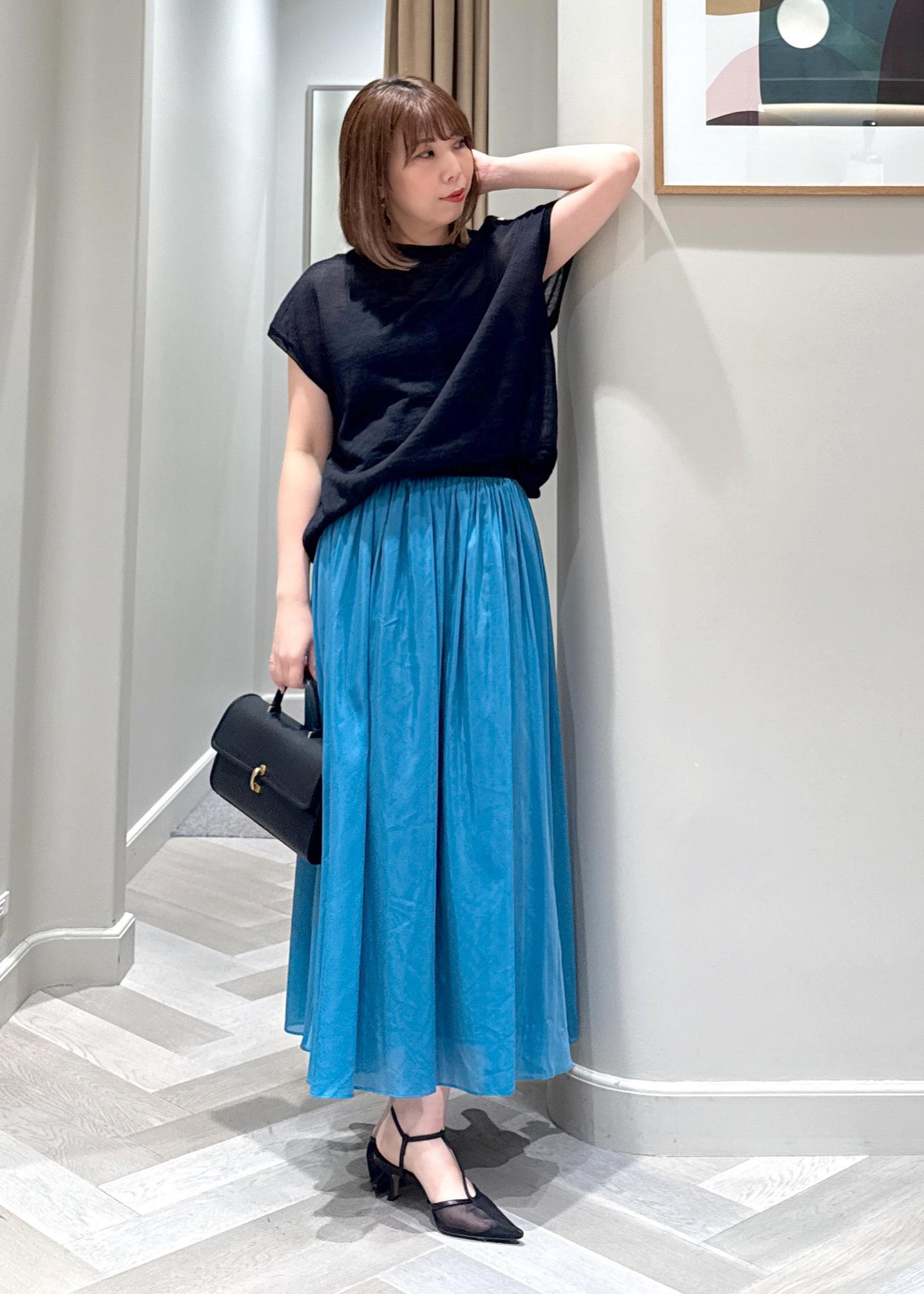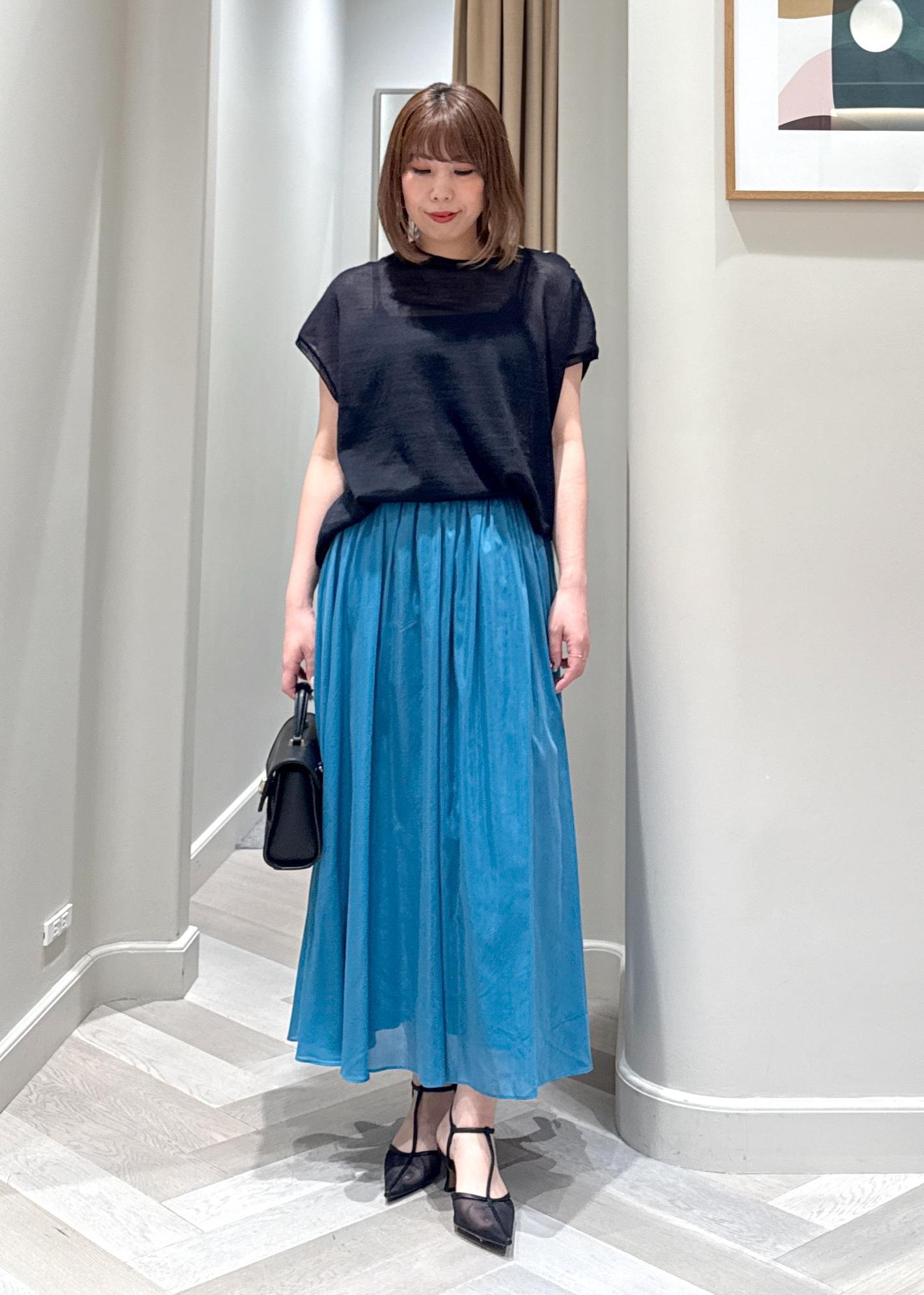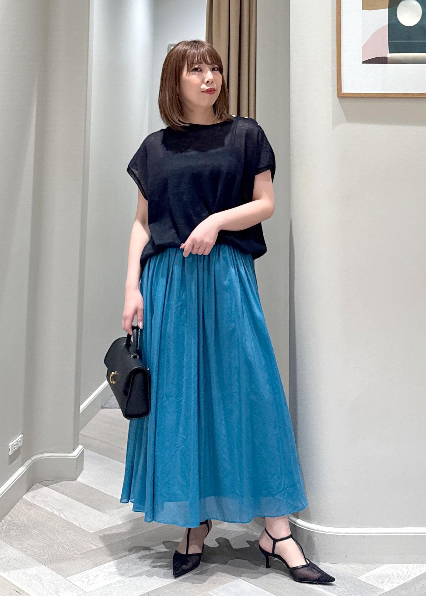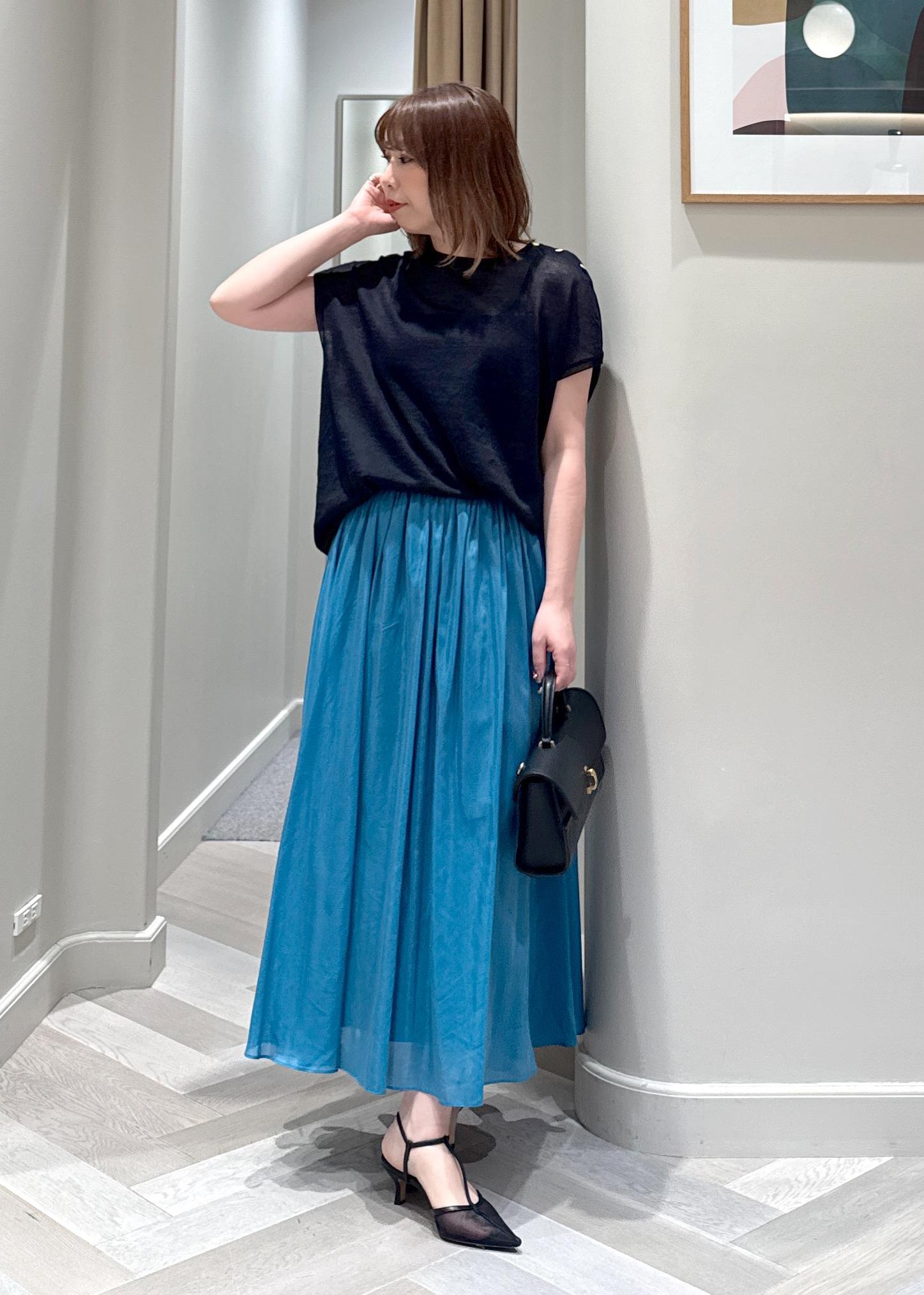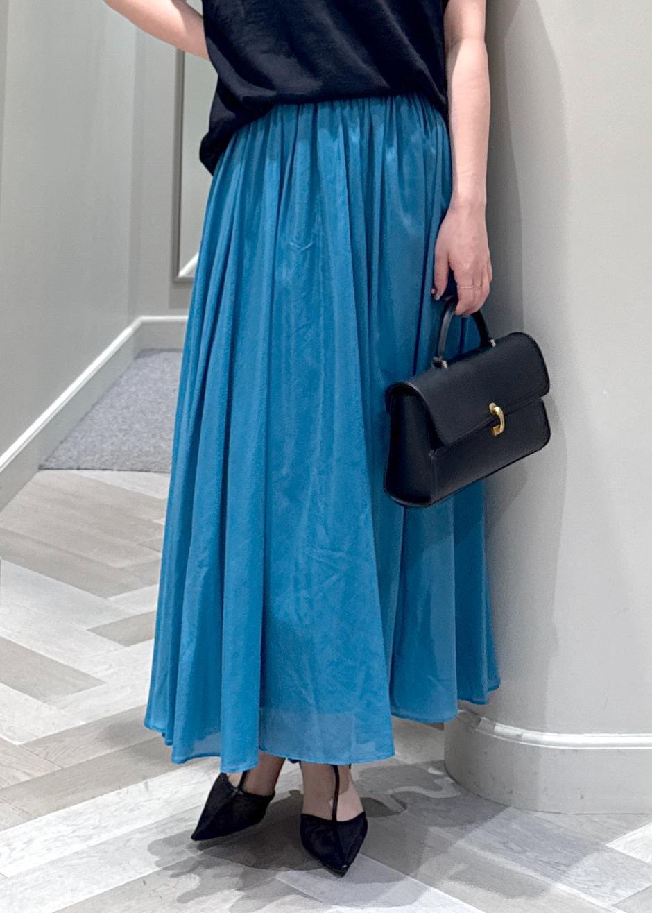 アウトレットROPÉ【洗える】コットンシルクスカートターコイズ / F¥11,000レビューウエストはゴム仕様で楽な履き心地。