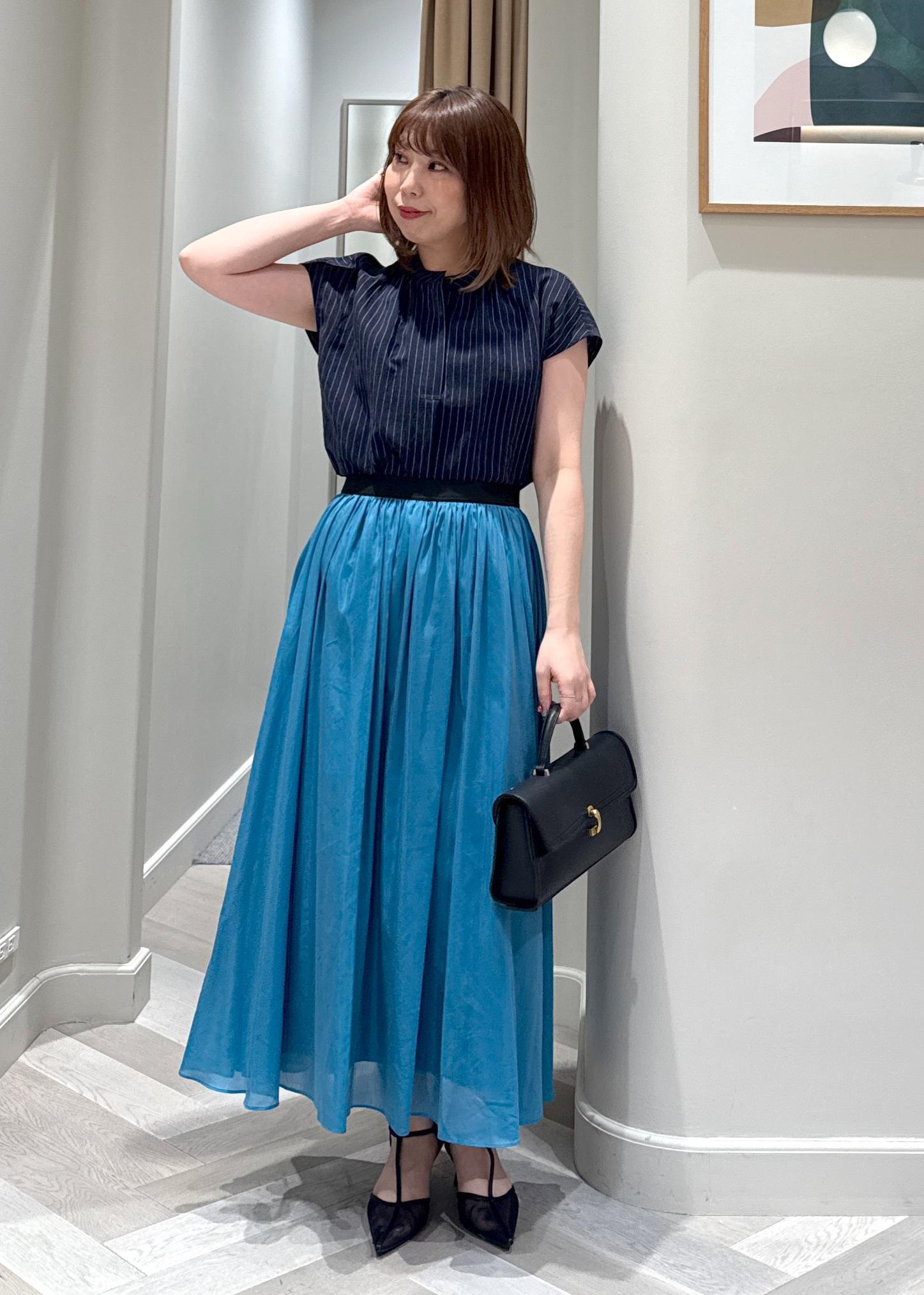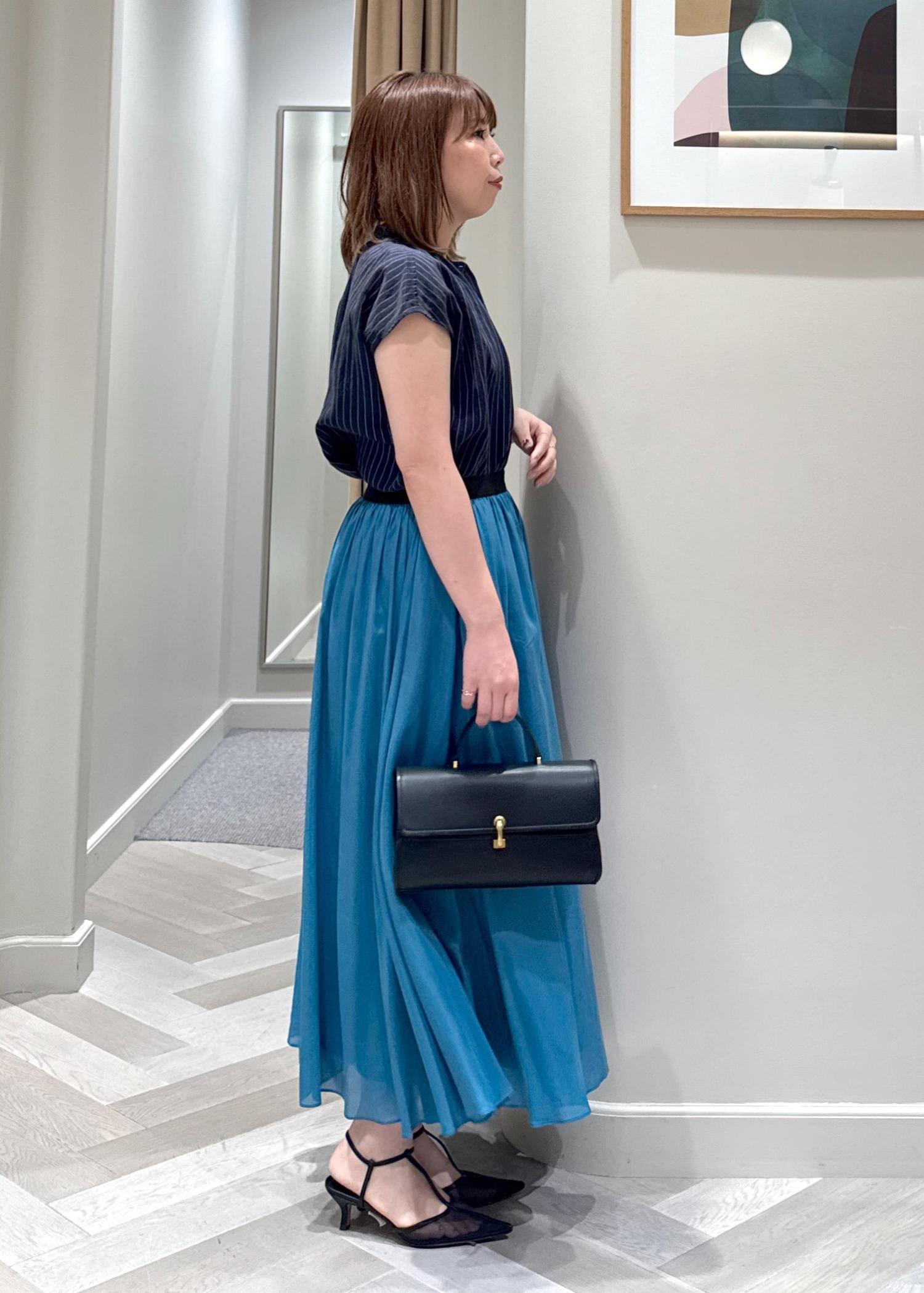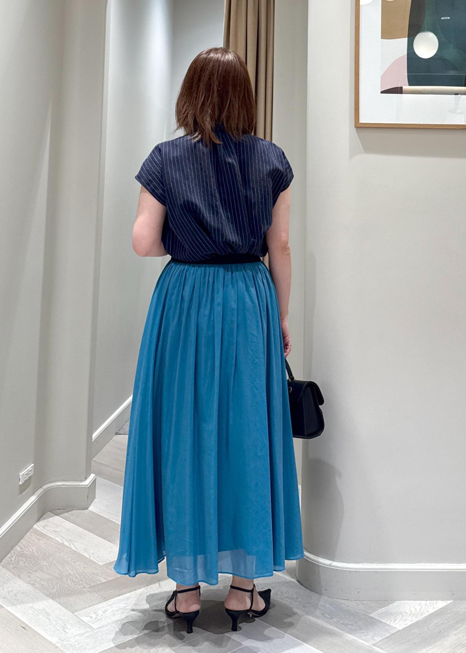 アウトレットROPÉ【洗える】コットンシルクスカートターコイズ / F¥11,000レビューウエストはゴム仕様で楽な履き心地。