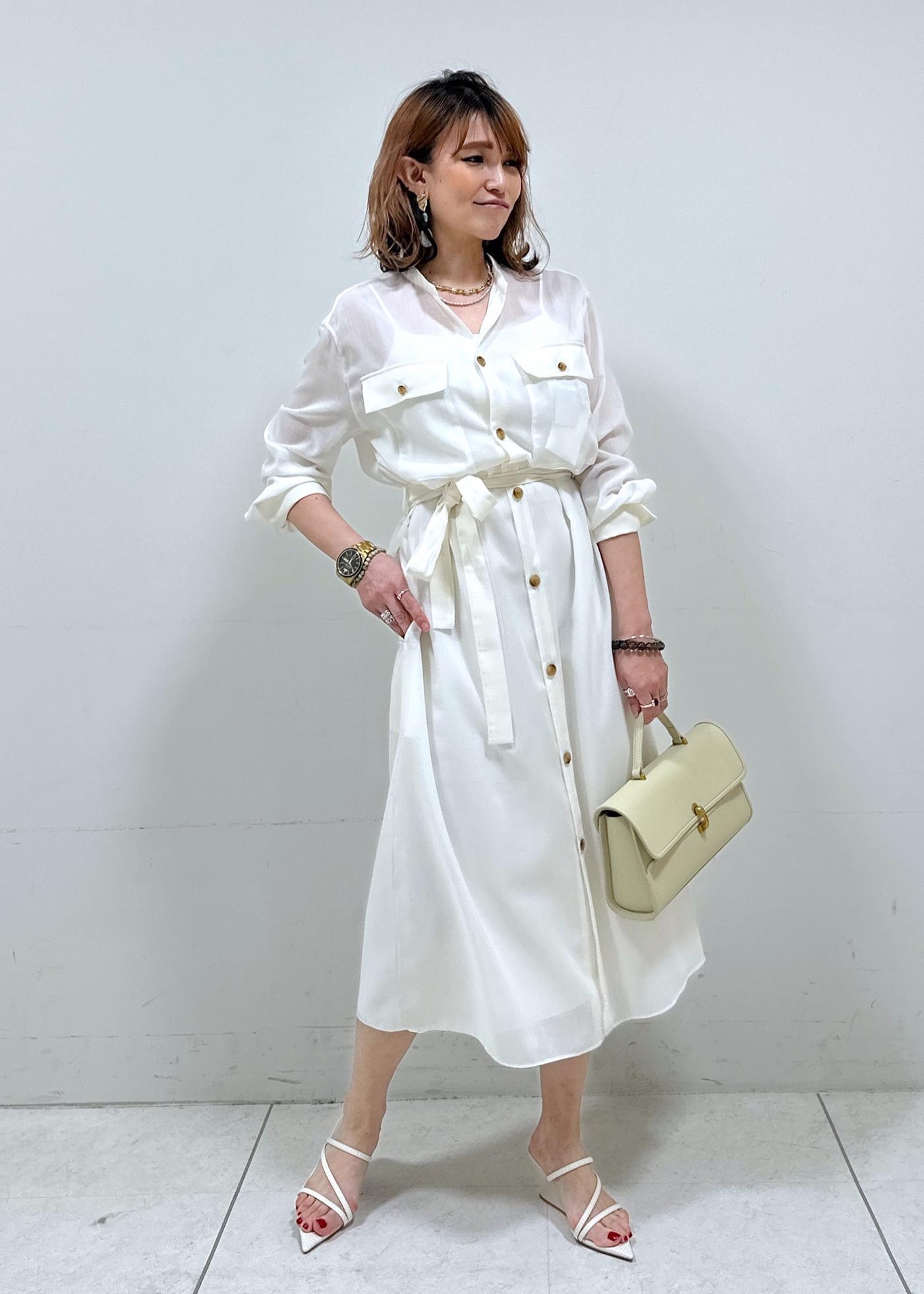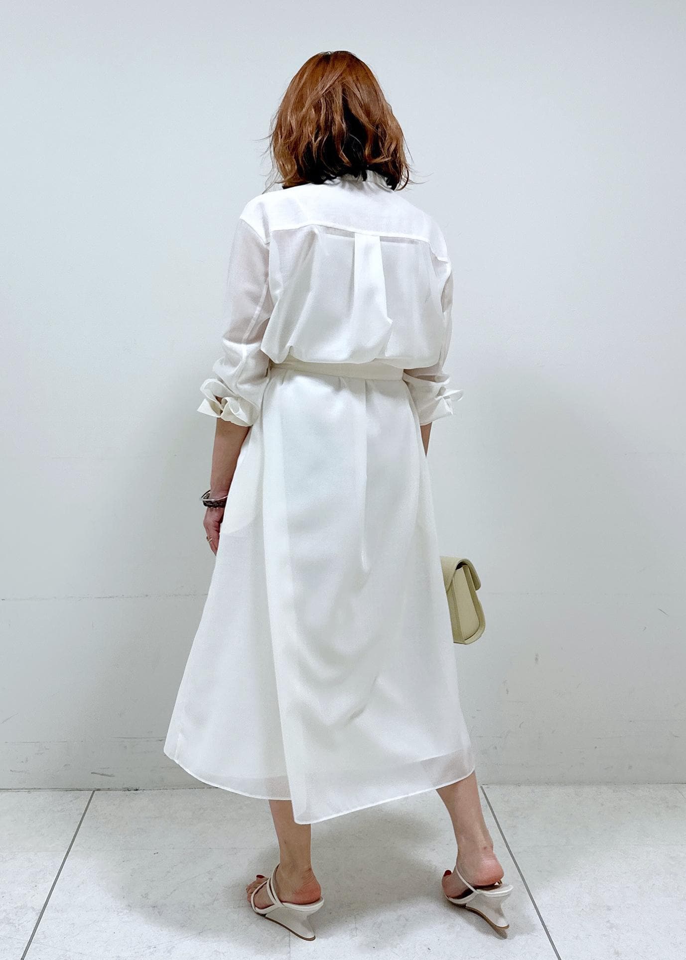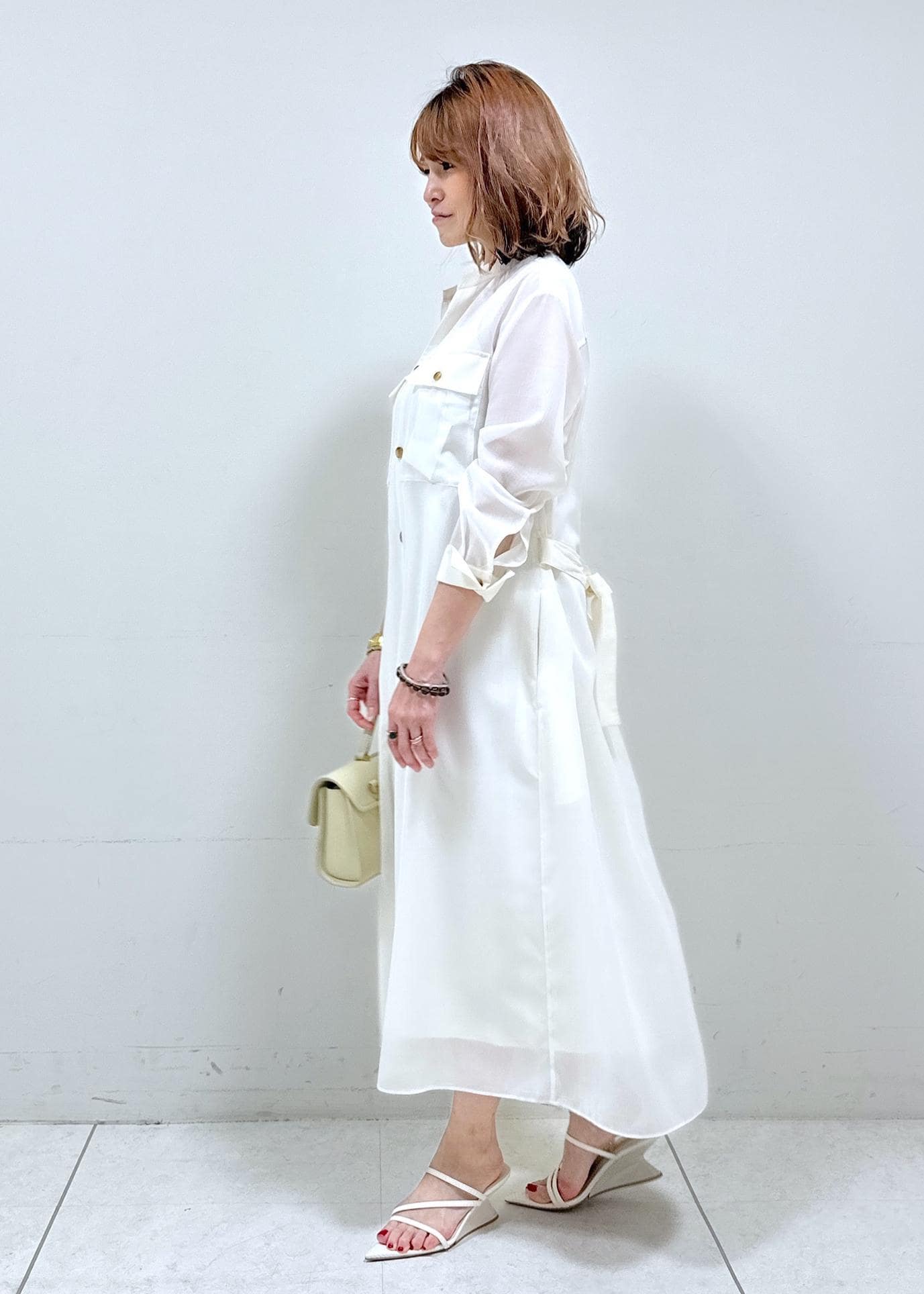 シャツワンピースながらシアー感があることで、お出掛けシーンやリラックスシーンでの着心地が映えるワンピースです。