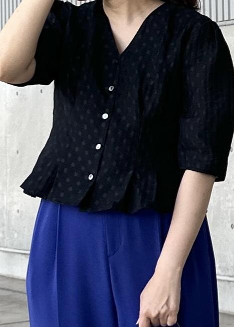 ROPÉ【洗える・羽織にもなる】Vネック5分袖パフスリーブブラウスブラック / F¥18,700レビュー身長161㎝で普段38サイズを着用。