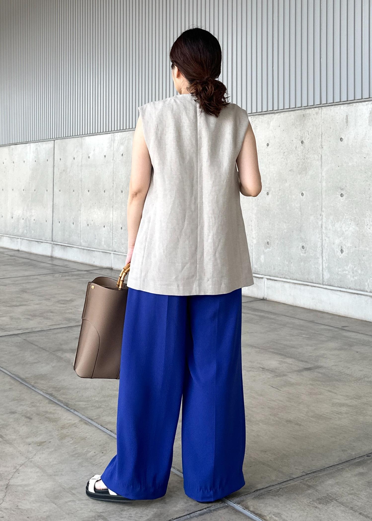 ウエストを一折して少し厚底のシューズにするとギリギリ丈詰めせず履いていただけます。とてもサラッとしていて薄手なので真夏も着回していただけます。ウエストもゴムになっているのでリラックス感がありながら少しキレイ目にも見せてくれる着まわしたくなる逸品です。 -