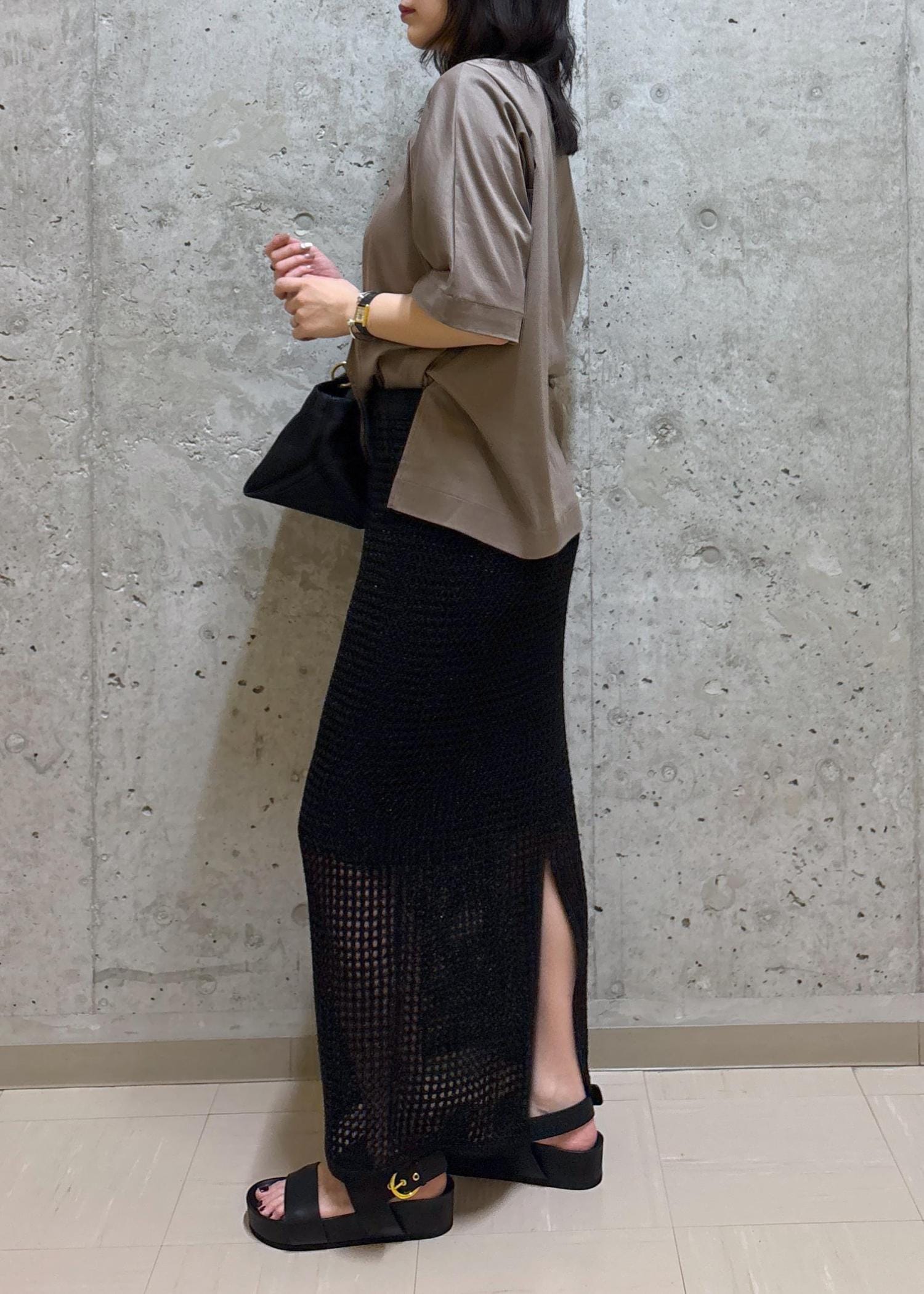 アウトレットROPÉラメメッシュスカート/セットアップ対応ブラック / 38¥13,200レビュー身長164㎝、普段38サイズ着用。