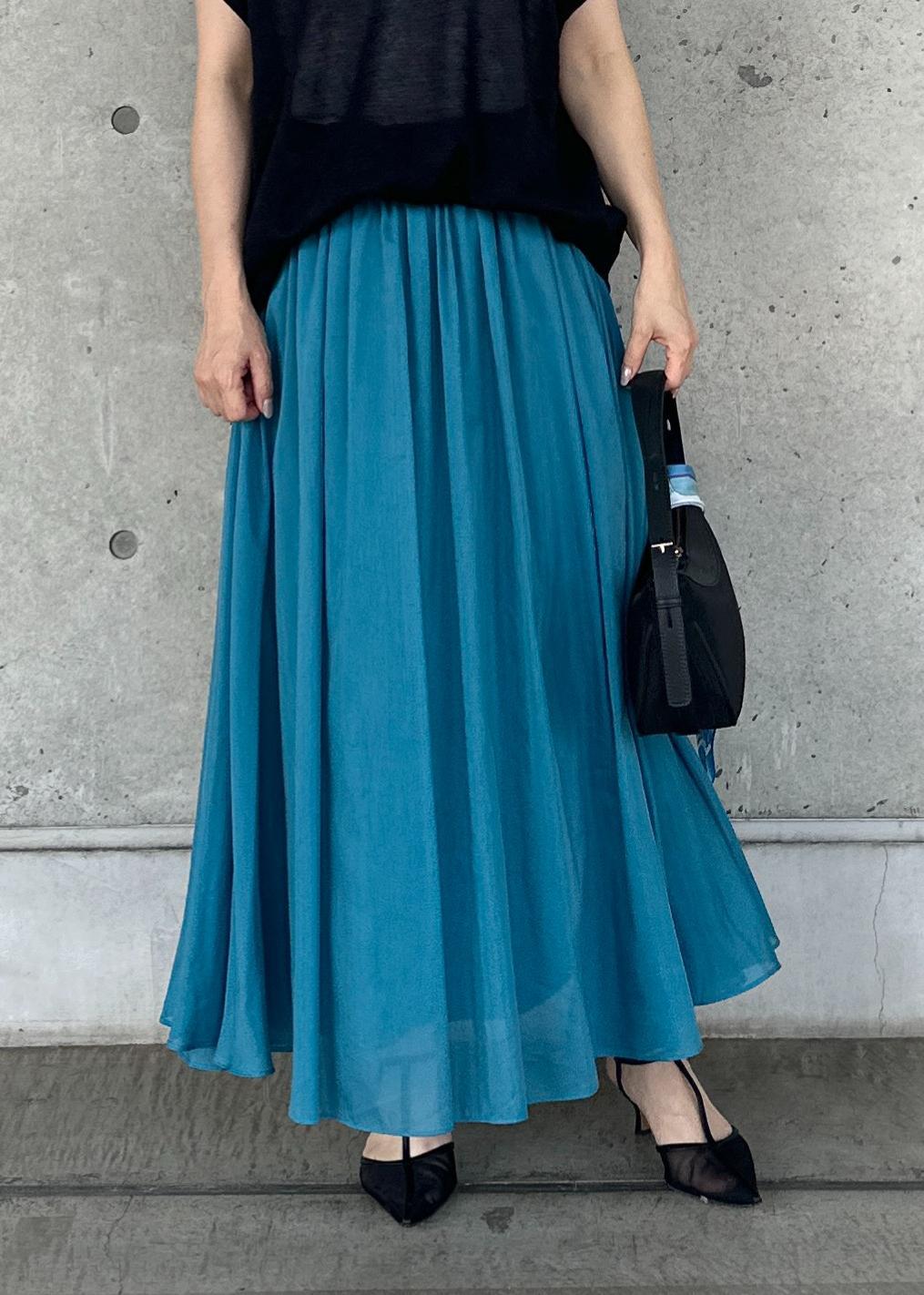 アウトレットROPÉ【洗える】コットンシルクスカートターコイズ / F¥11,000レビュー身長156cm、Fサイズ着用。