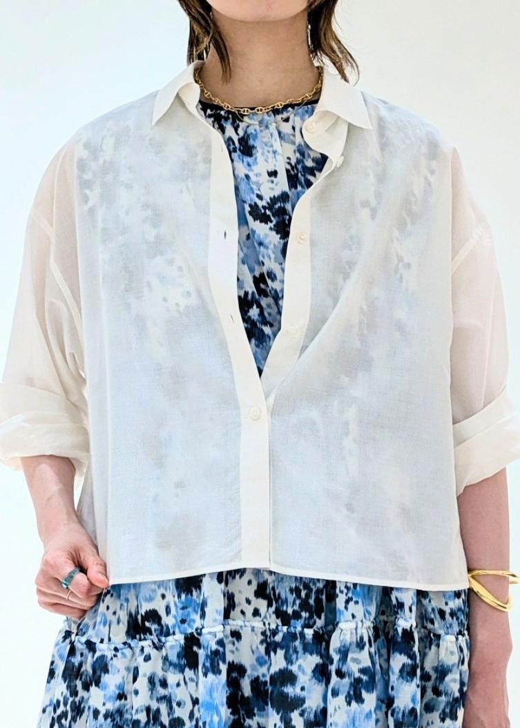 薄手でとても柔らかい、綿混素材の短丈ブラウス。