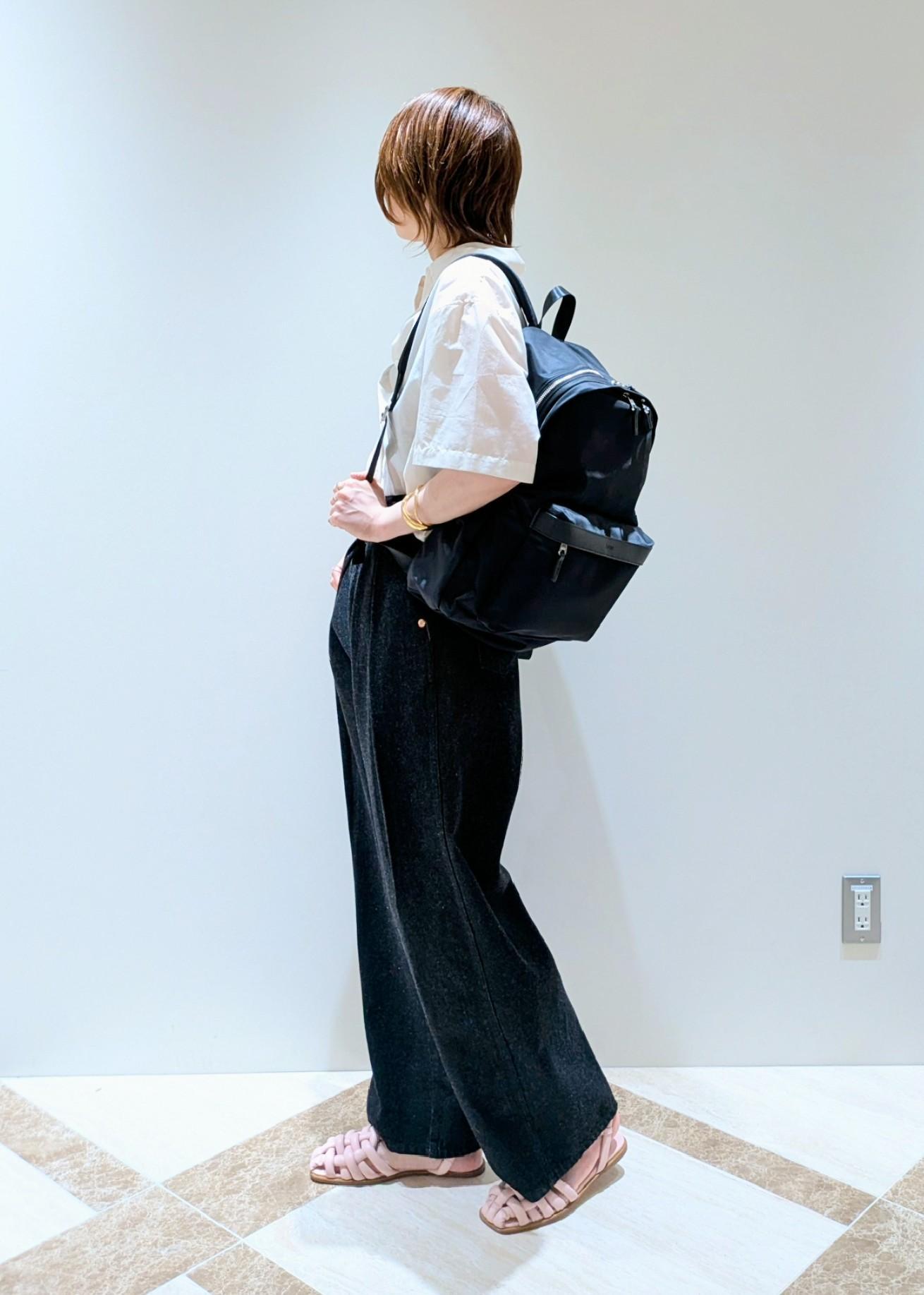 今回はエポールの定番人気パックサックで、夏のカジュアルスタイルにしました。